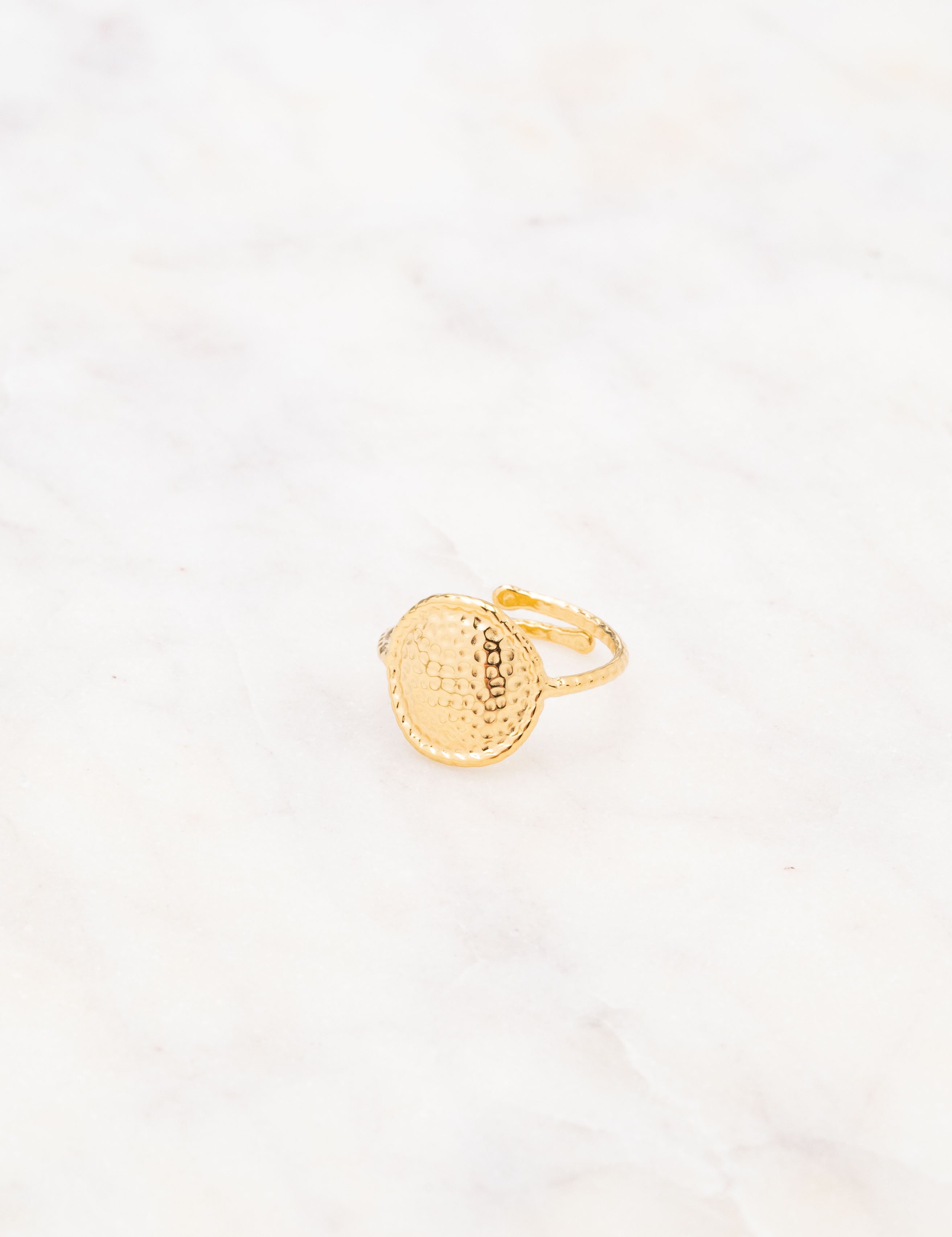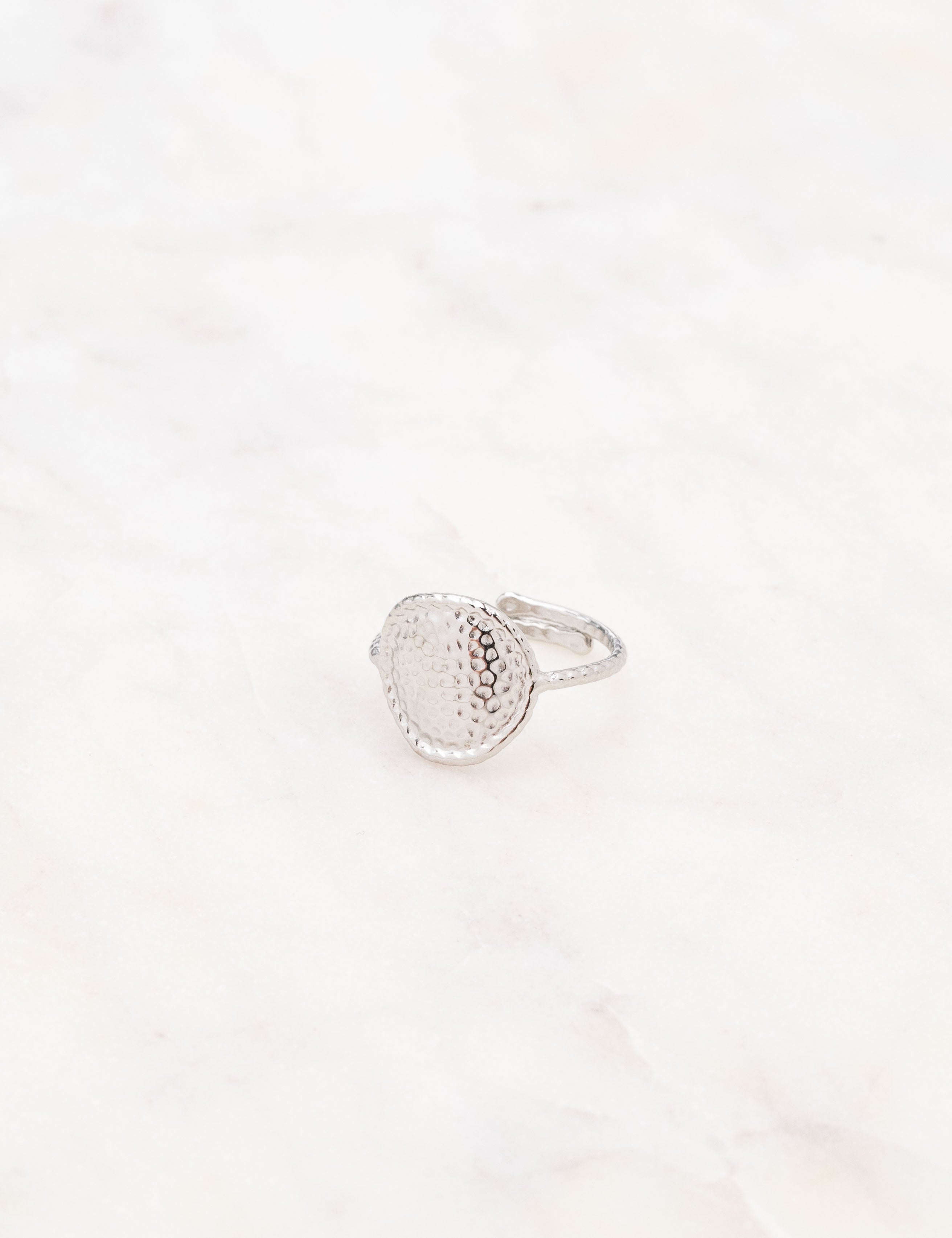 Bague ajustable composée d'une pièce ronde martelée.