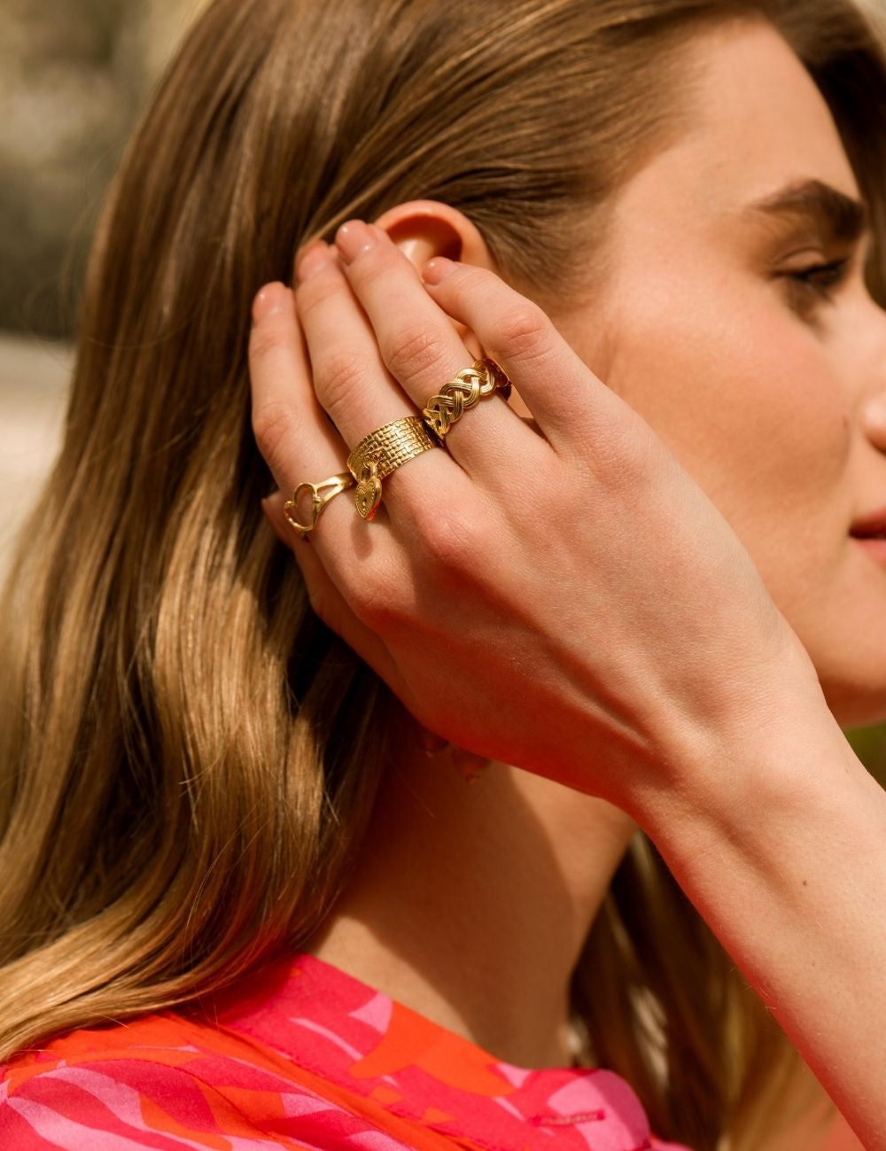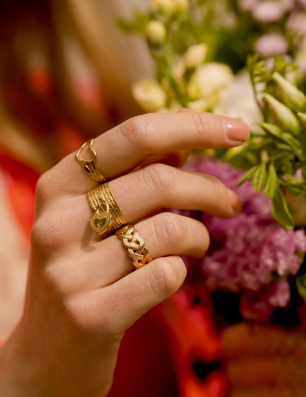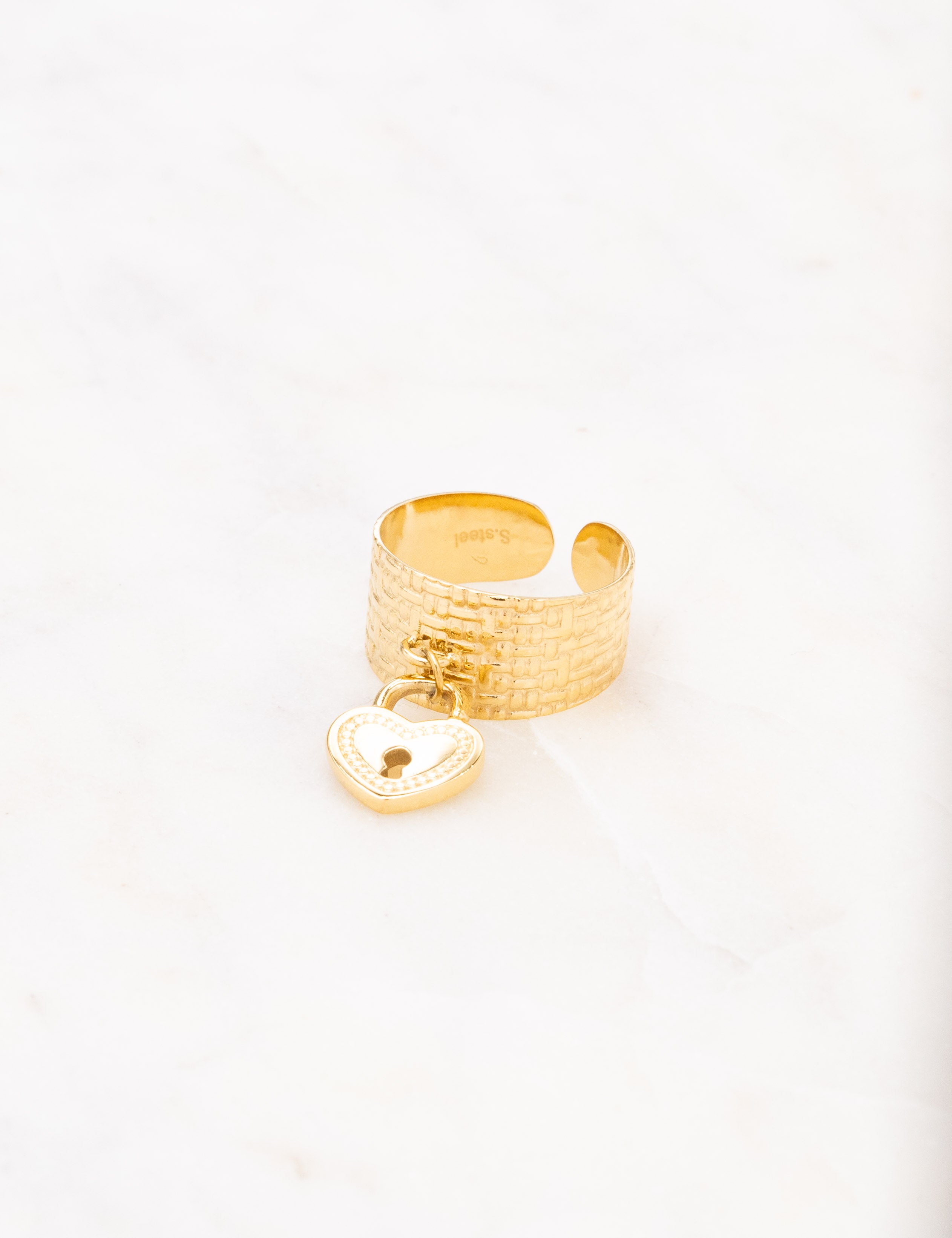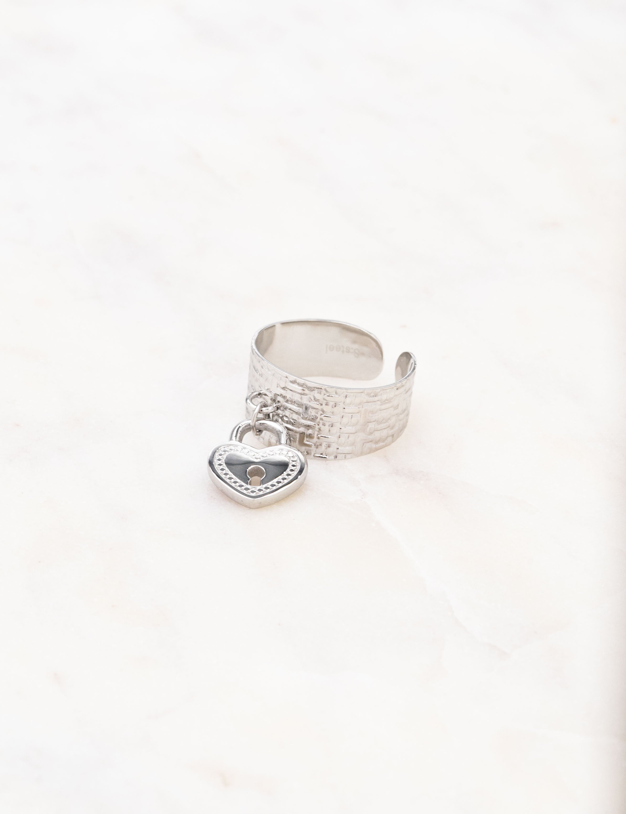 Bague ajustable texturée composée d'une pampille cœur façon cadenas.