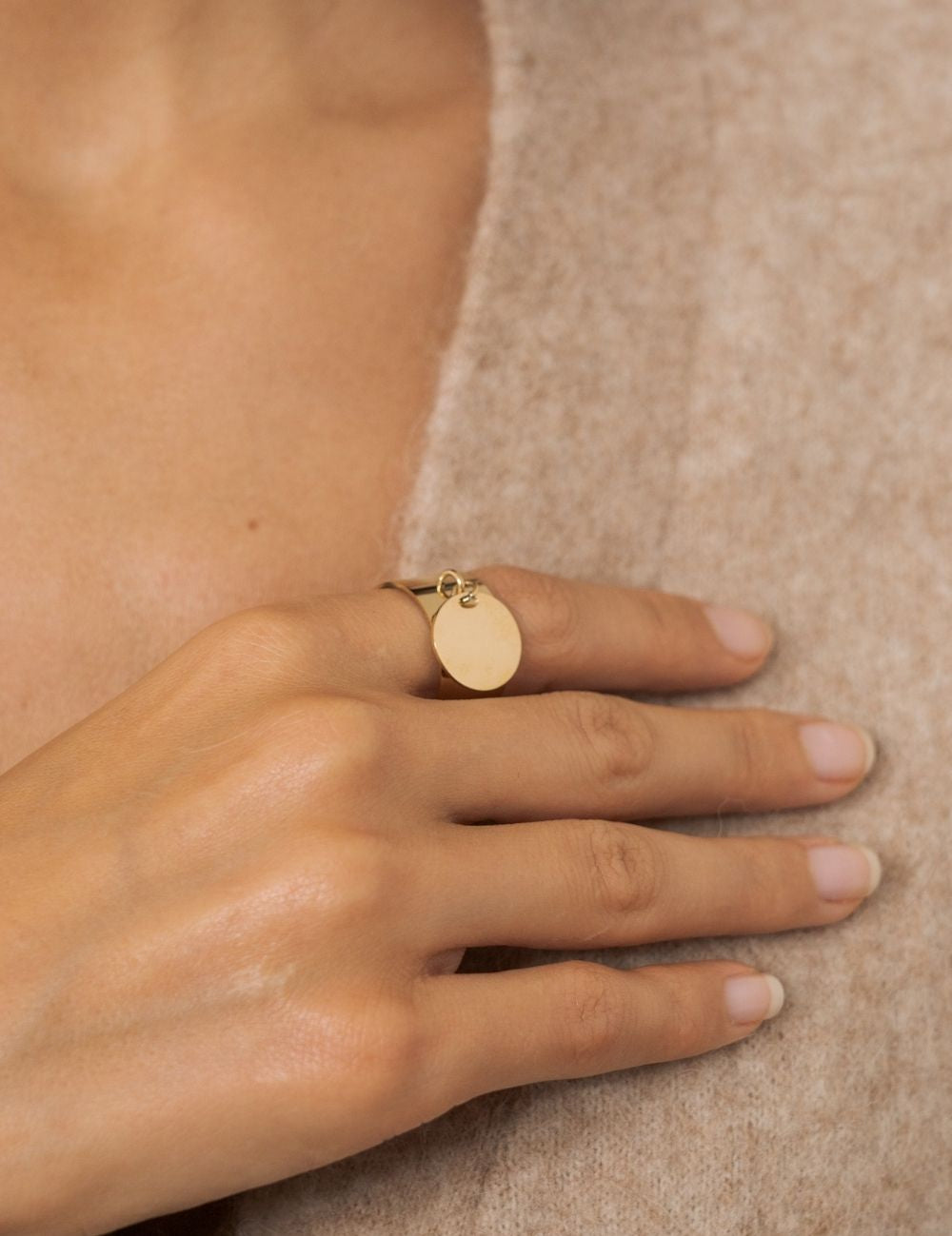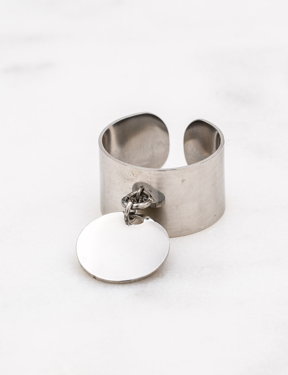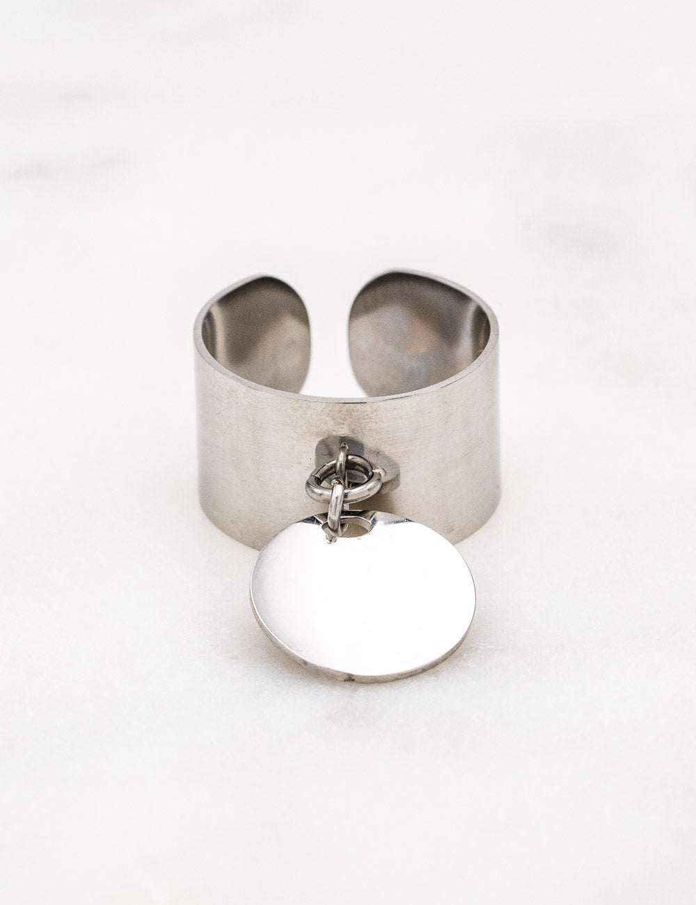 Bague ajustable et pampille lisse.
