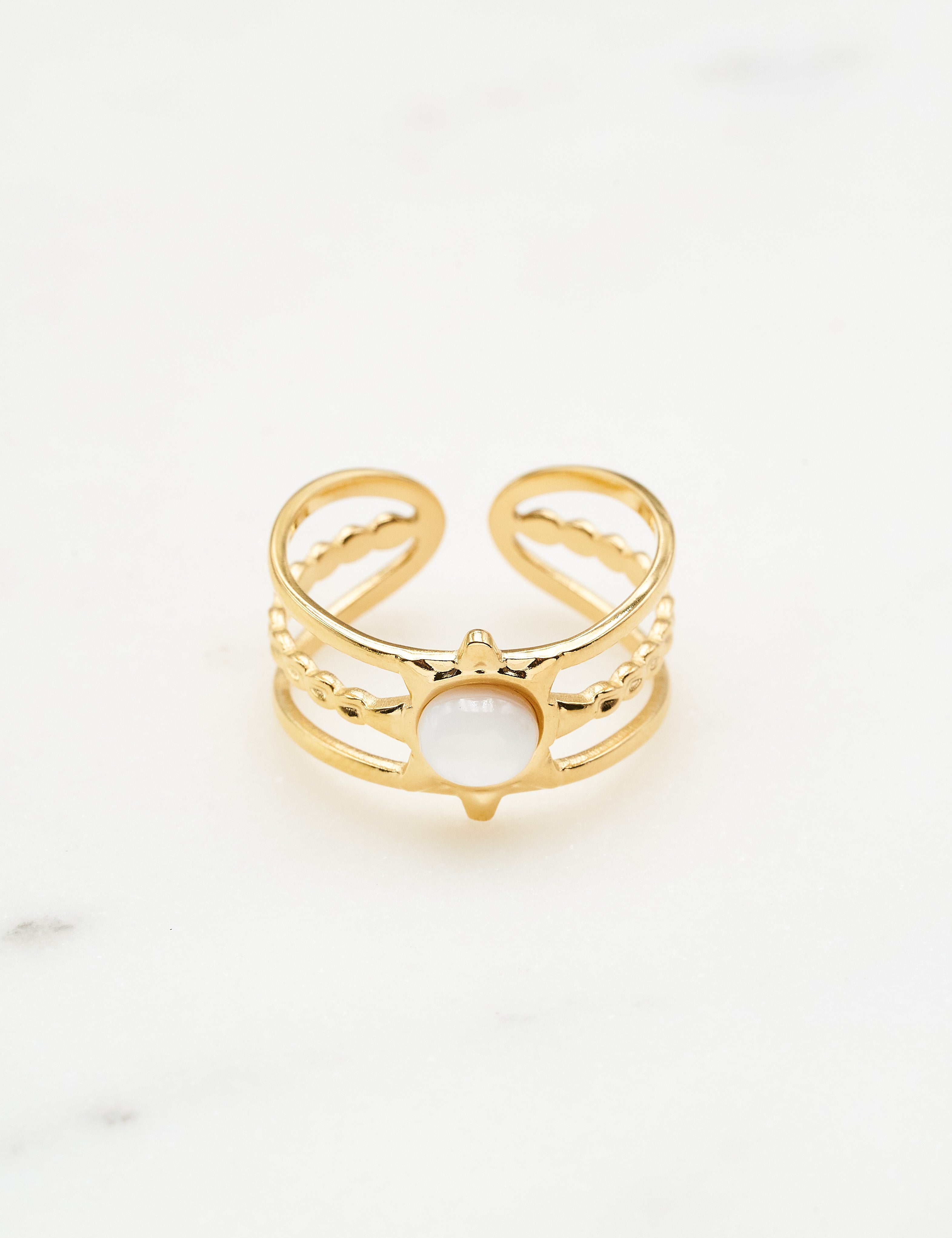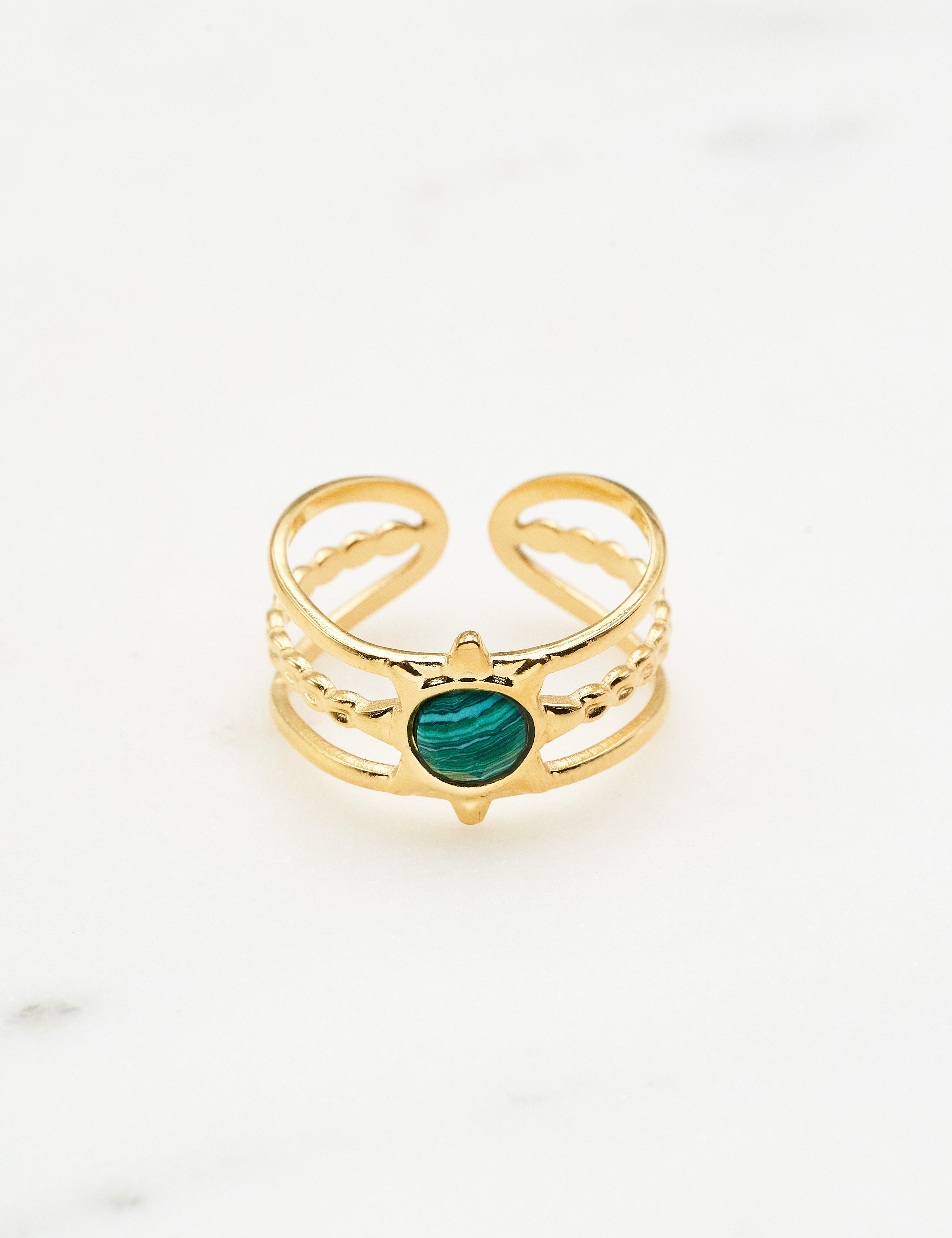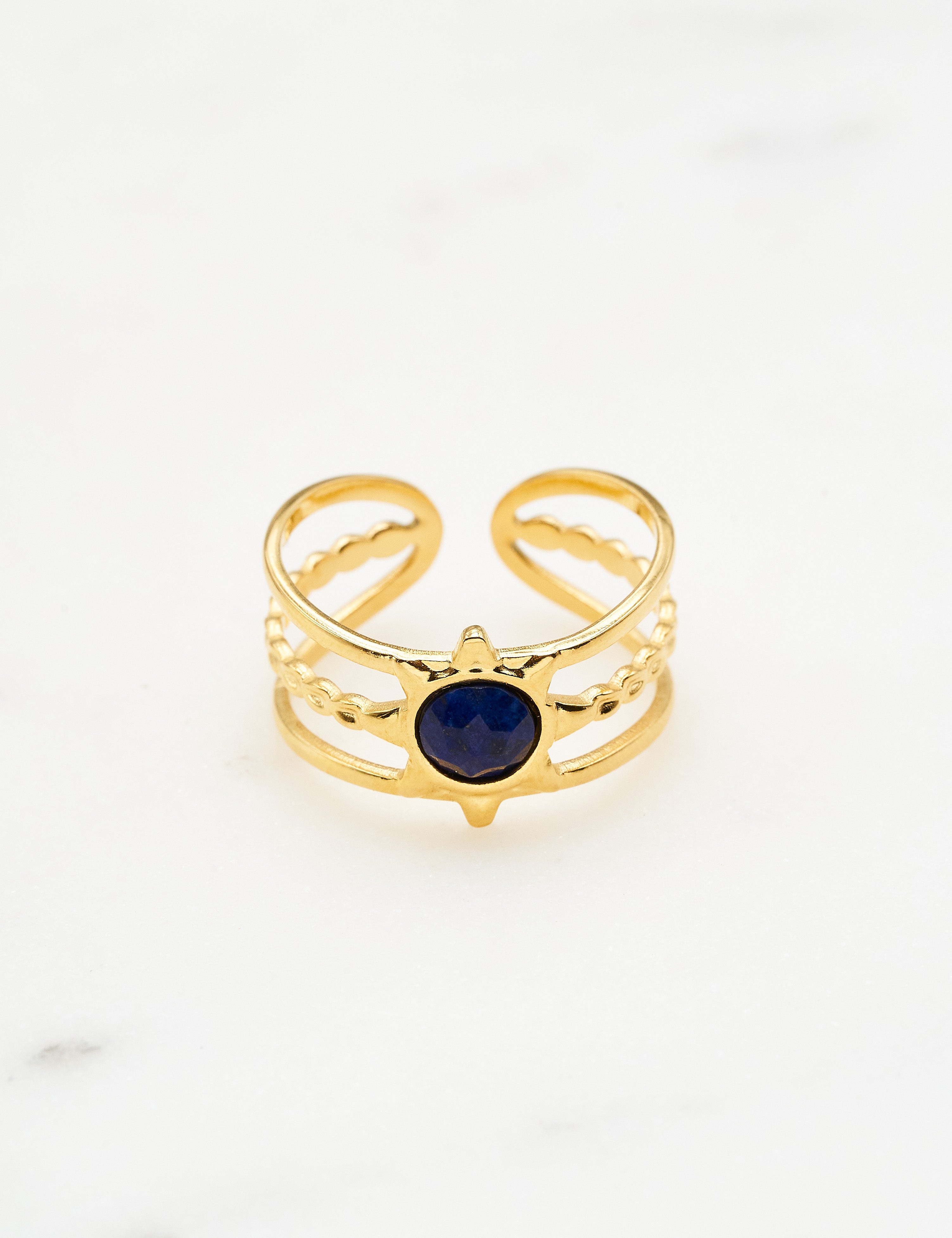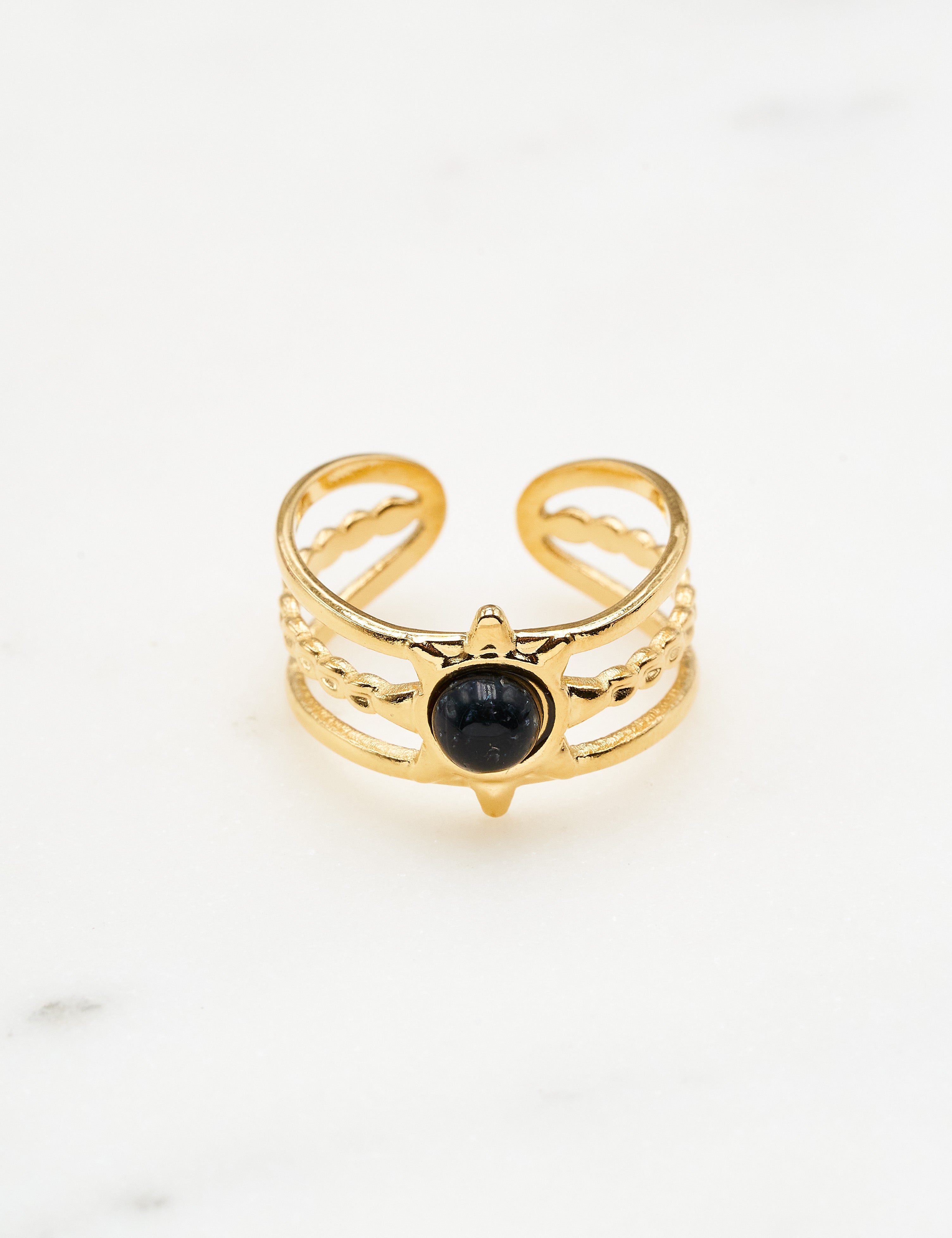 Bague ajustable multirangs composée d'une pièce au motif étoilée sertie d'une pierre naturelle .