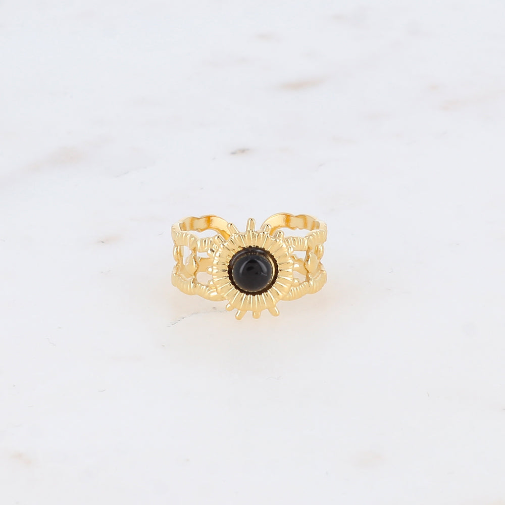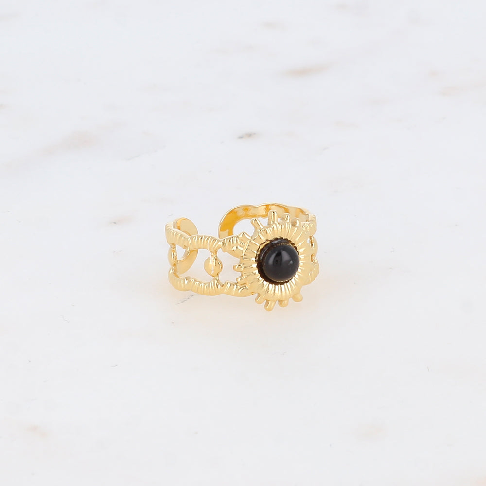 Bague ajustable  graphique texturée serti d'une pierre naturelle.