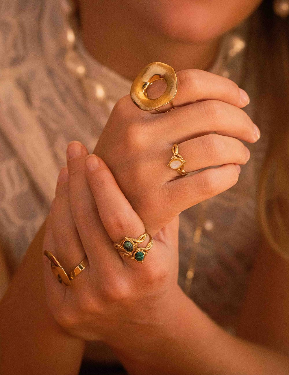 Bague graphique composée d'une pièce ajourée, texturée (effet patiné)