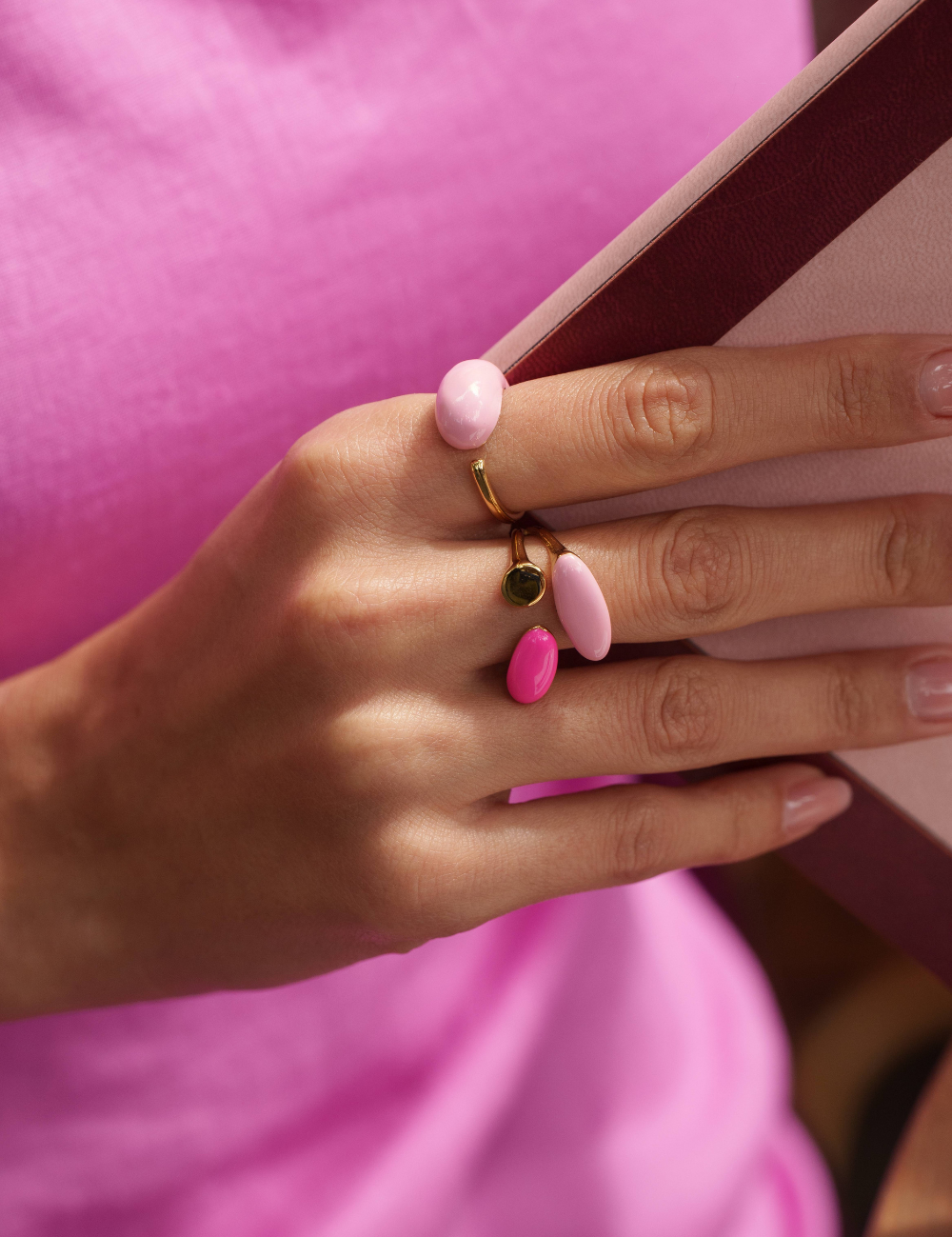 Bague ajustable graphique émaillée colorée.