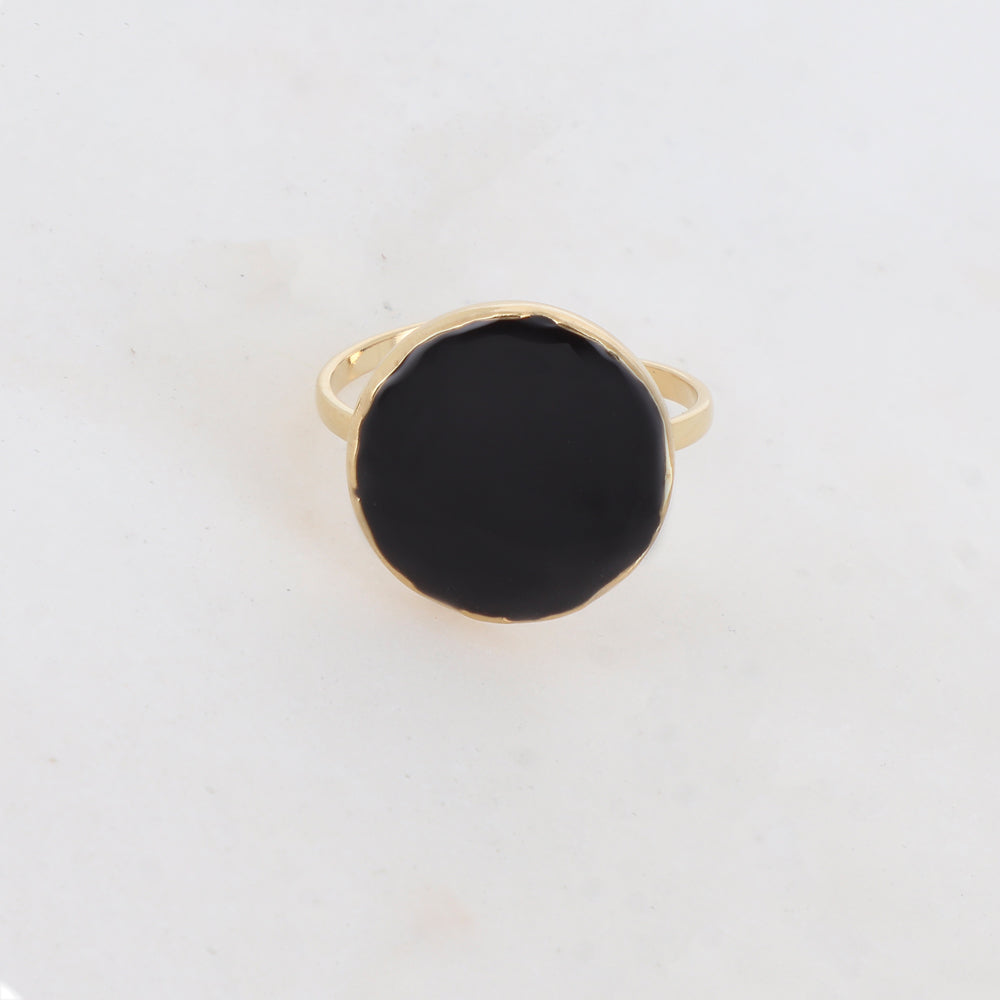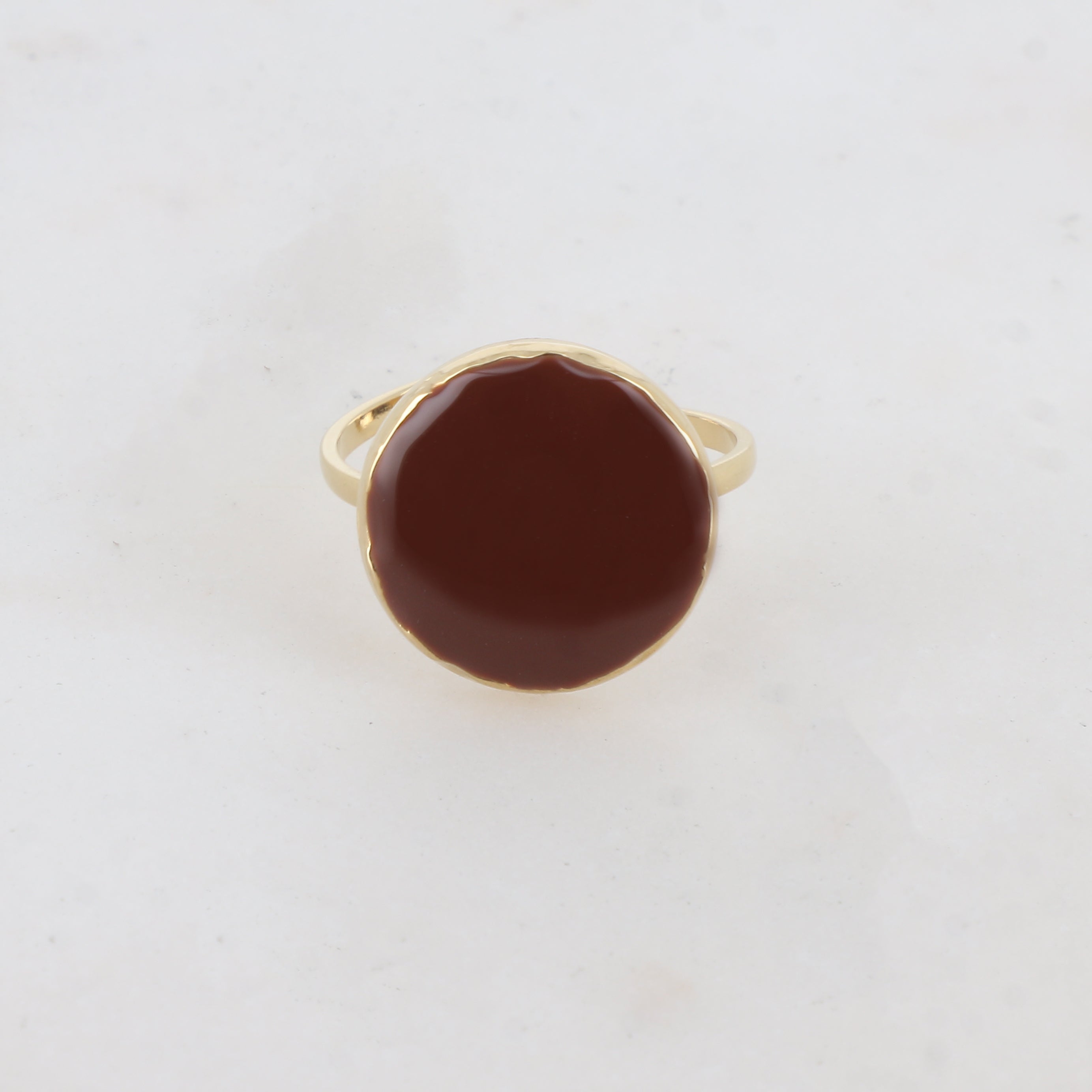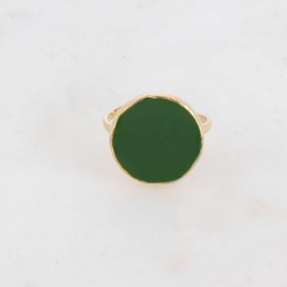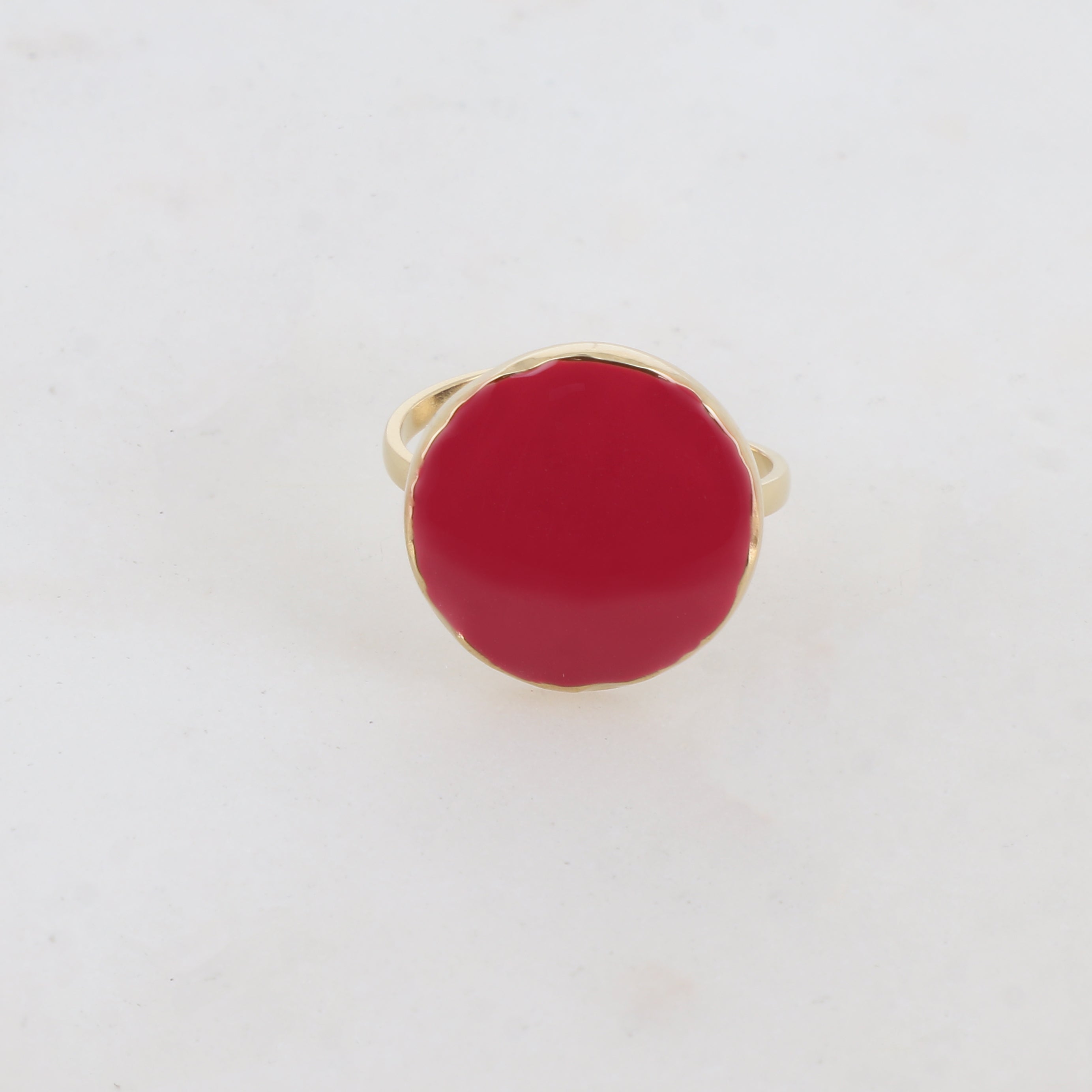 Bague ajustable composée d'une pièce graphique émaillée colorée.