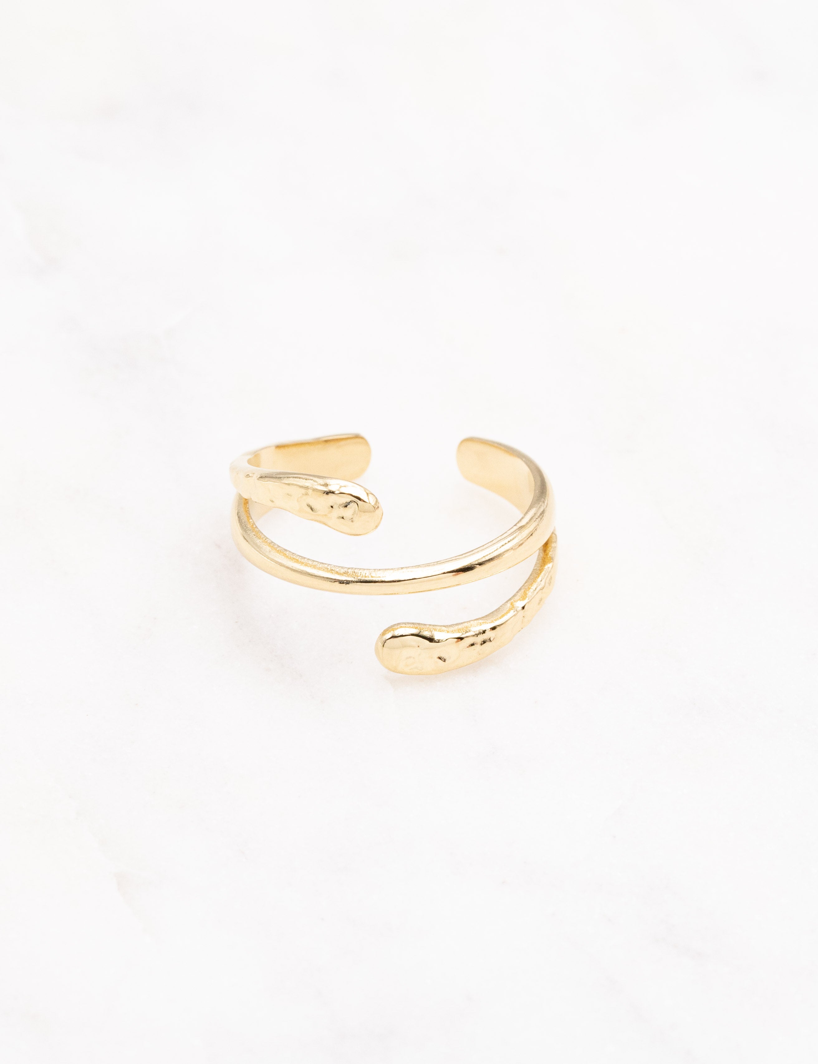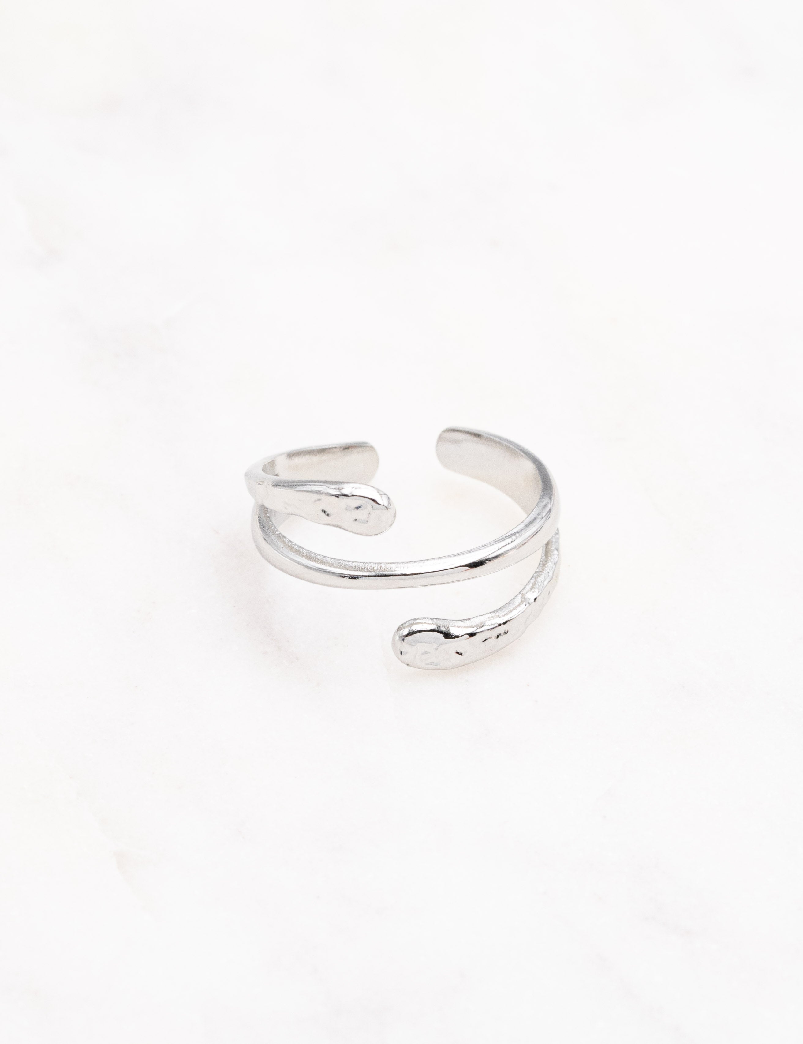 Bague ajustable graphique avec un jeu de textures martelées et lisses.