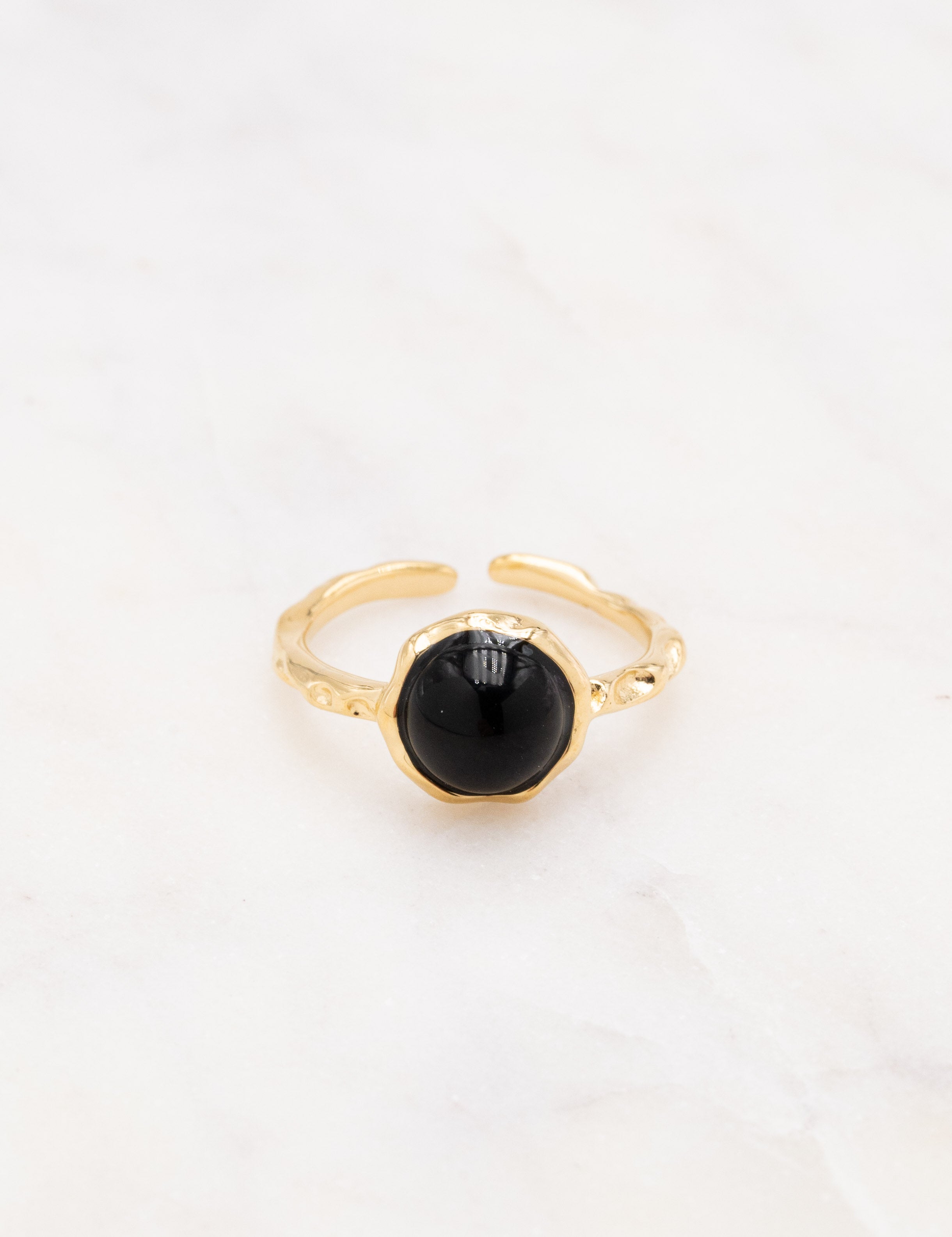 Bague fine ajustable martelée composée d'une pièce ornée d'une pierre naturelle.