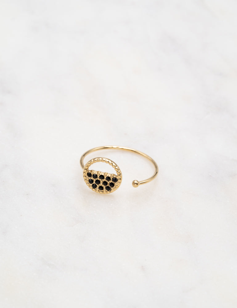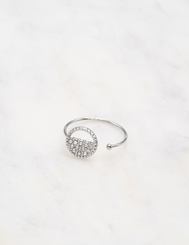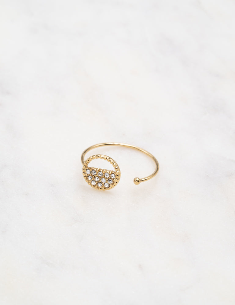 Bague fine ajustable graphique ornée de strass. (oxyde de zirconium)