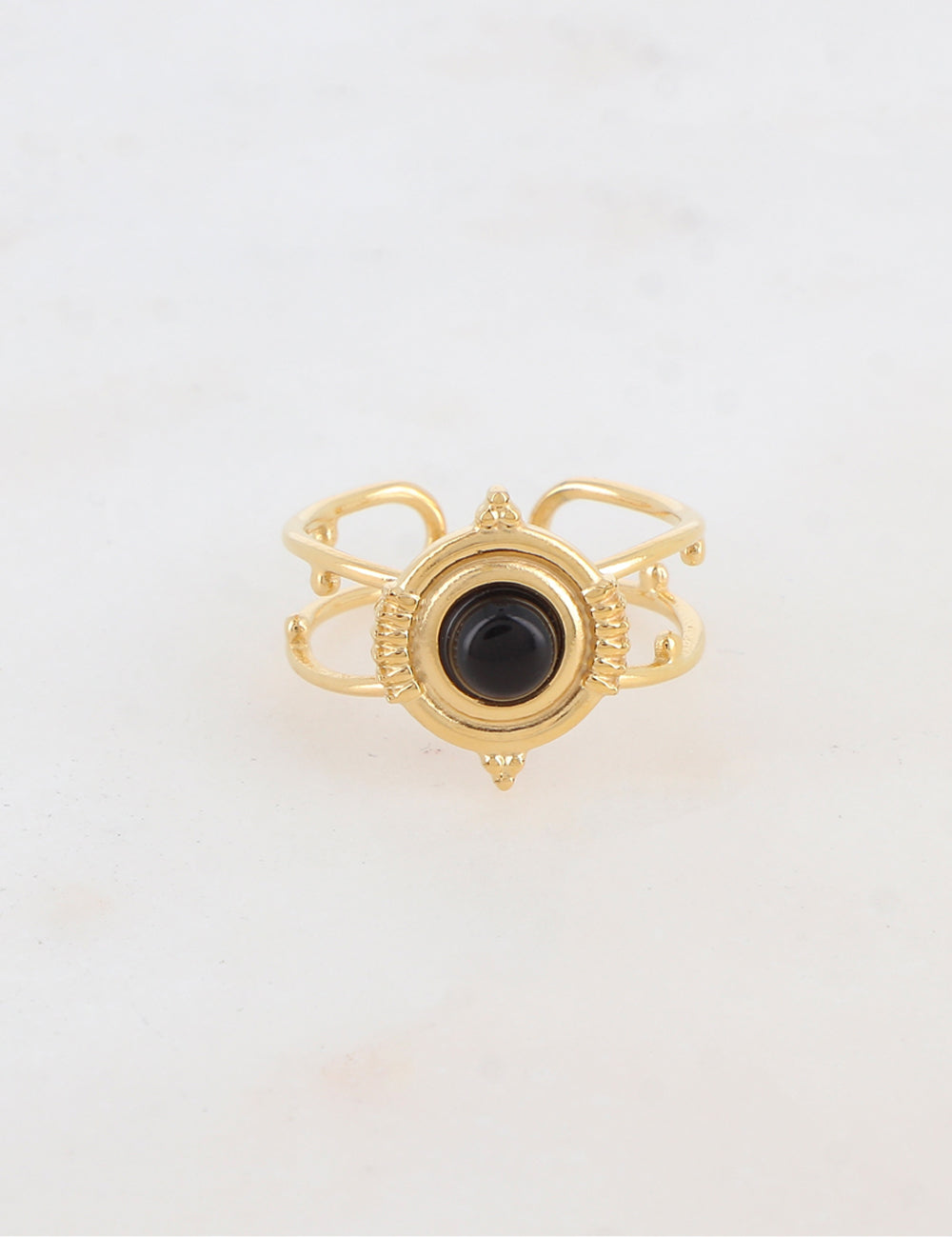 Bague ajustable graphique 2 rangs  sertie d'une pierre naturelle.