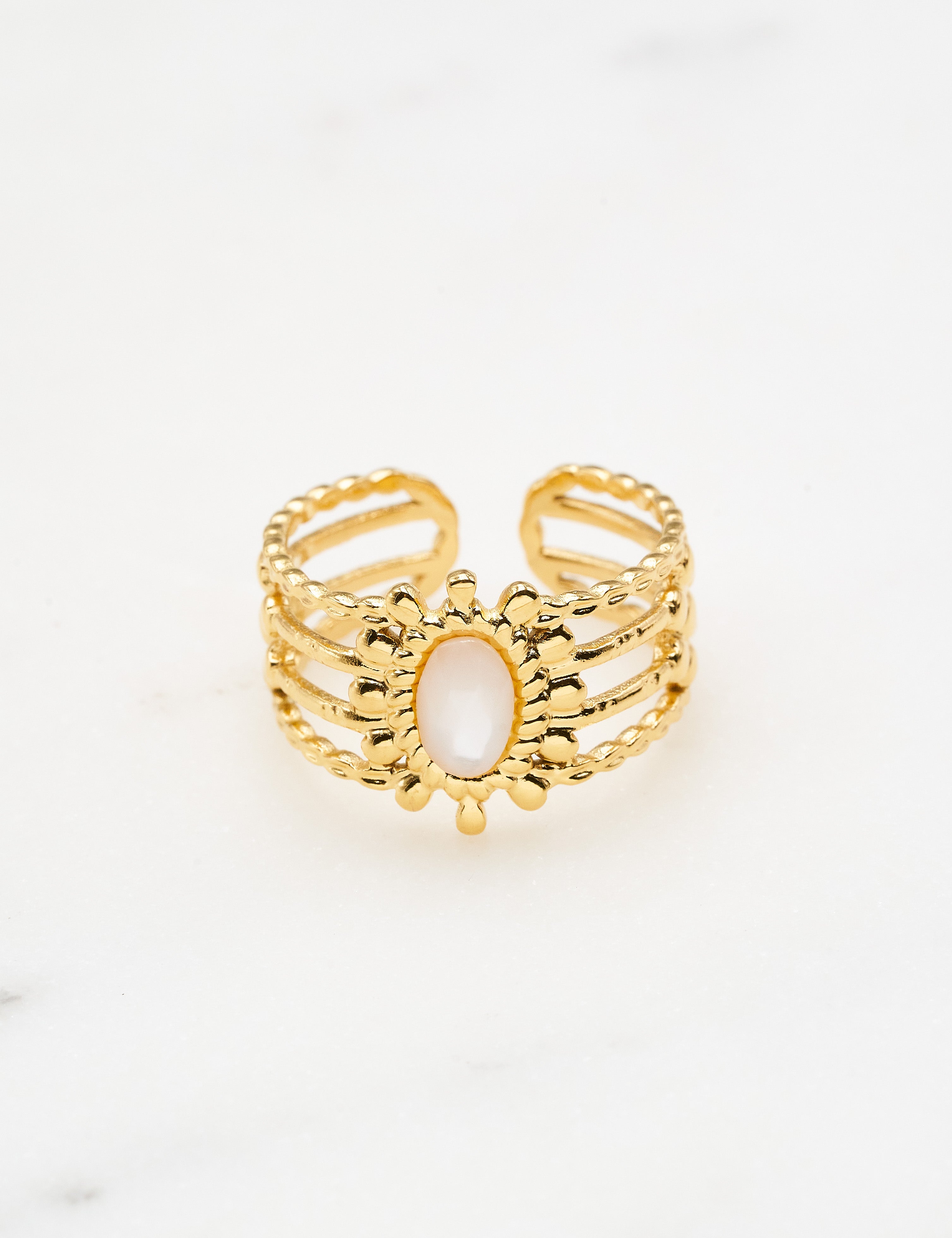Bague ajustable multirangs composée d'une pièce sertie d'une pierre naturelle .