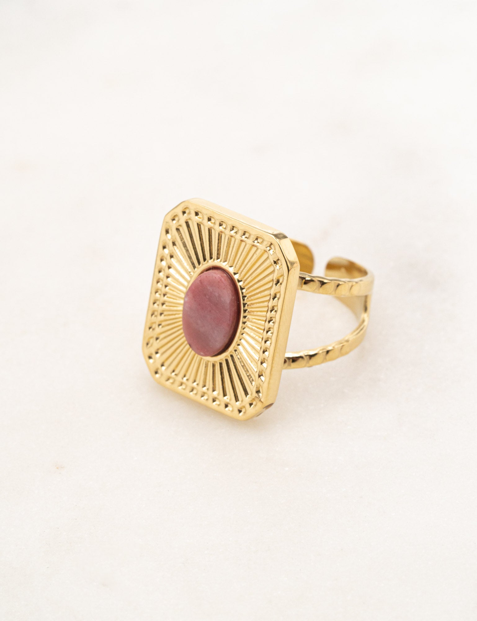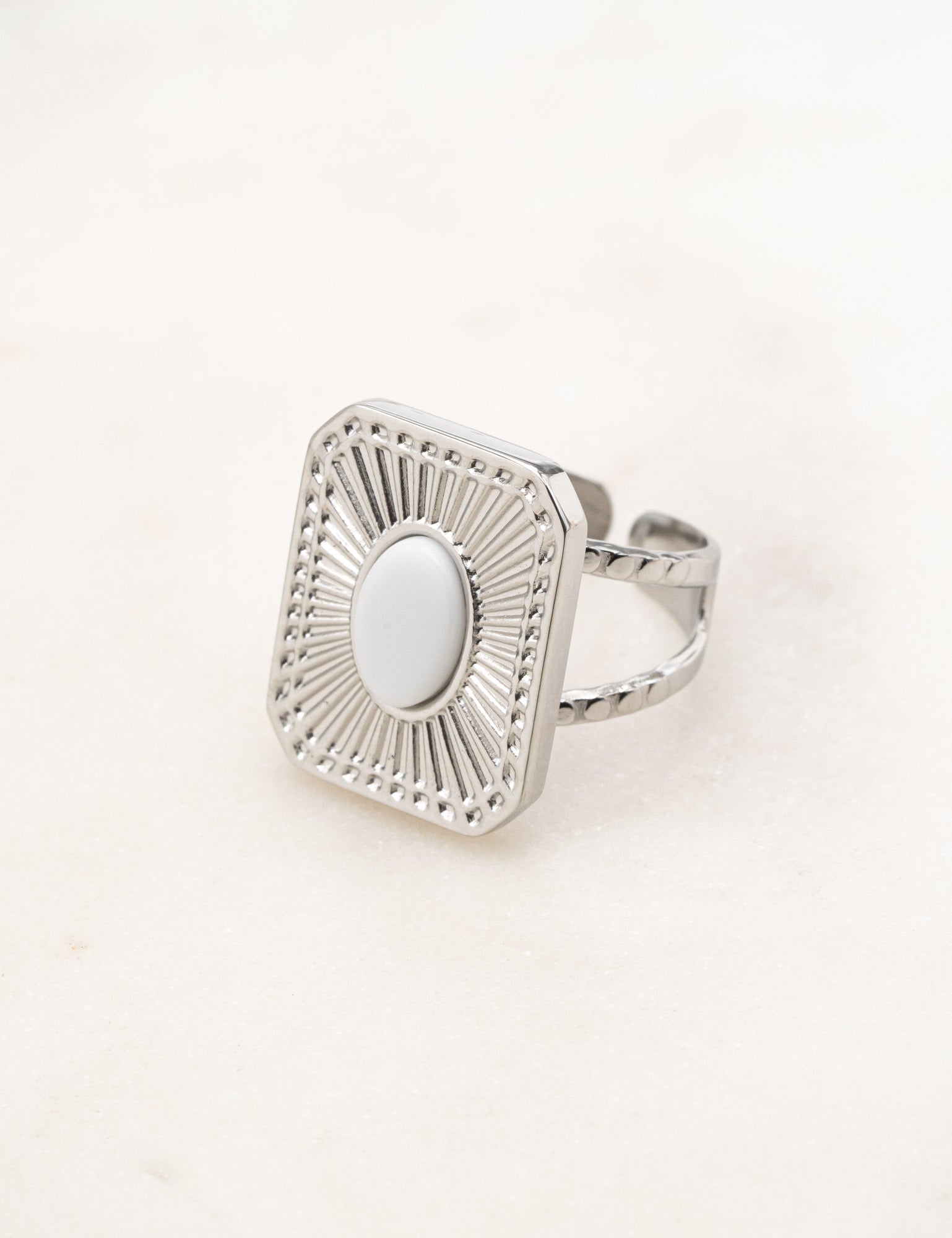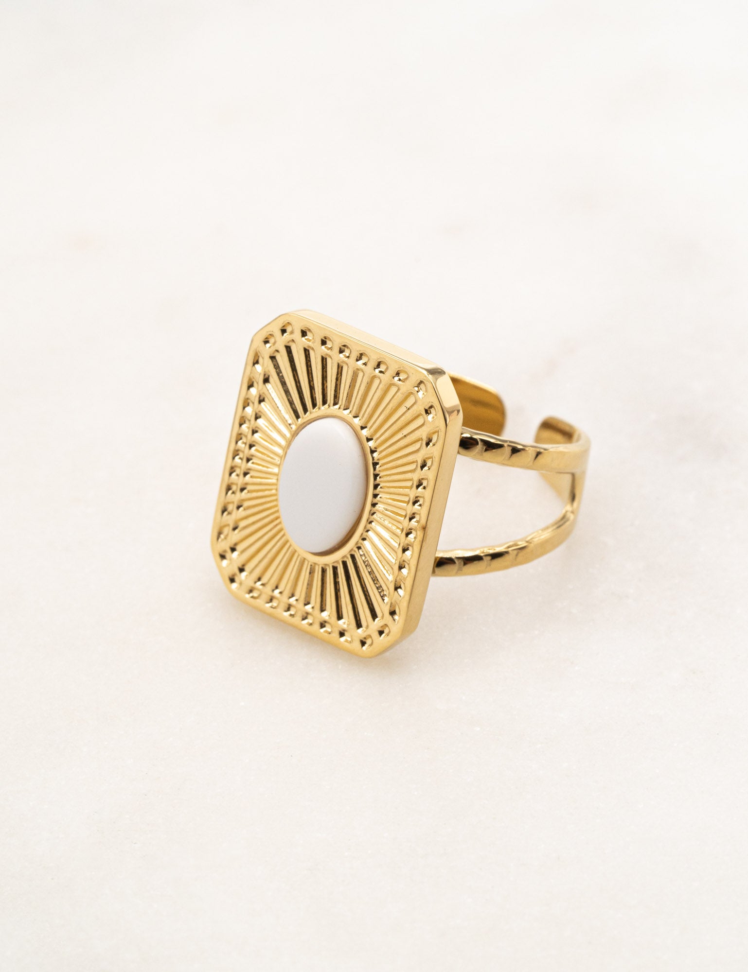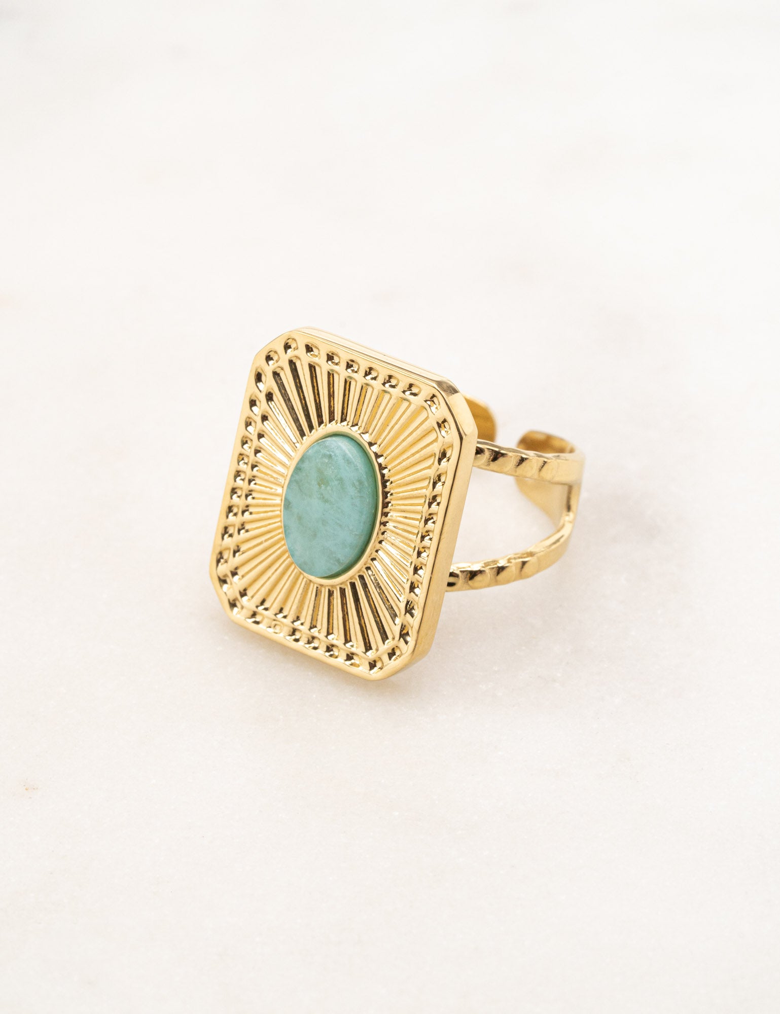 Bague ajustable composée d'une pièce texturée, ornée d'une pierre naturelle.