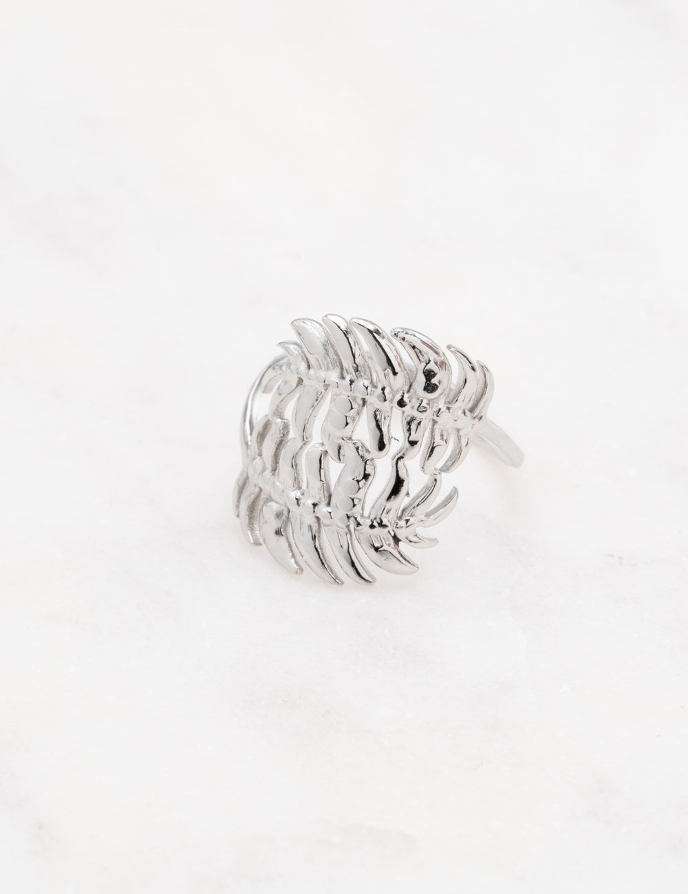 Bague ajustable au motif de feuillages.