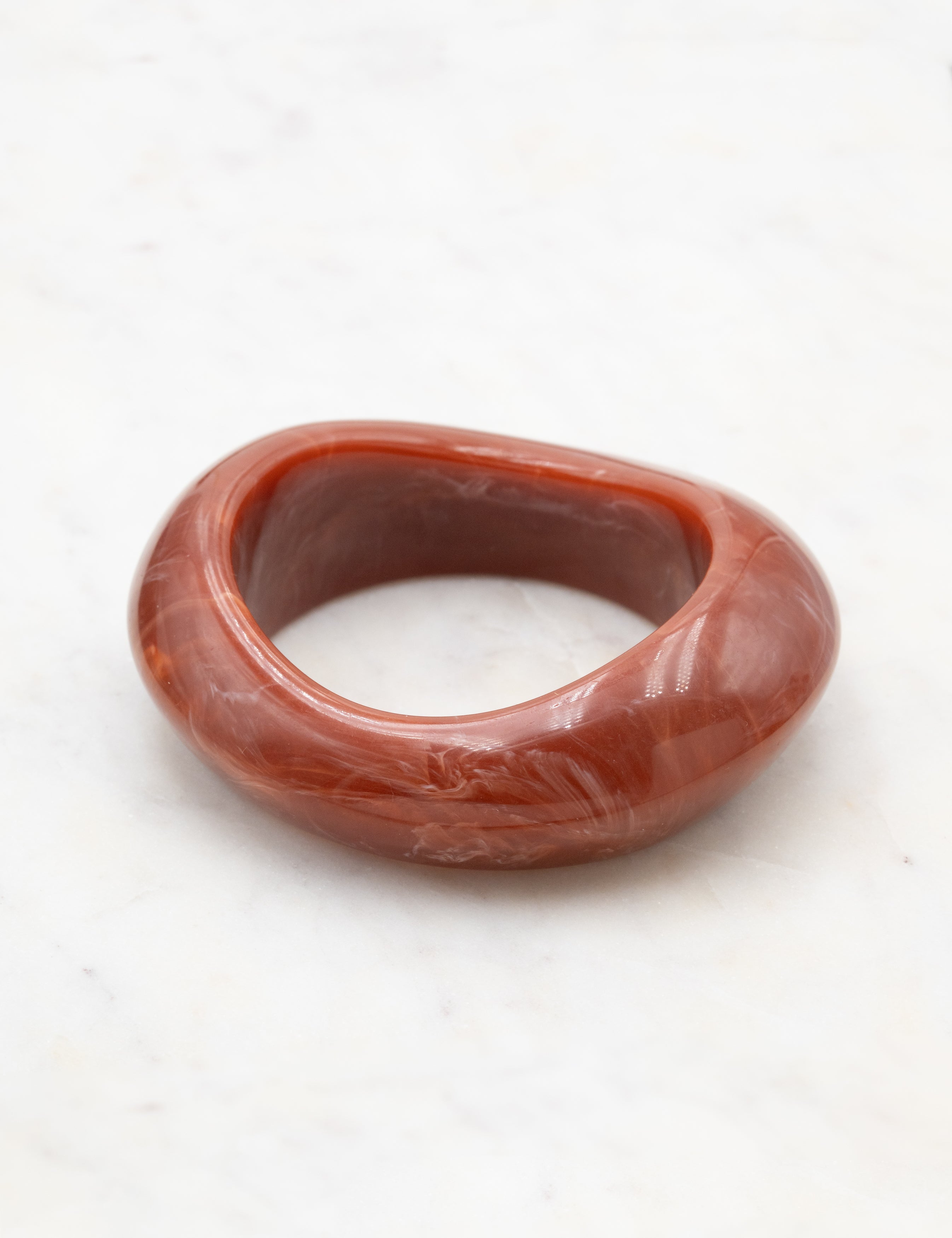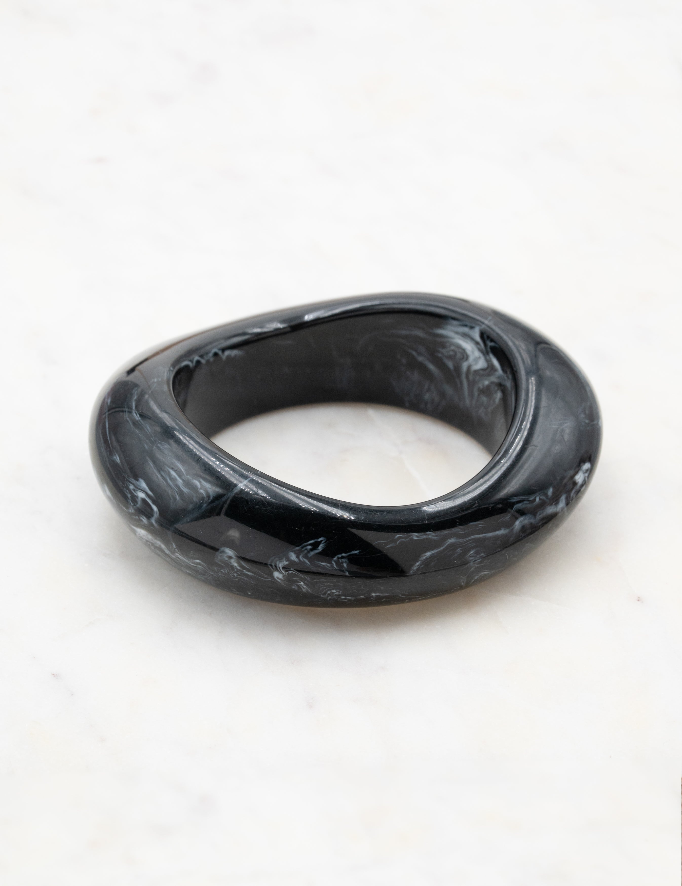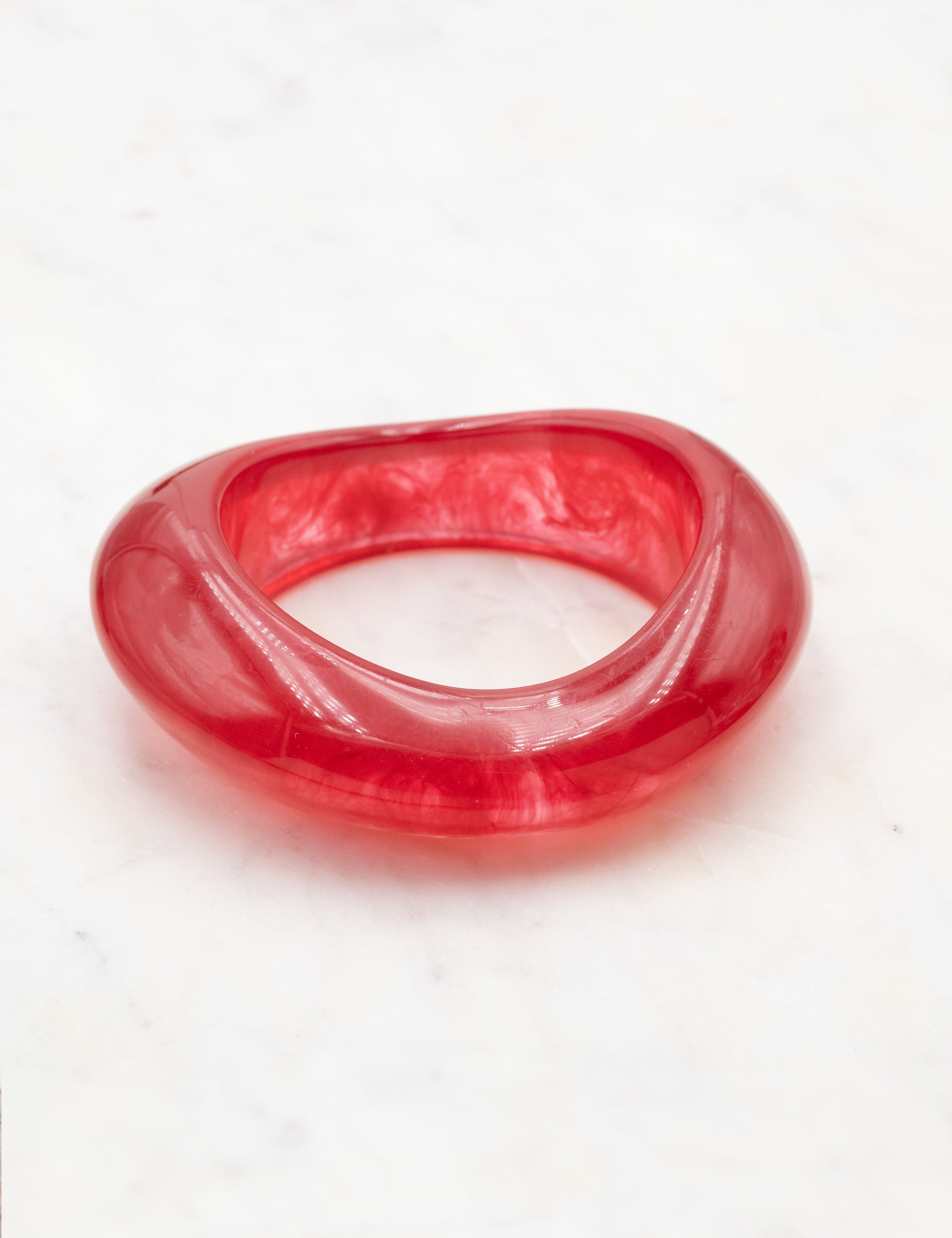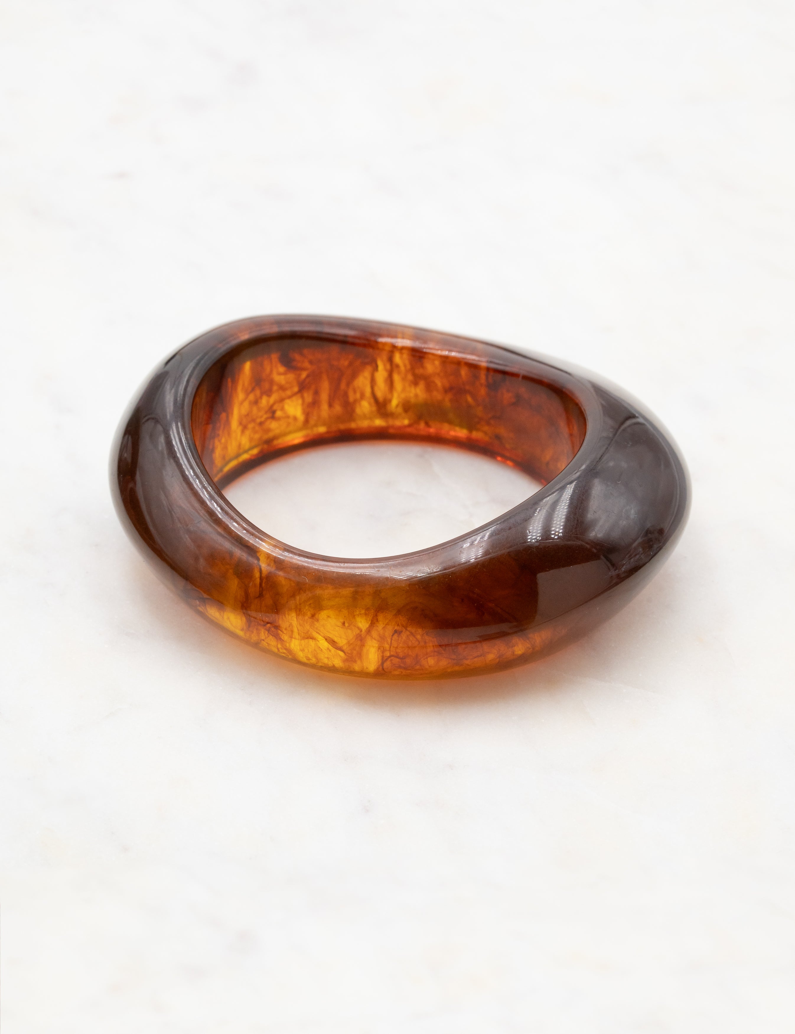 Bracelet graphique type jonc fermé (non réglable) en résine acétate colorée.