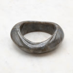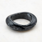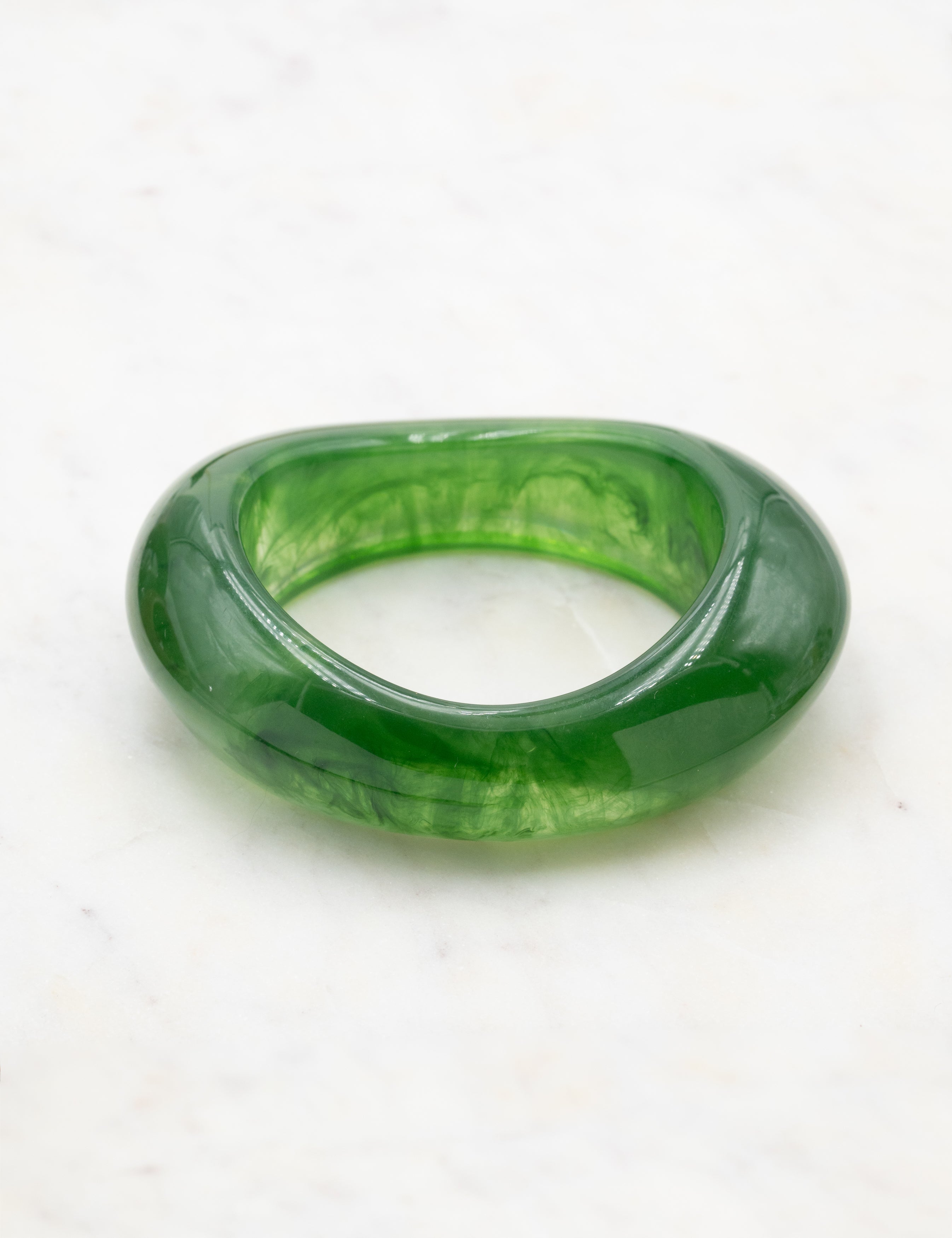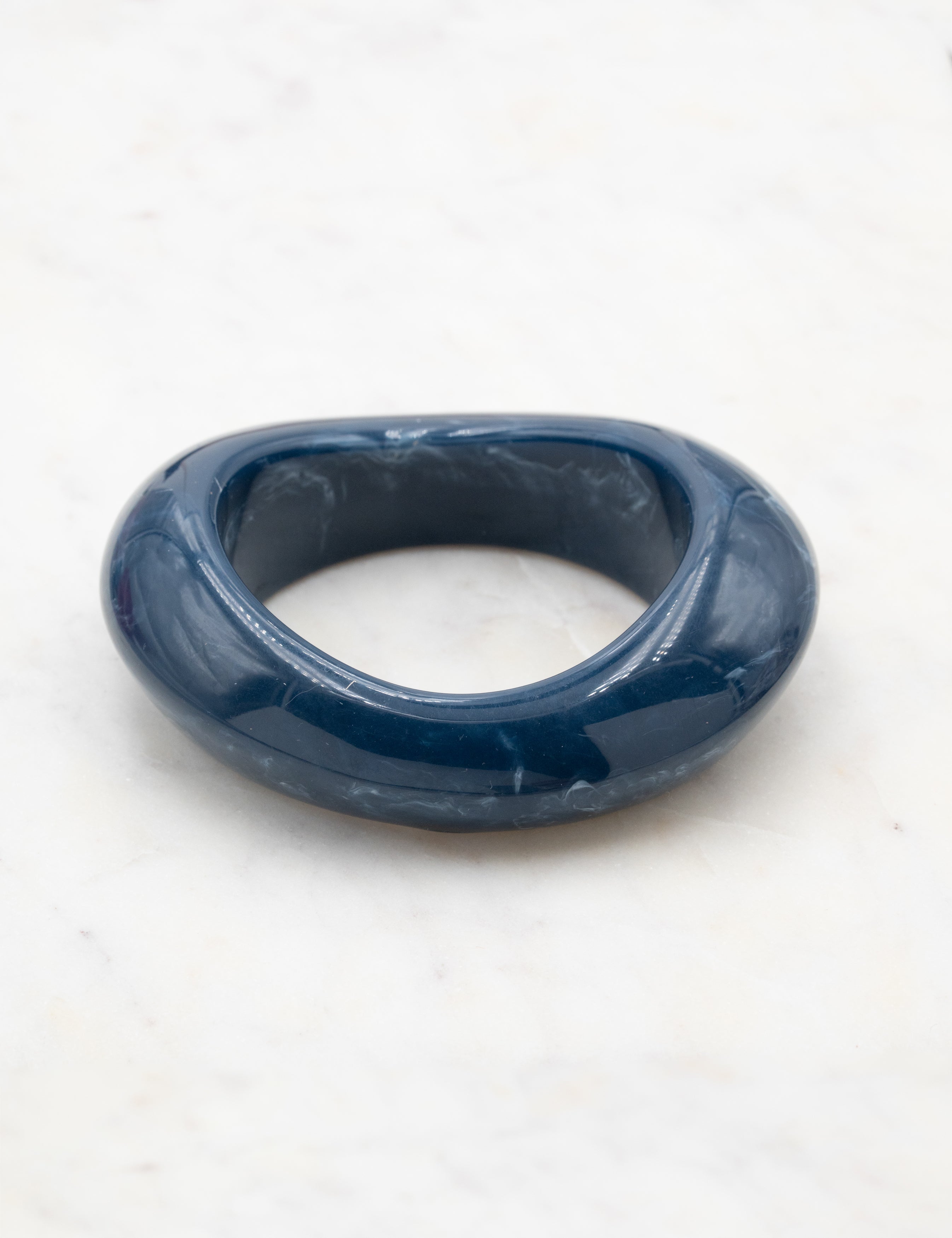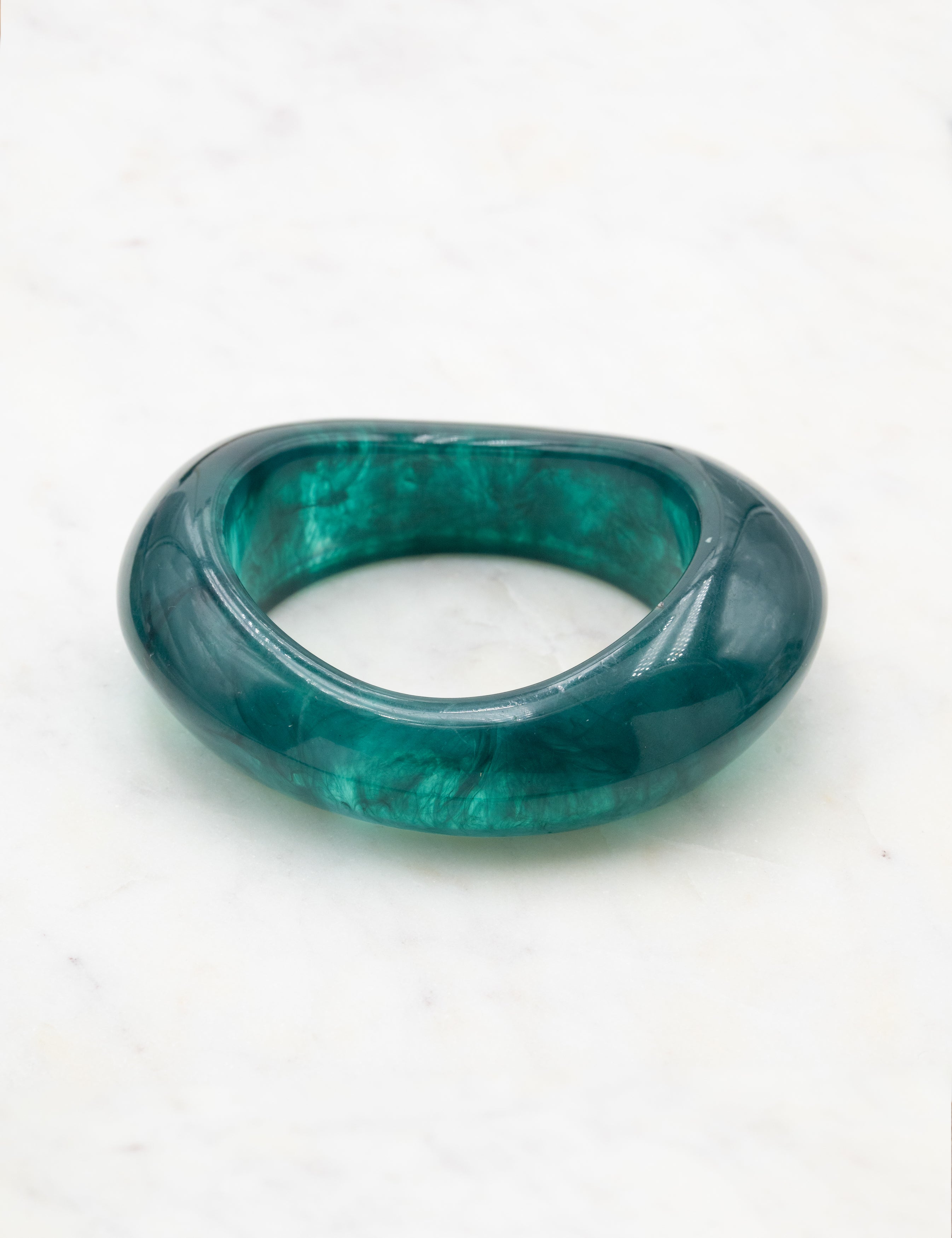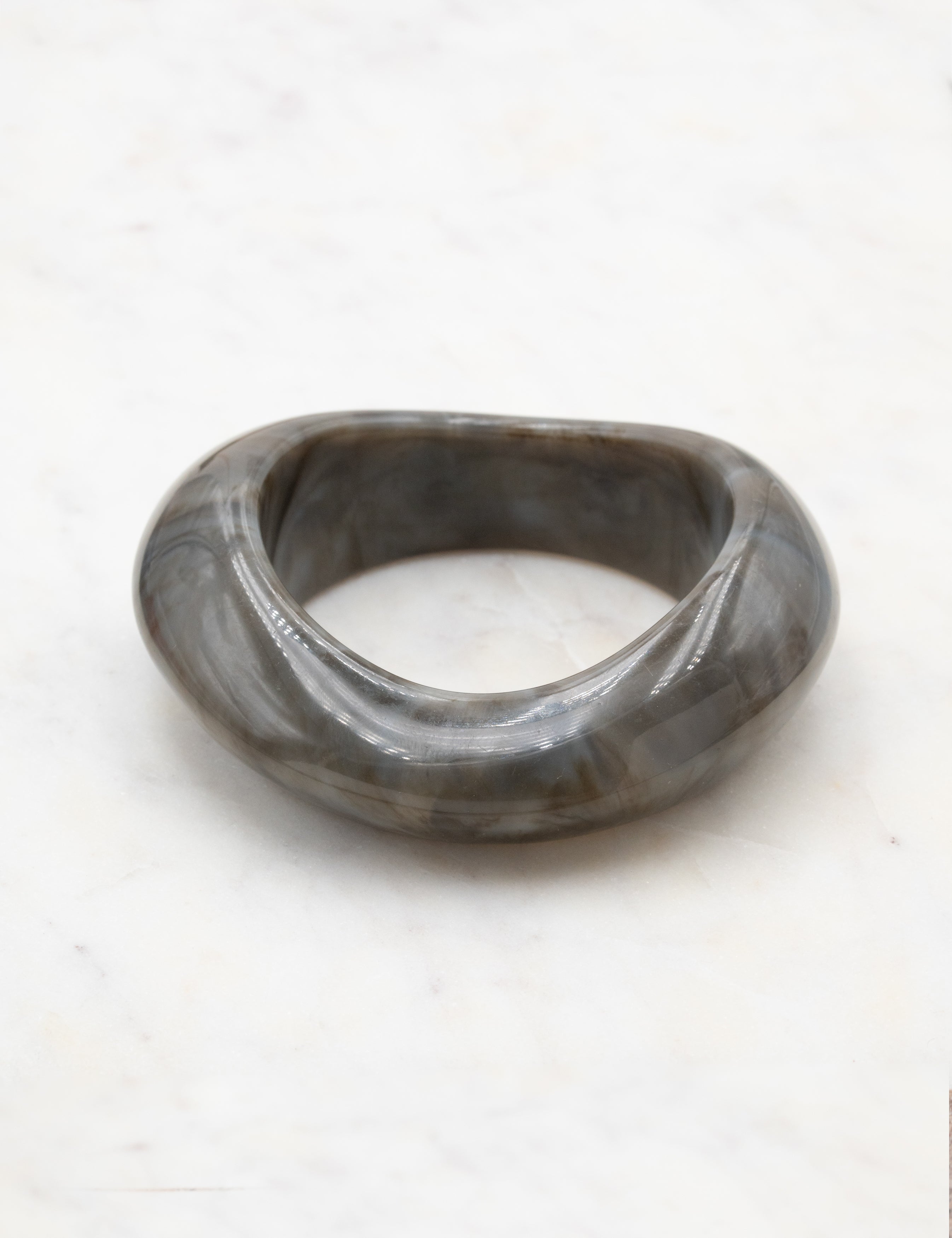 Bracelet graphique type jonc fermé (non réglable) en résine acétate colorée.