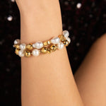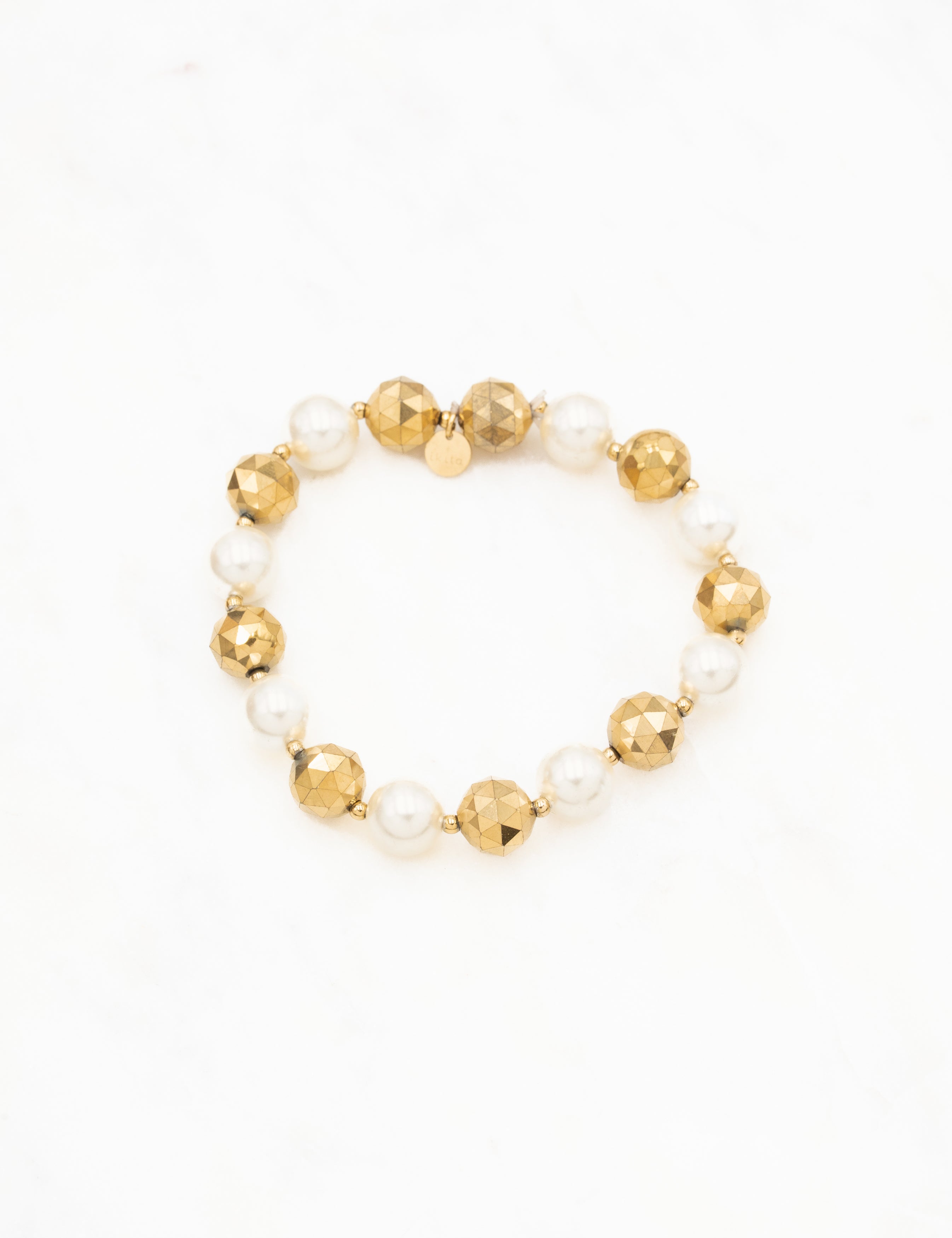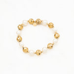 Bracelet élastique composé d'un joli enfilage de perles d'imitation rondes et de perles facetées en acier.