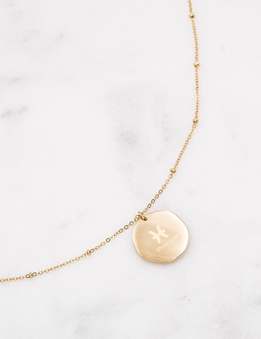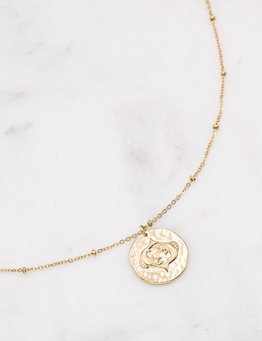 Collier sur chaine réglable avec pendant au motif du signe du zodiaque.
