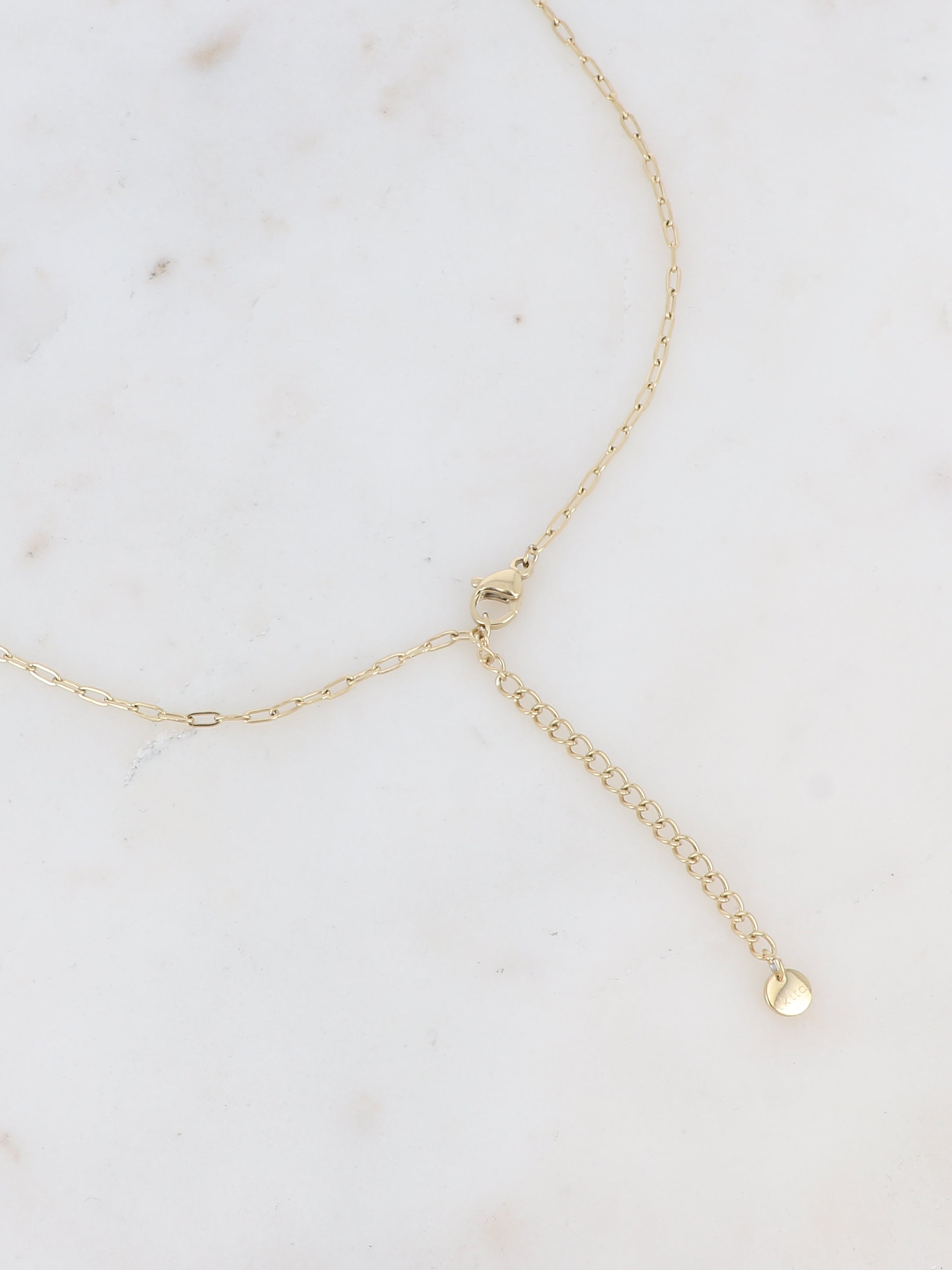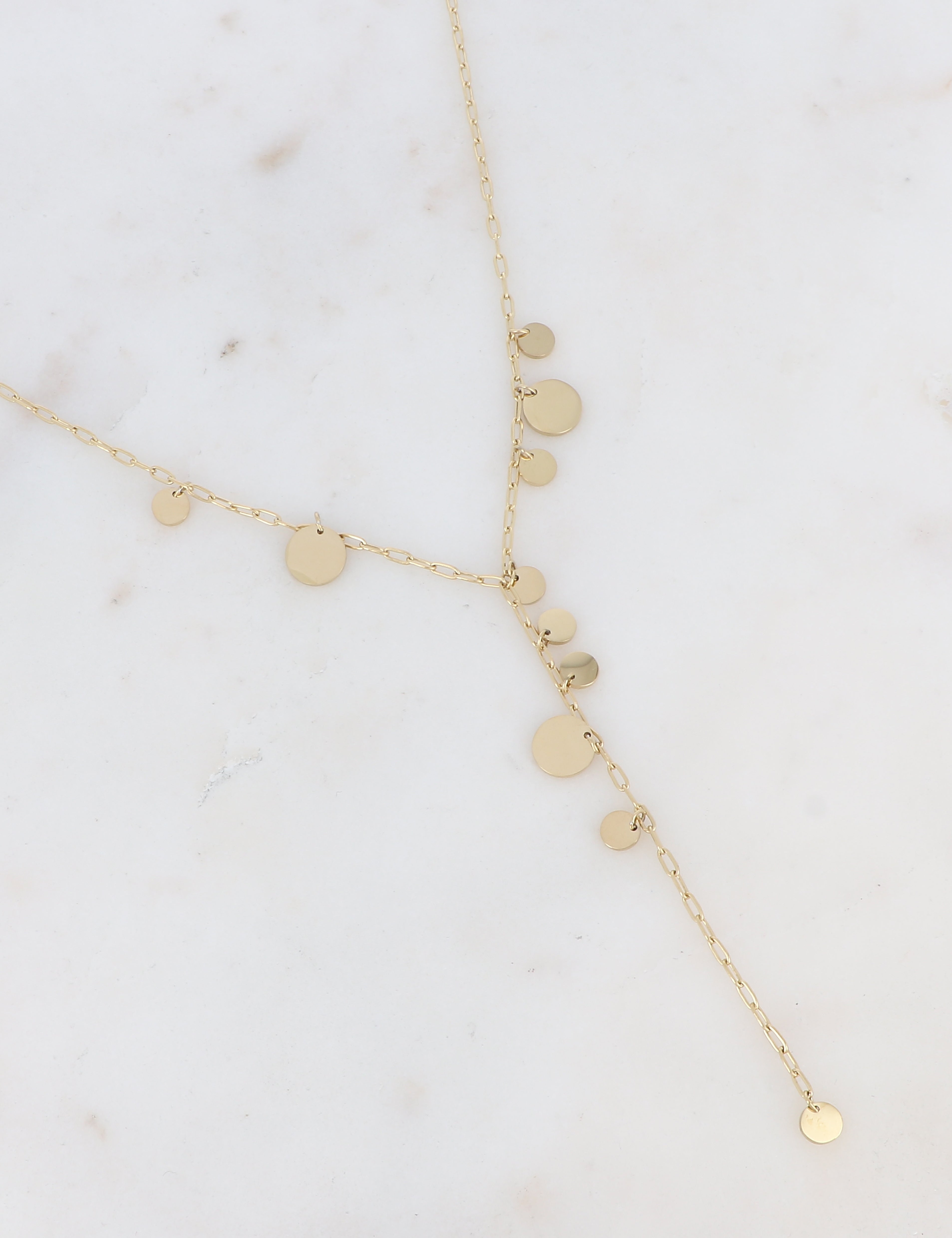 Collier sur chaine réglable Y avec des pastilles rondes.