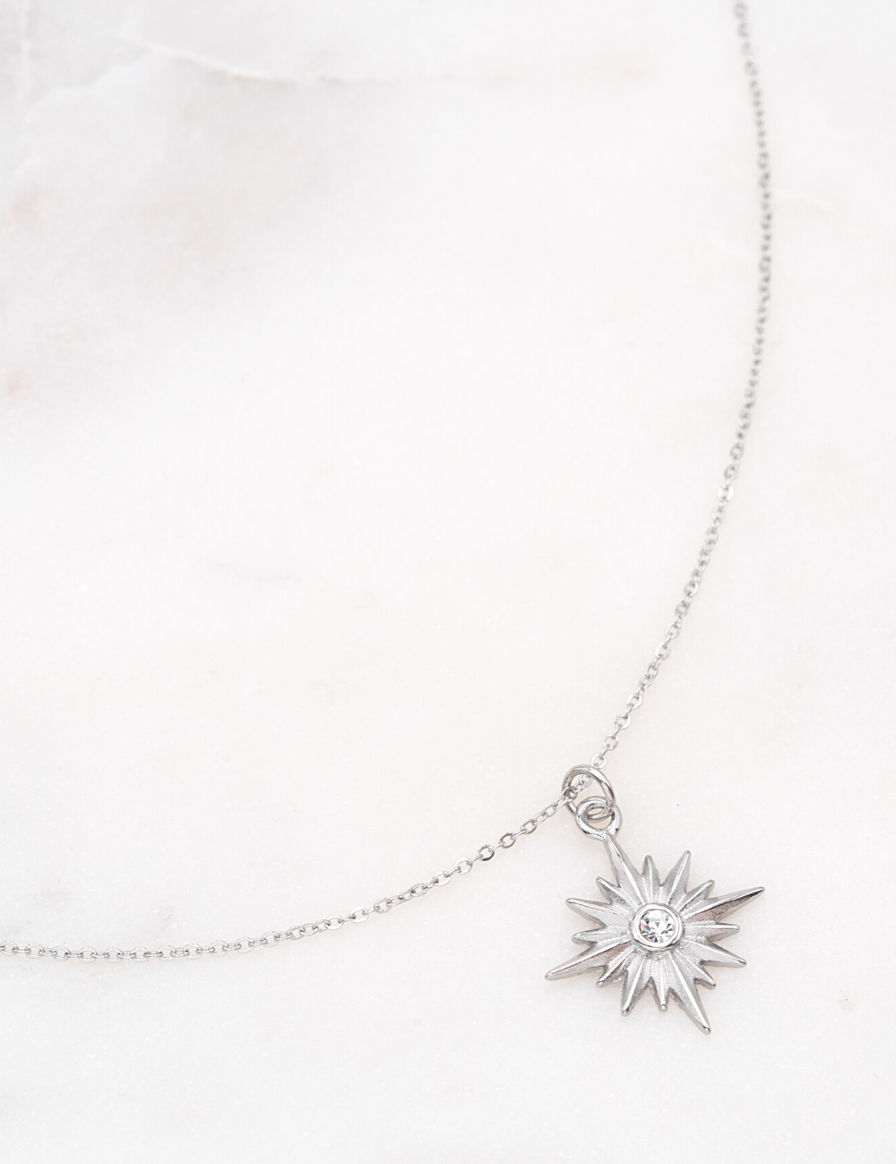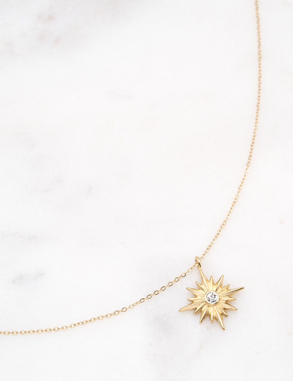 Collier réglable sur chaine composé d'une étoile texturée et sertie d'un strass.