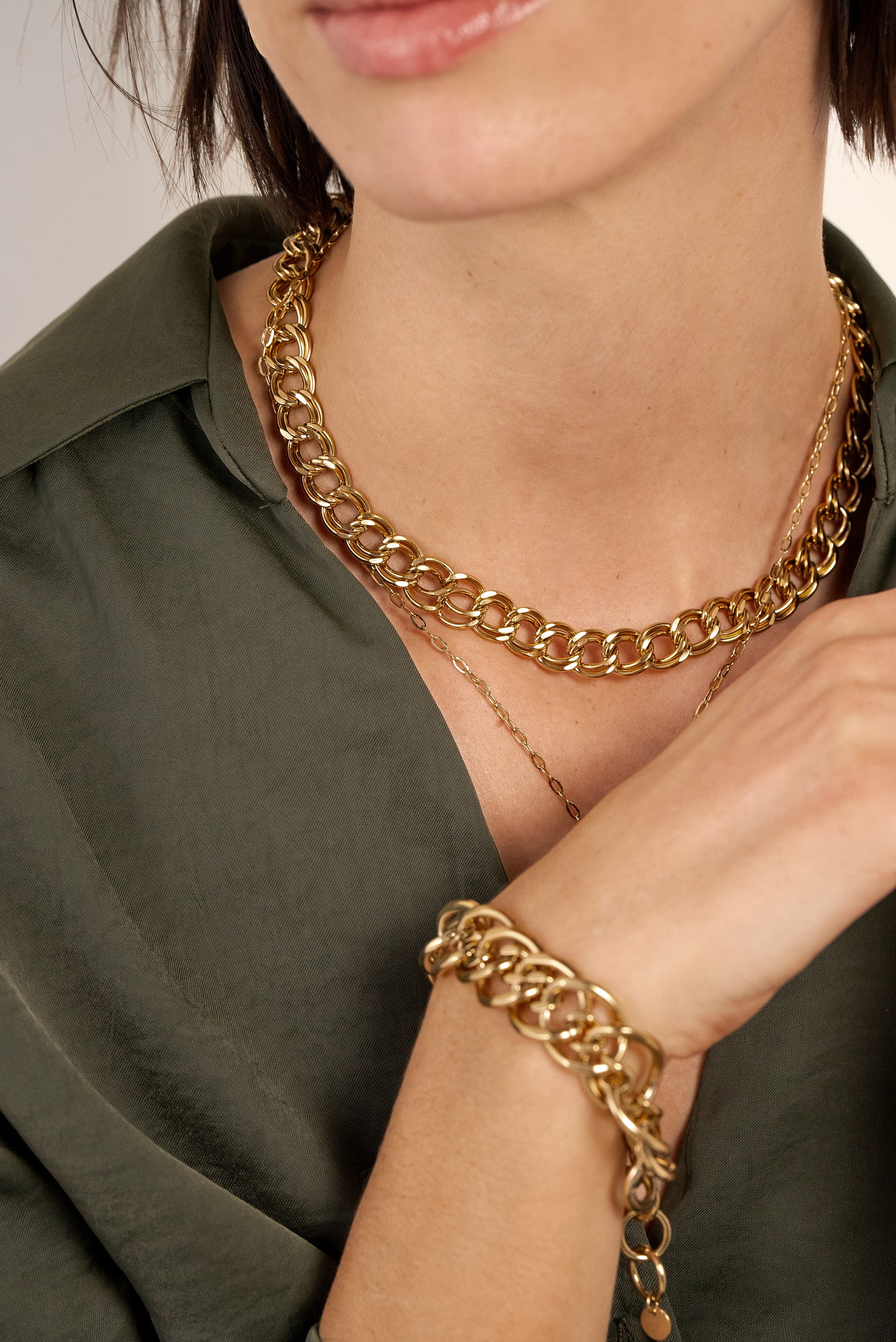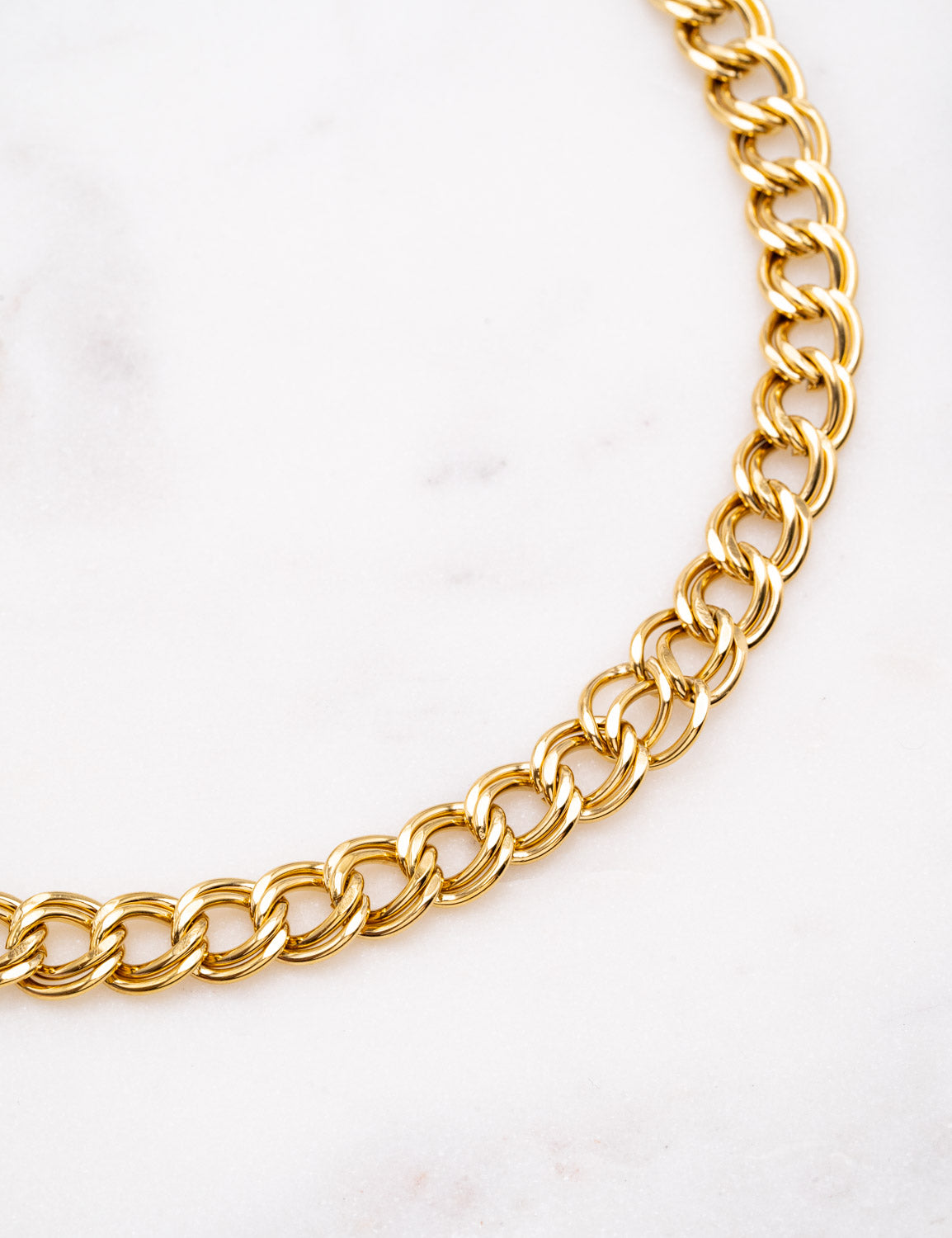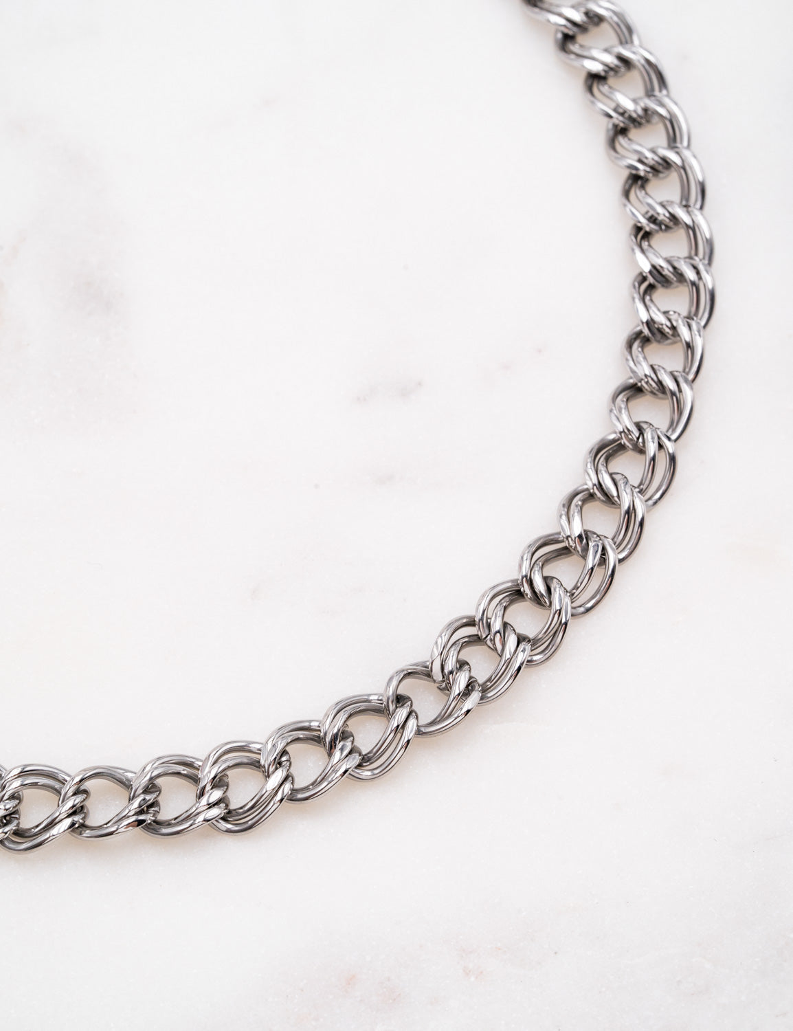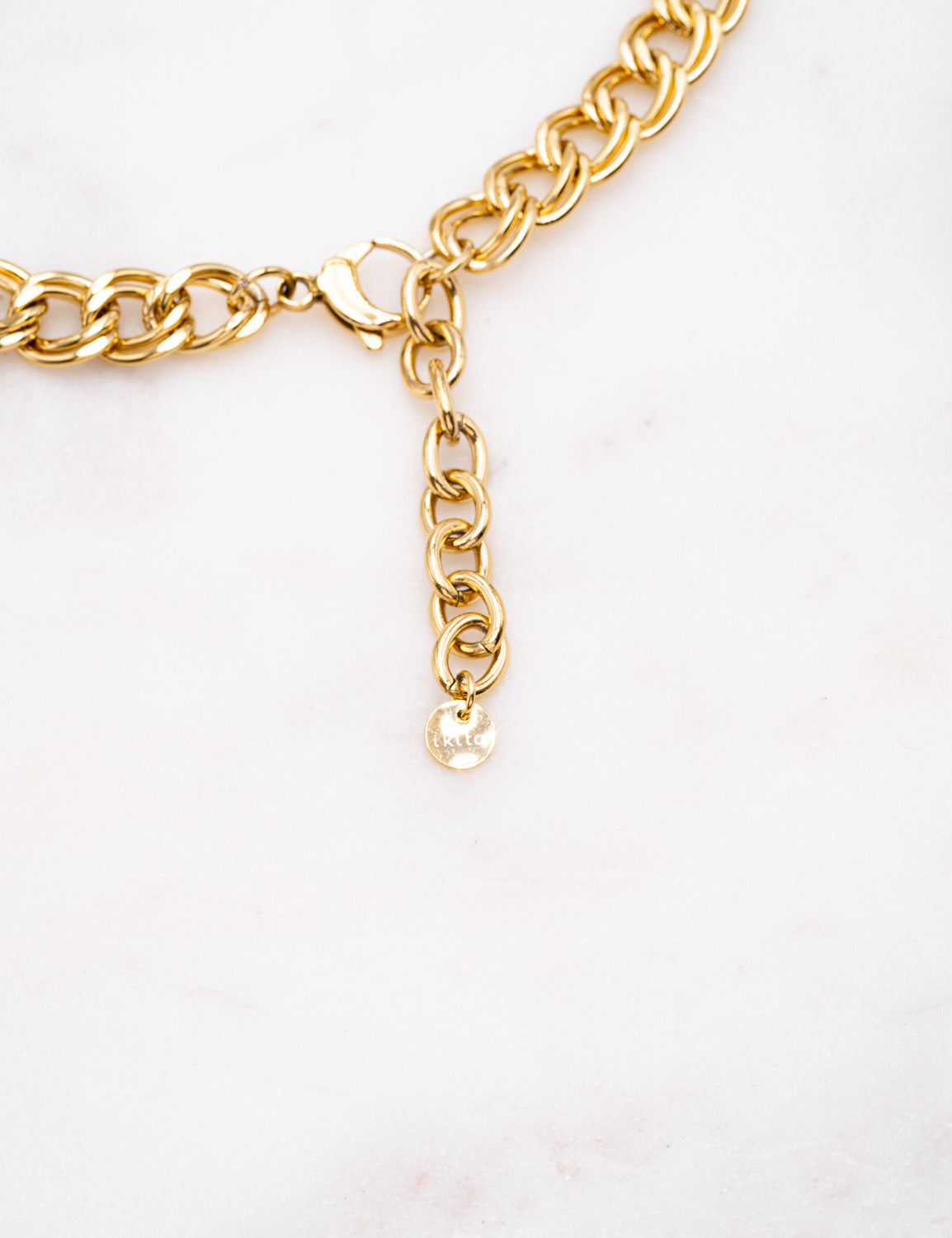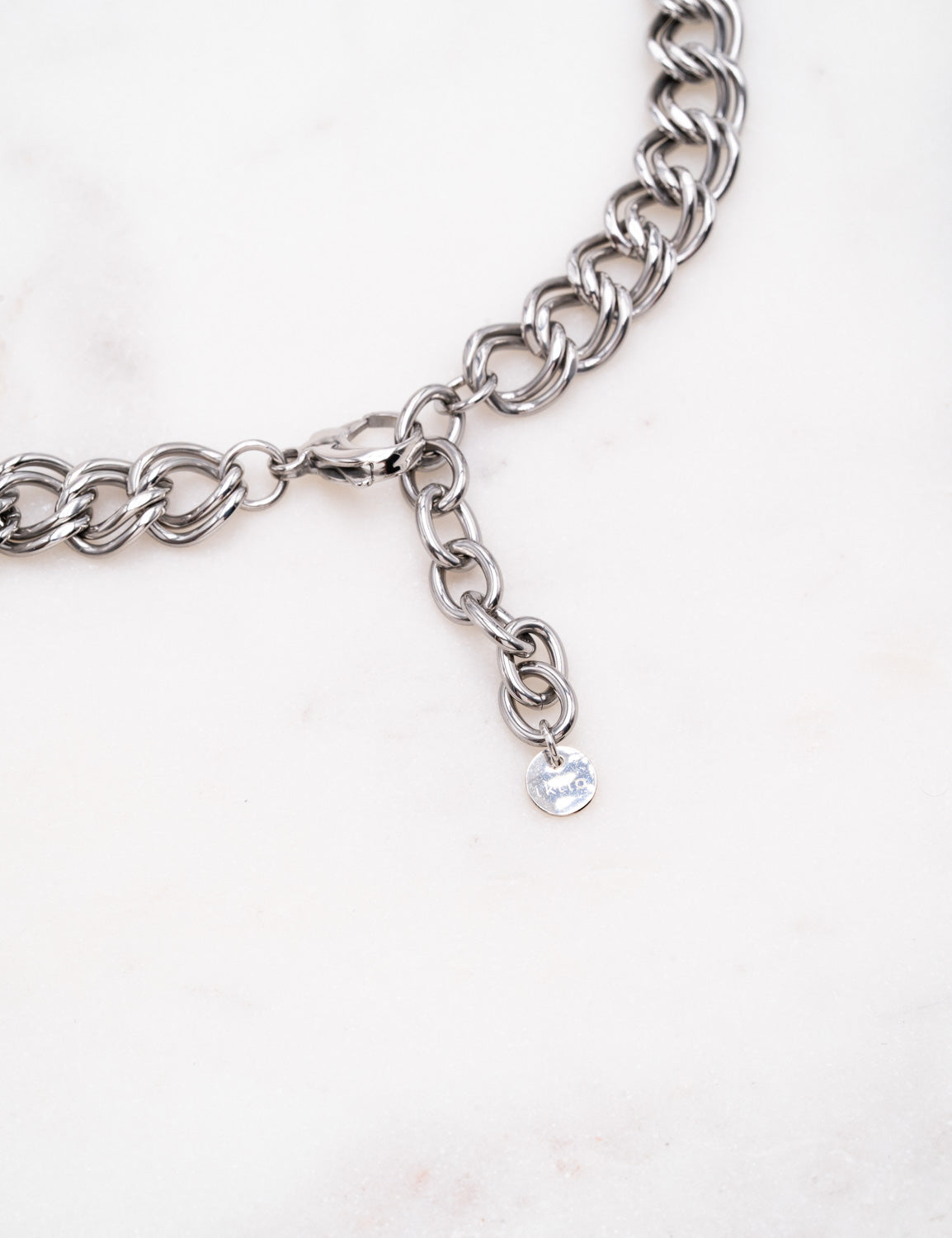 Collier sur chaine réglable à maillons. Fermoir mousqueton et chainette de réglage.