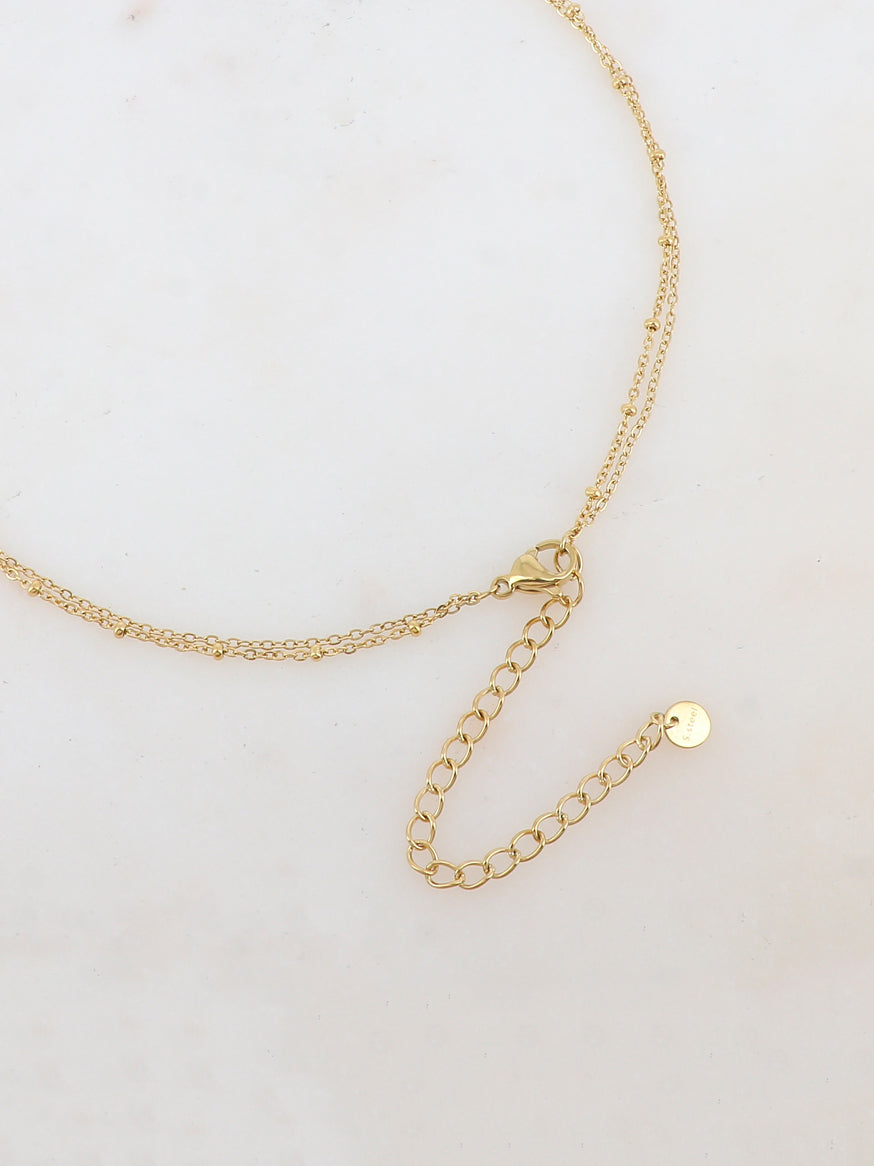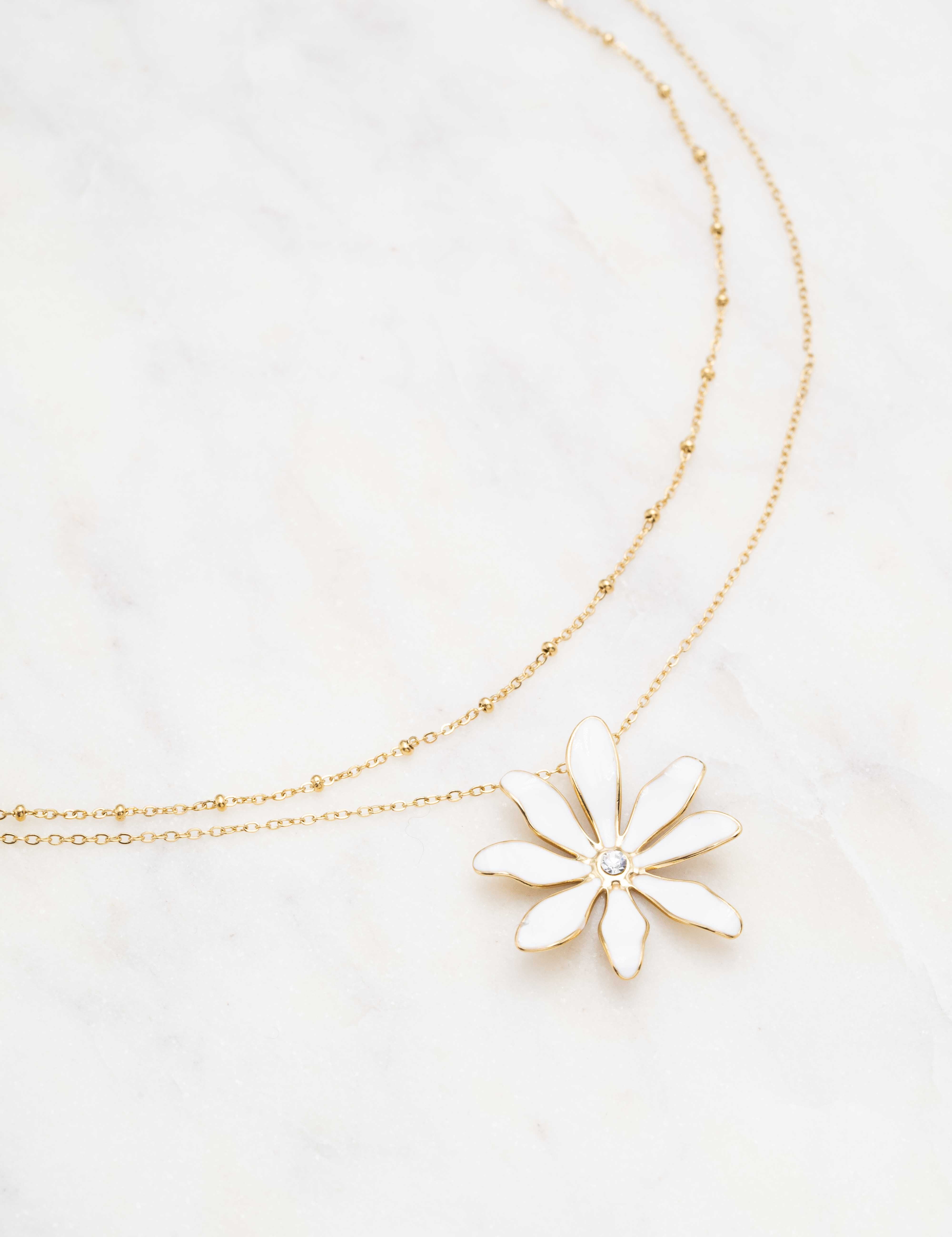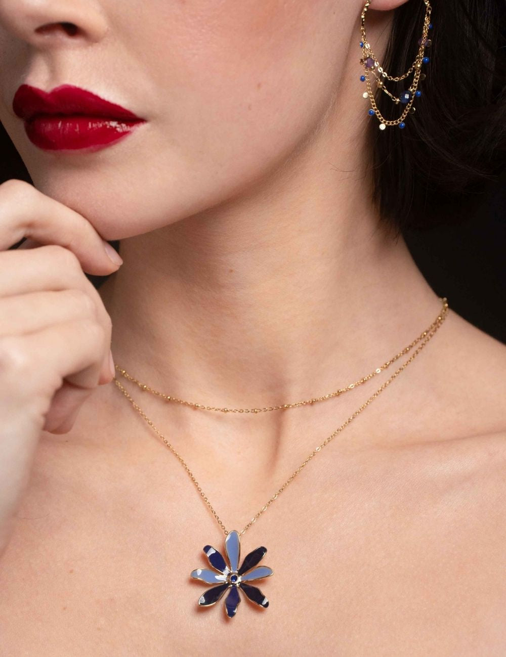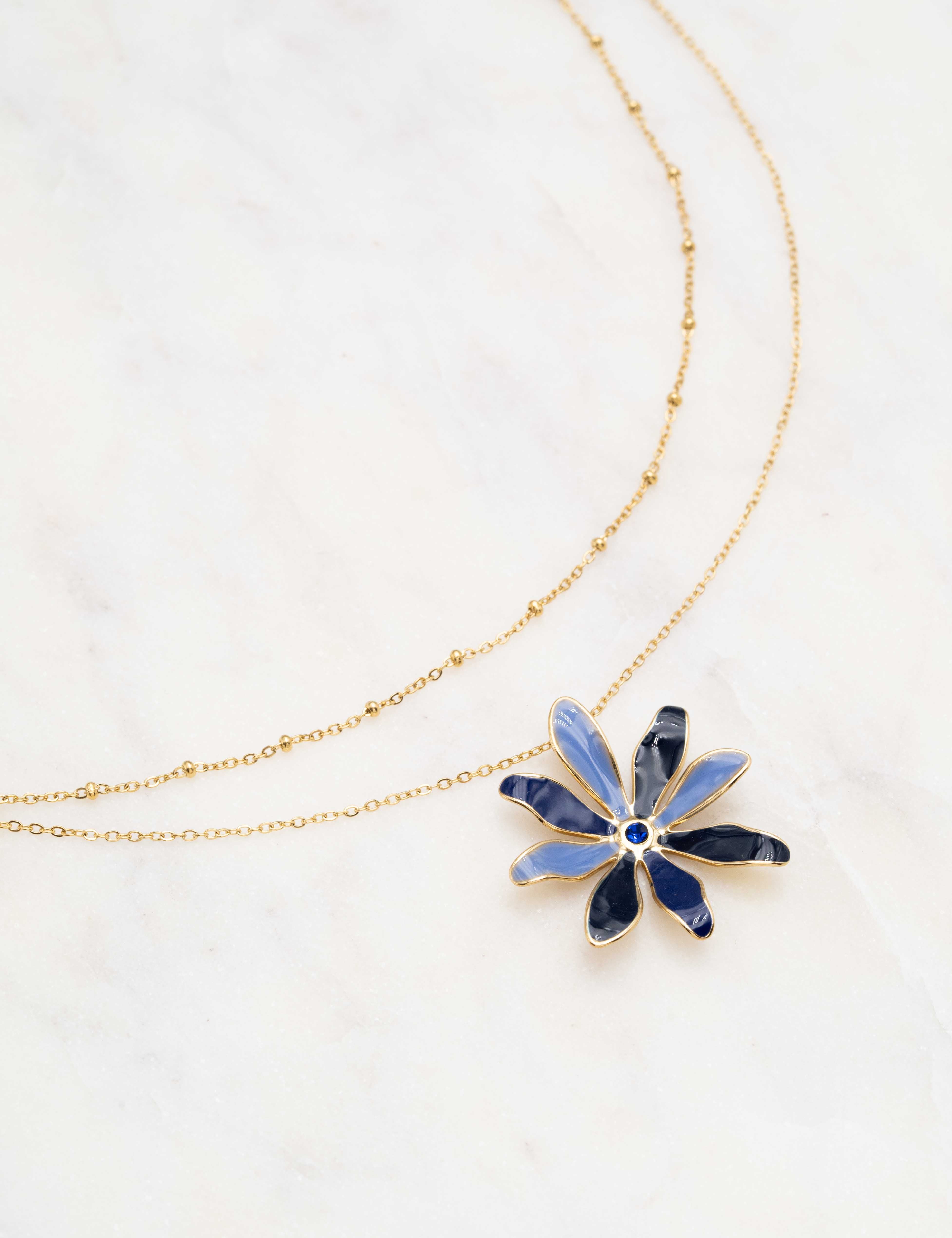 Collier réglable sur chaîne double rangs composé d'une pièce au motif floral émaillé coloré orné d'un strass.