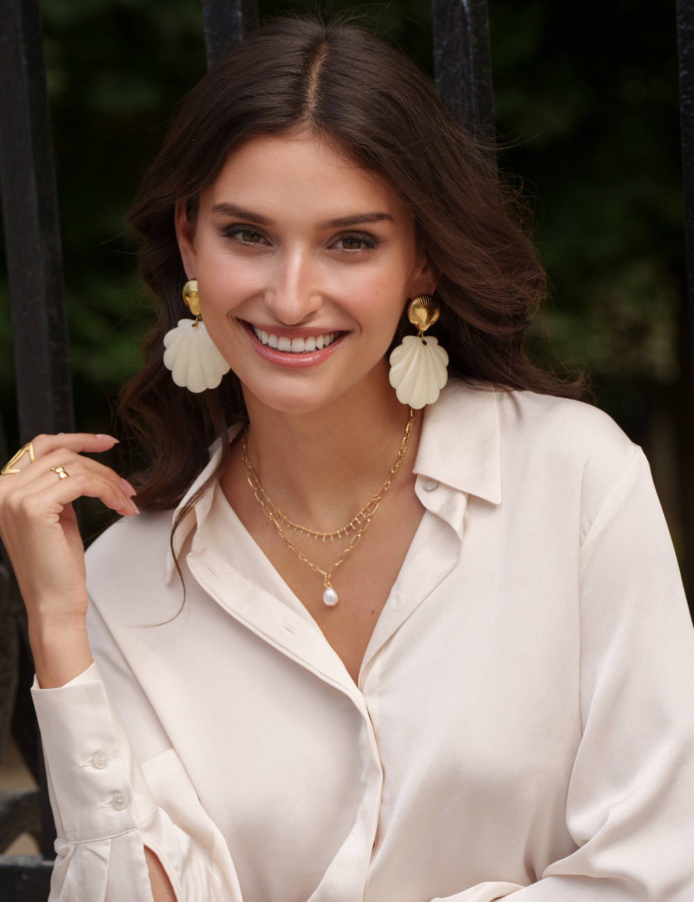 La perle d'eau douce étant naturelle, elle diffère d'une pièce à l'autre (forme et texture).
