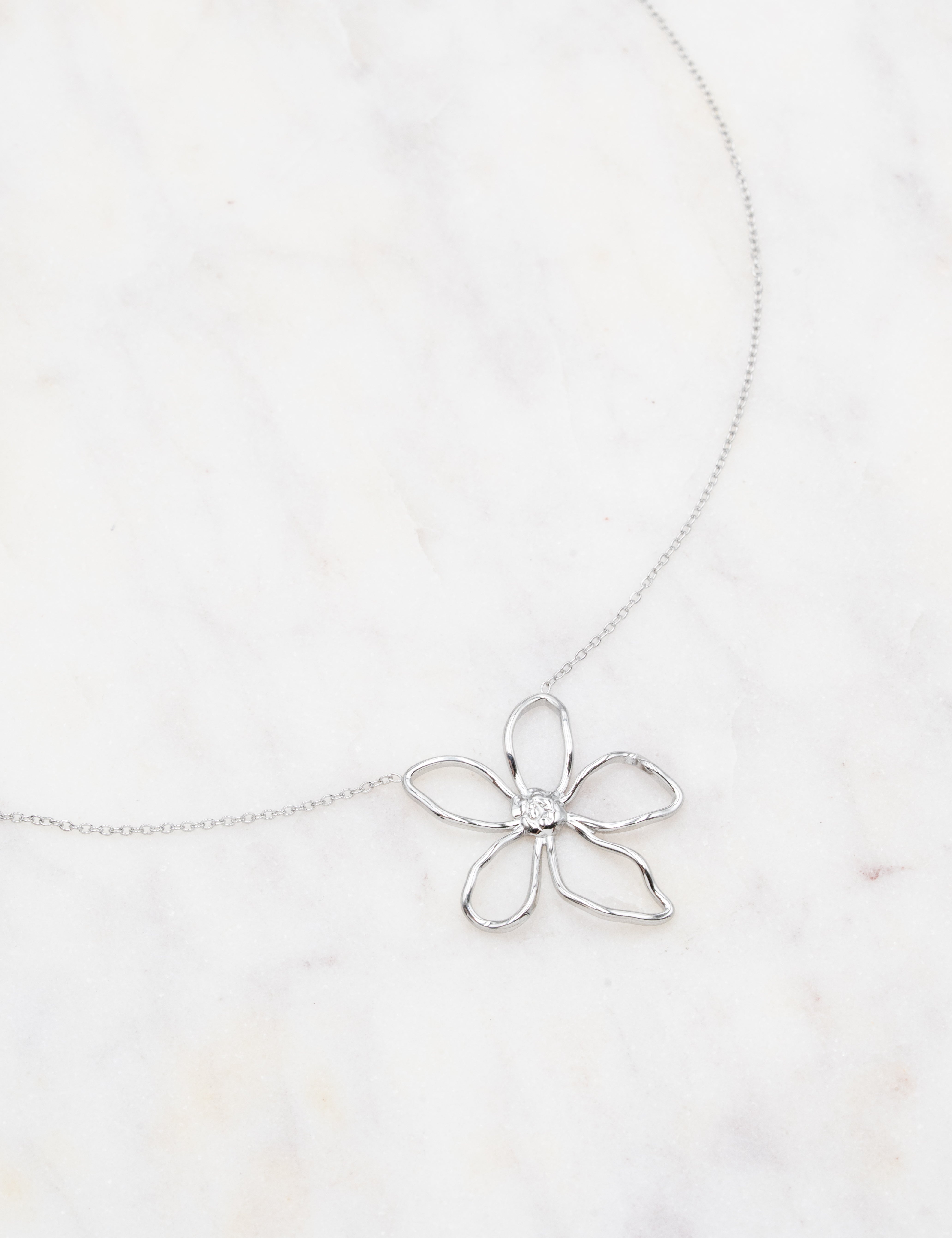 Collier réglable sur chaîne composé d'une fleur ajourée.