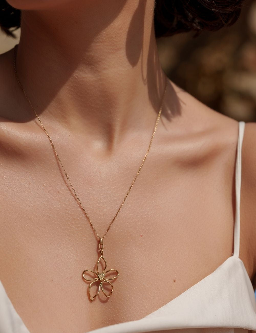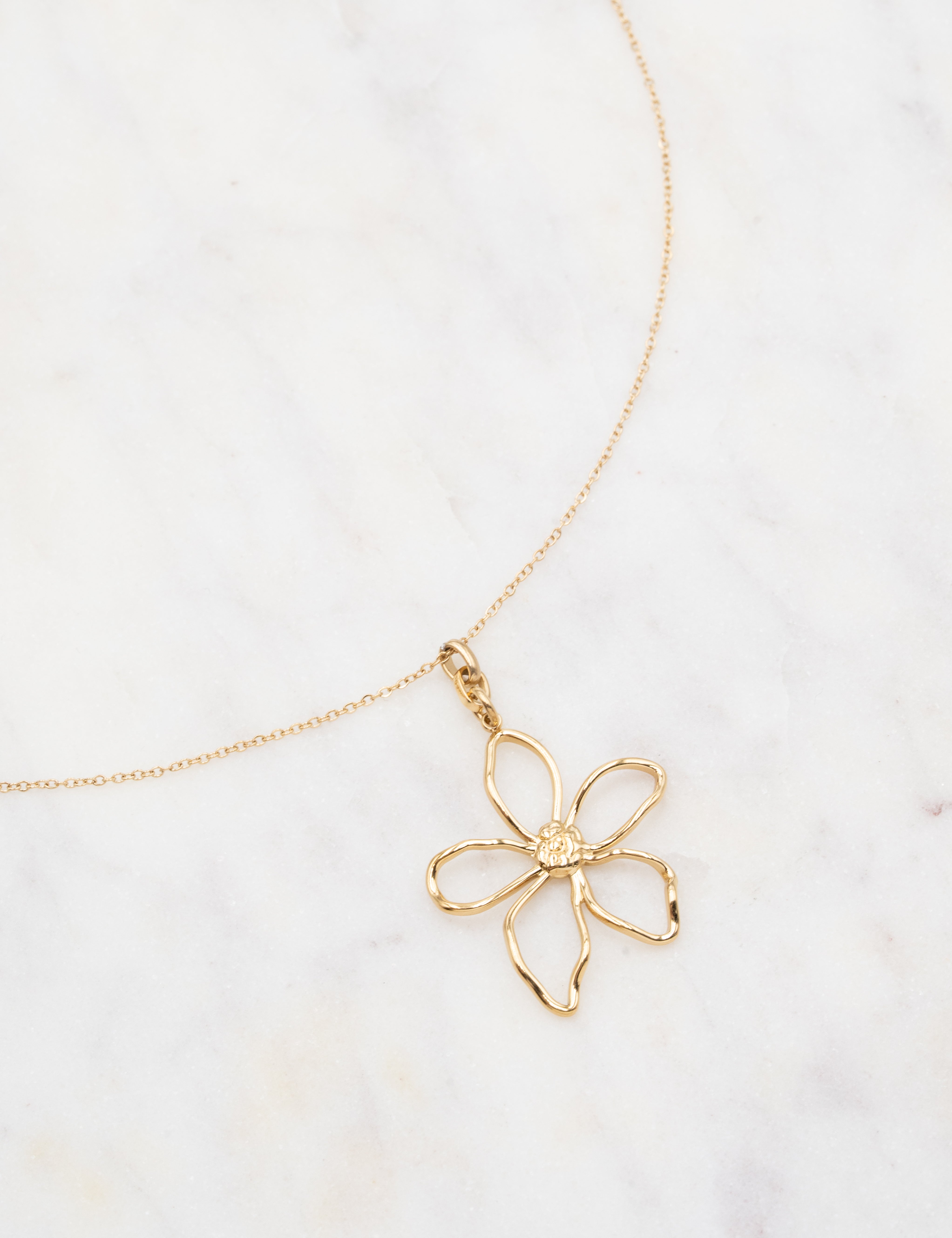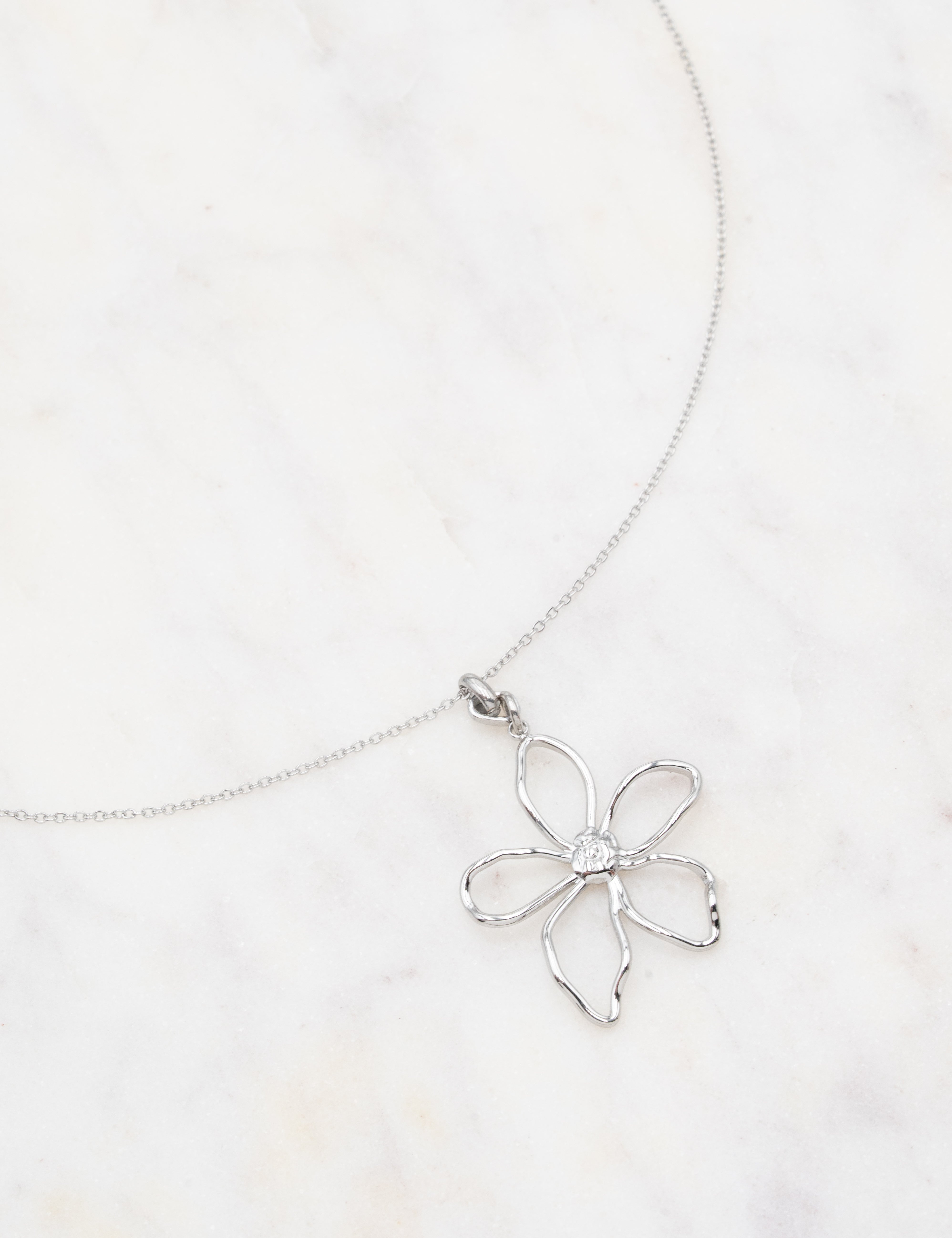 Collier réglable sur chaîne composé d'un pendant floral ajouré.