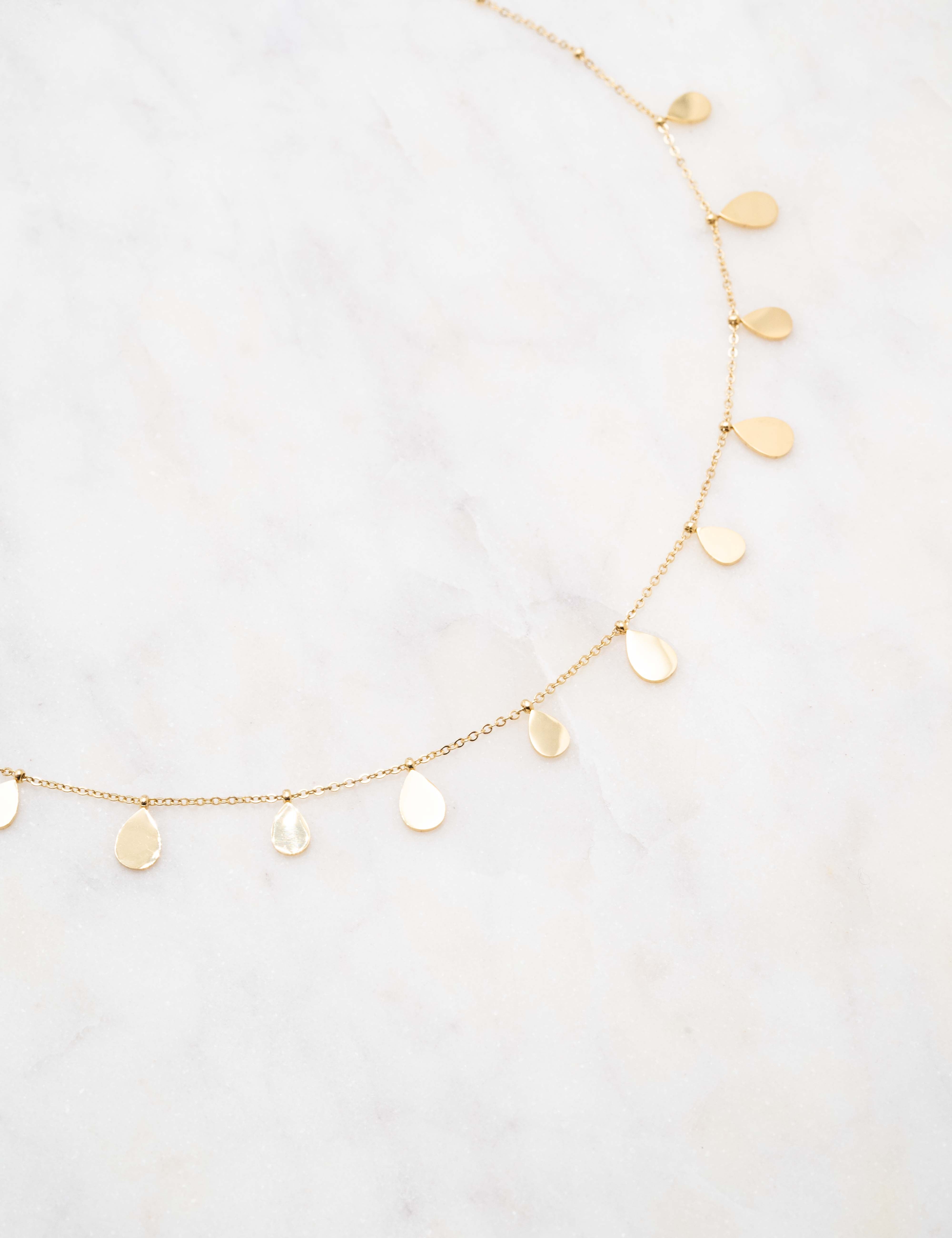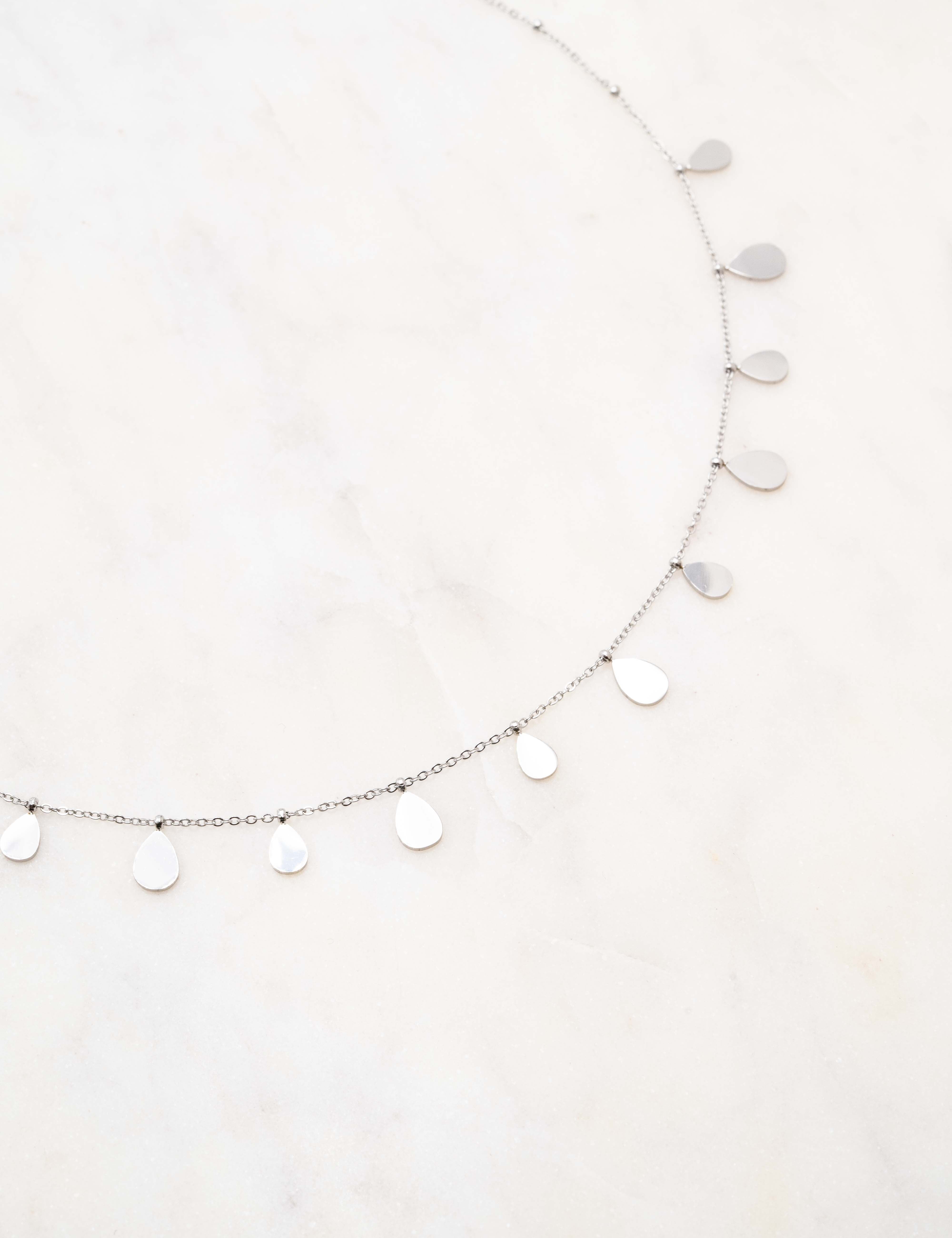 Collier réglable sur chaîne orné de pampilles graphiques (formes gouttes).