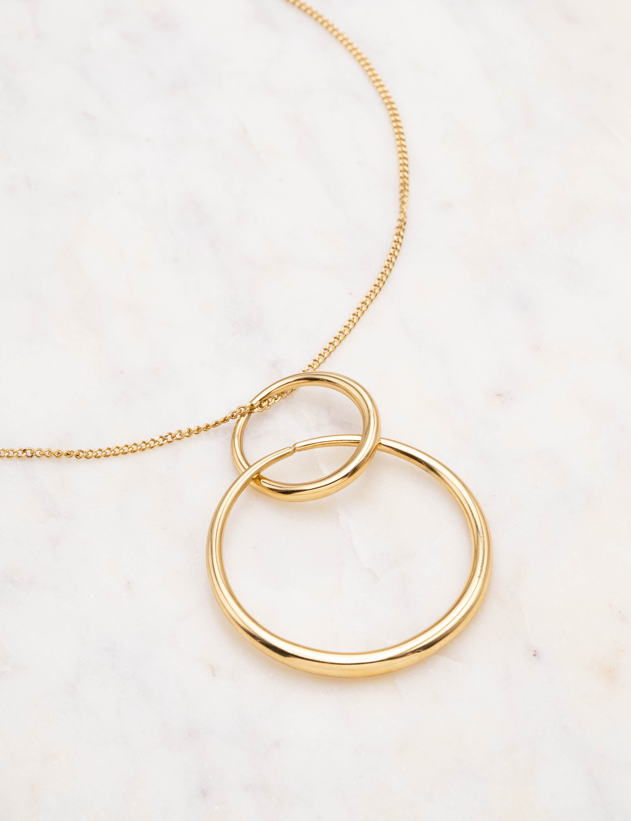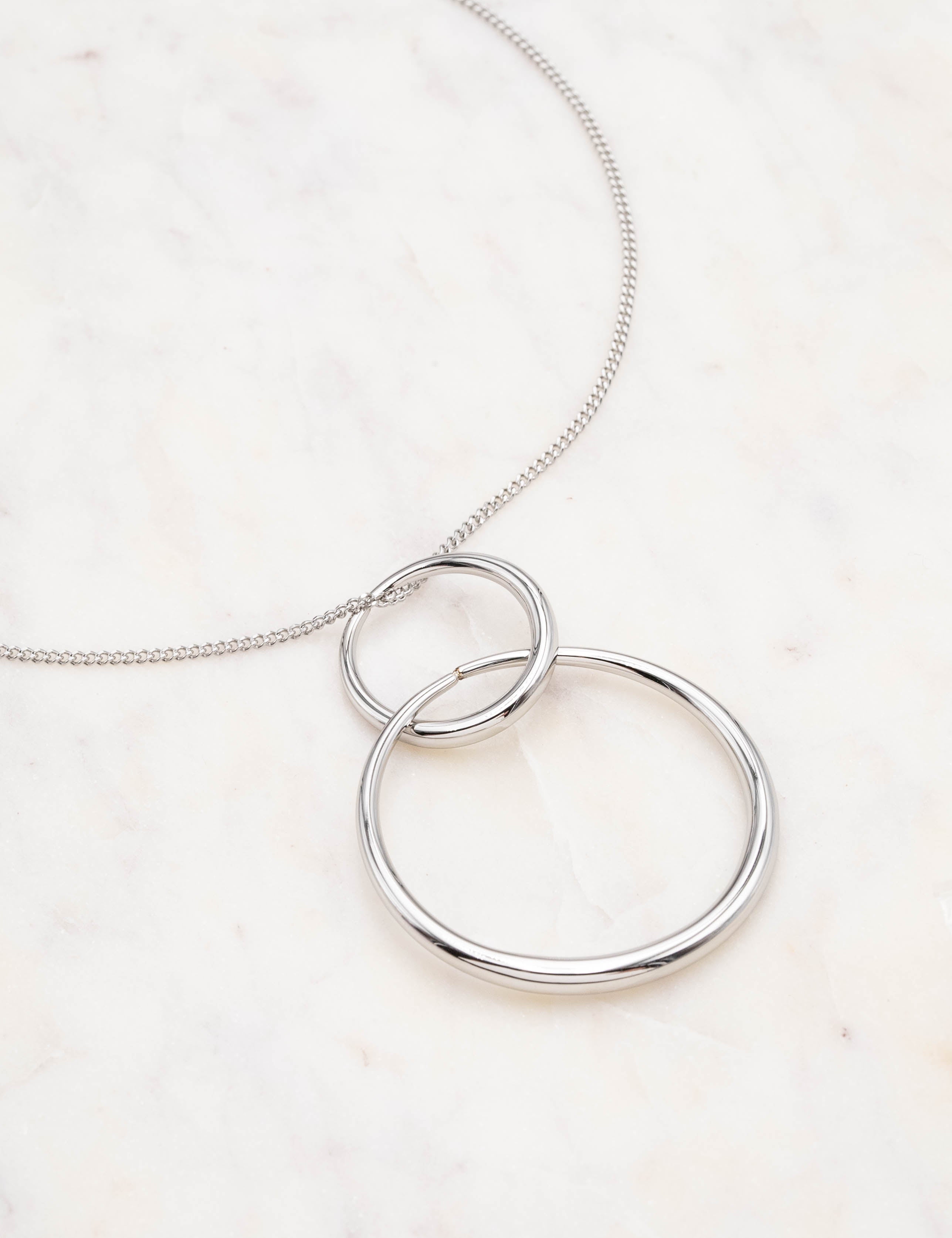 Collier réglable sur chaîne type sautoir composé d'un pendentif double anneau