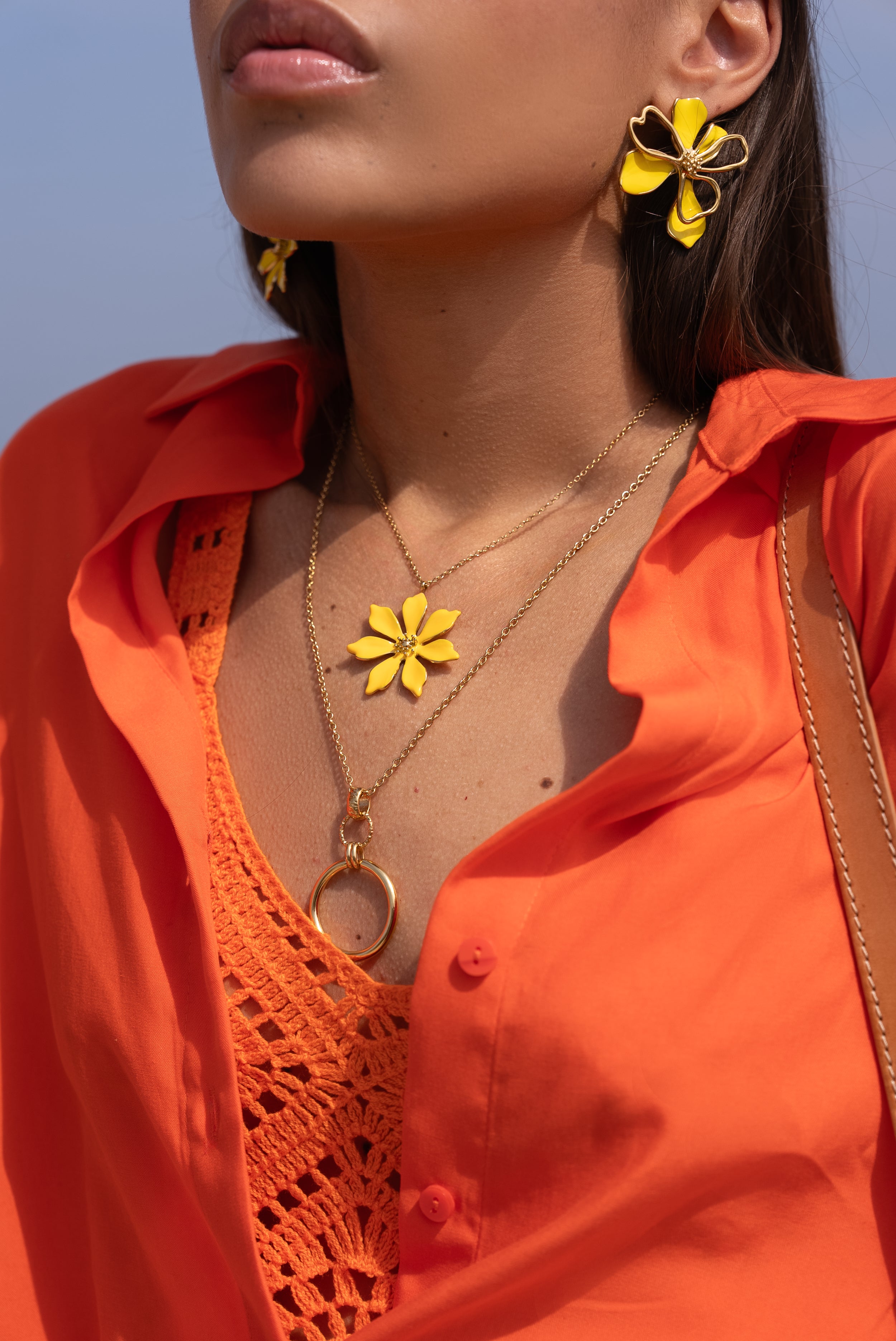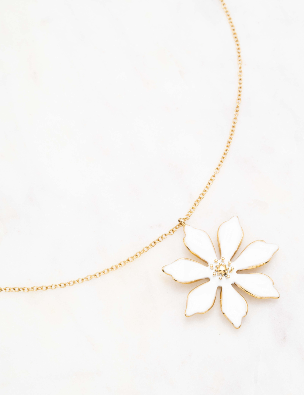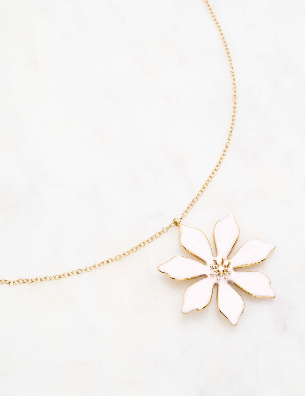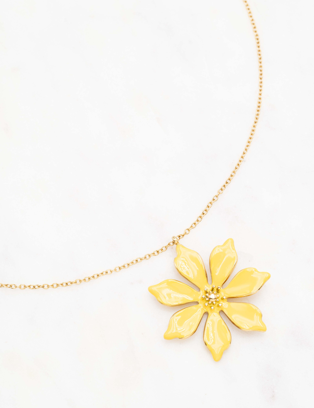 Collier réglable sur chaîne composé d'une fleur émaillée.