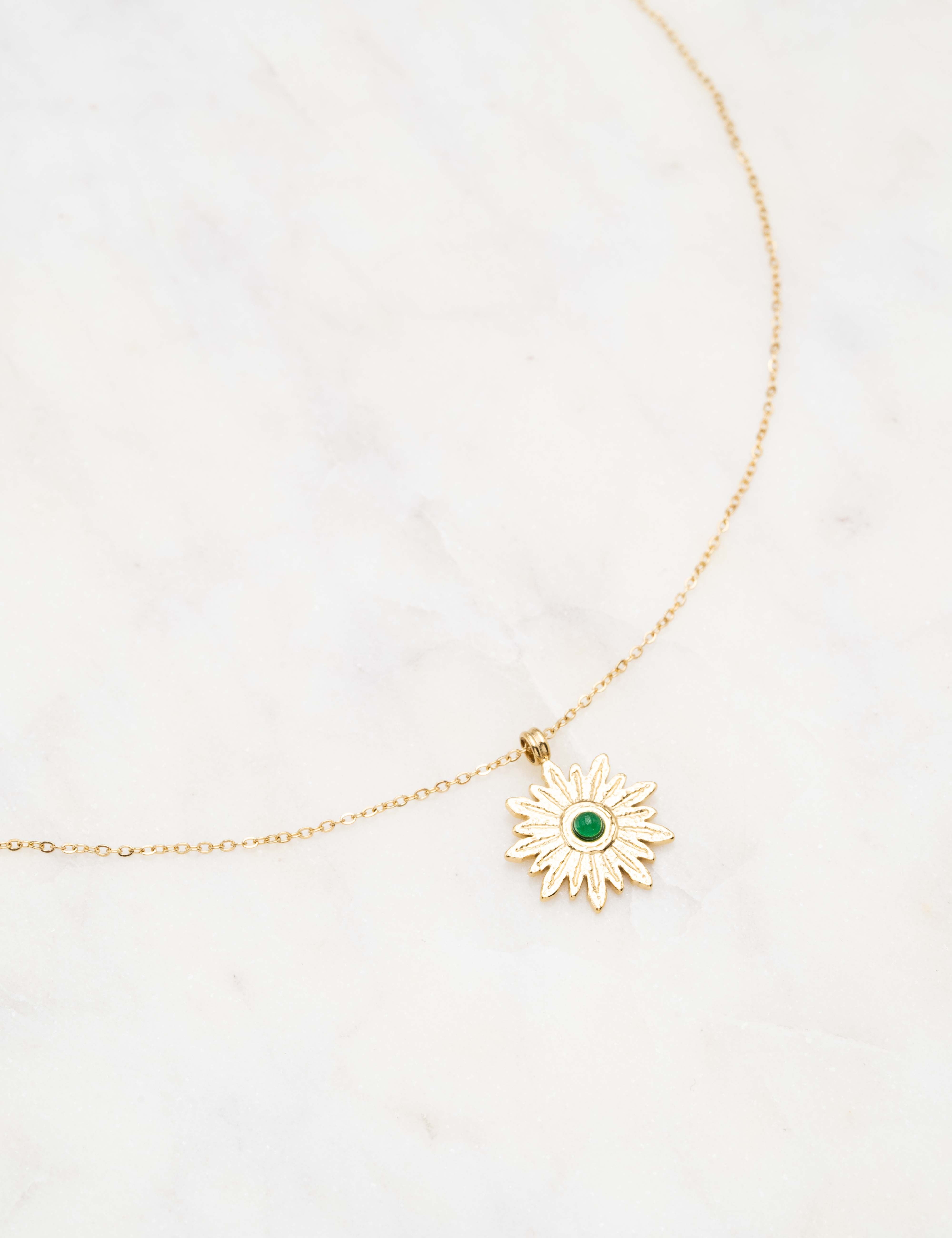 Collier réglable sur chaîne composé d'un pendentif feuillage orné d'une pierre naturelle.