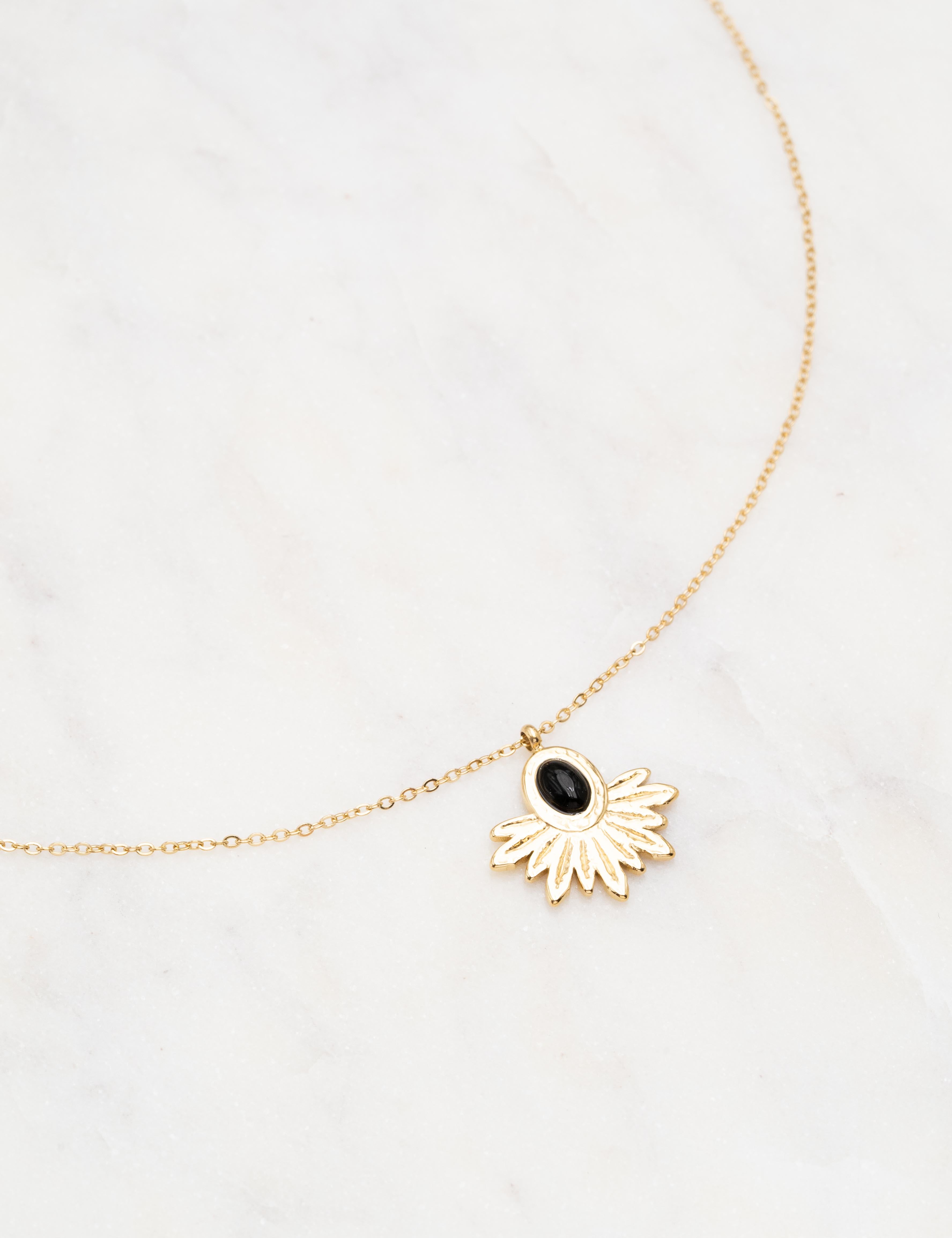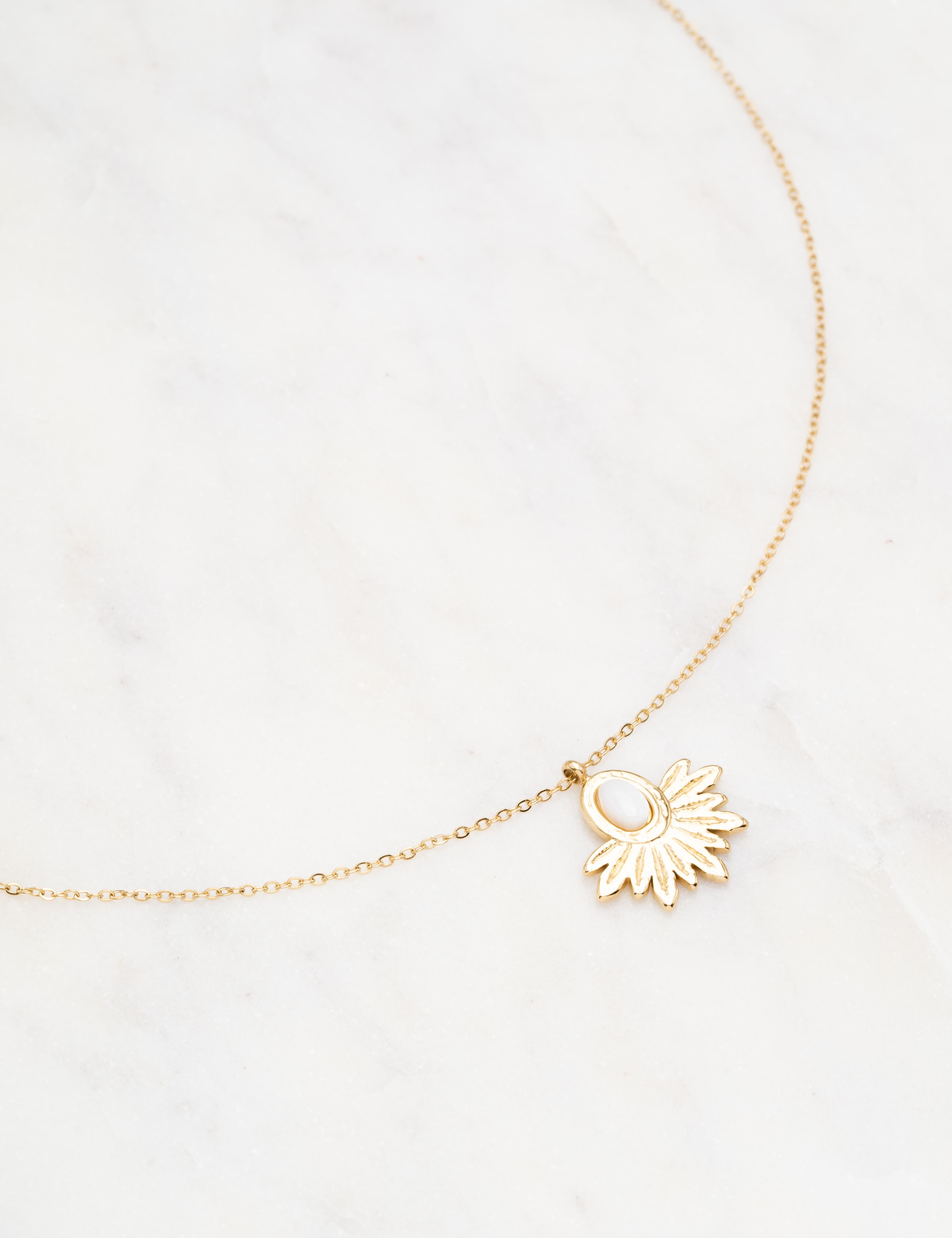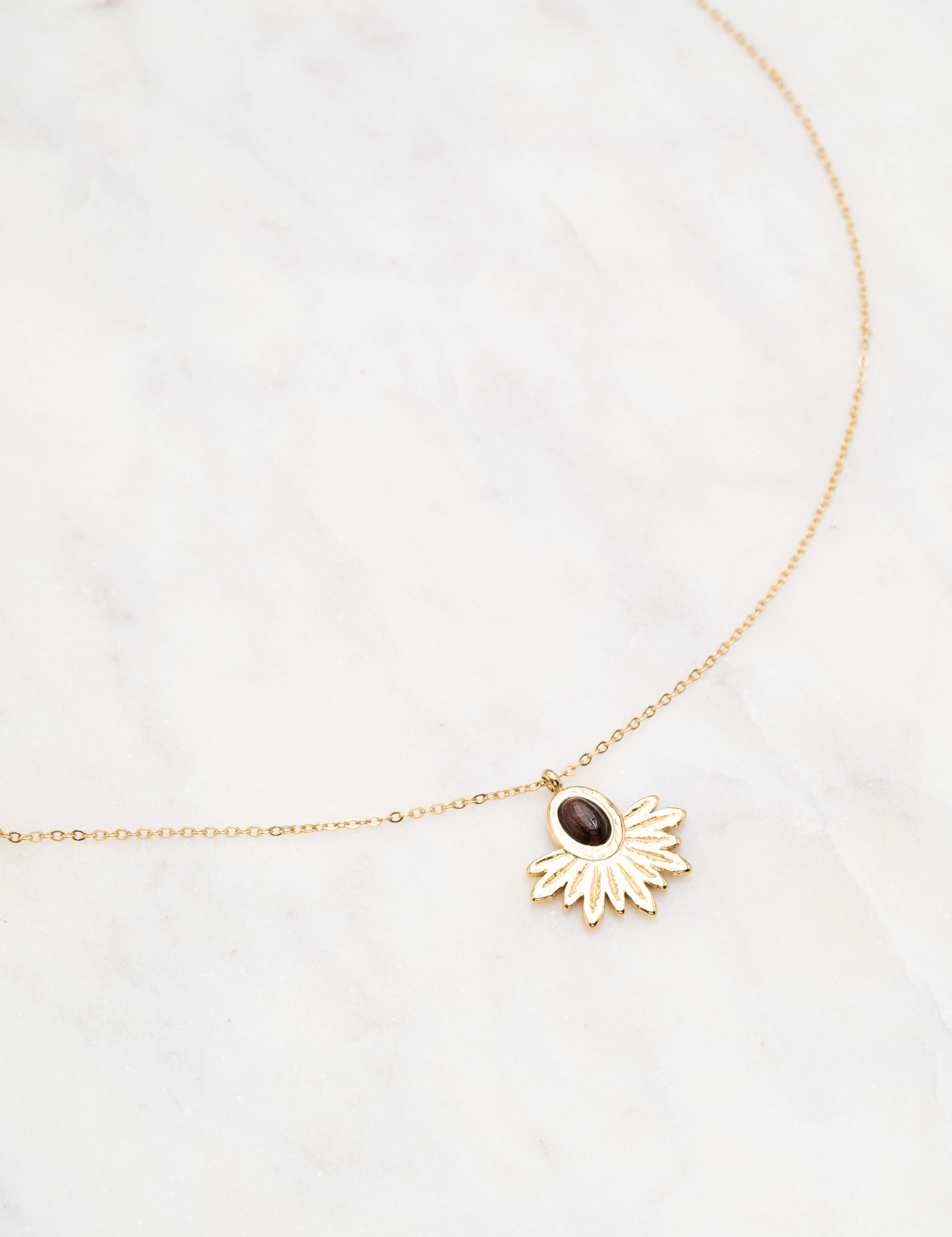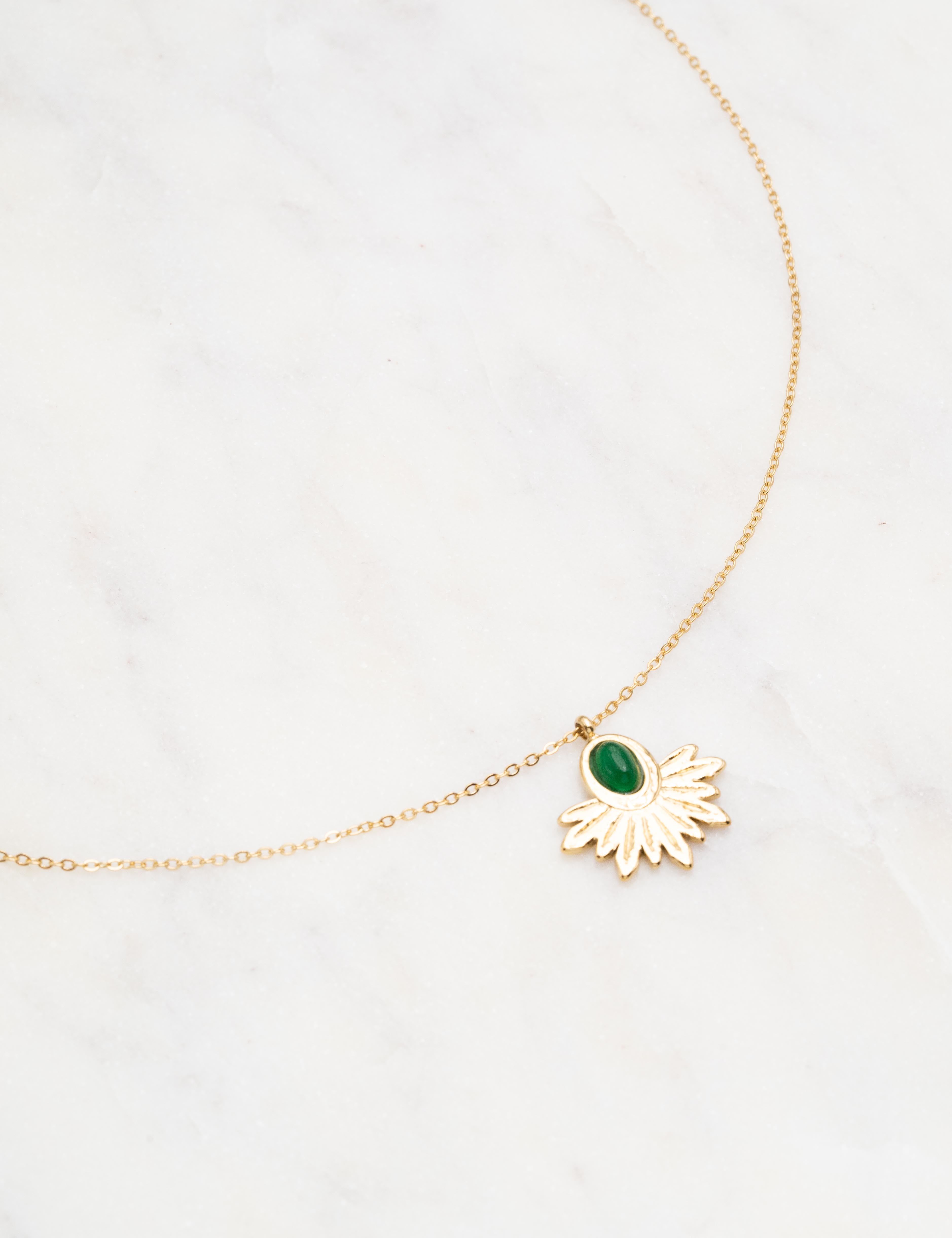 Collier réglable sur chaîne composé d'un pendentif feuillage orné d'une pierre naturelle.