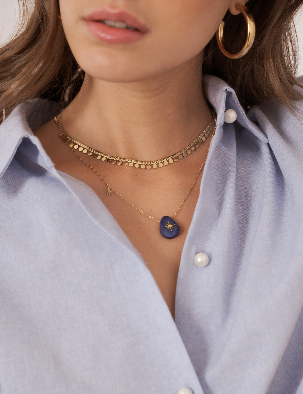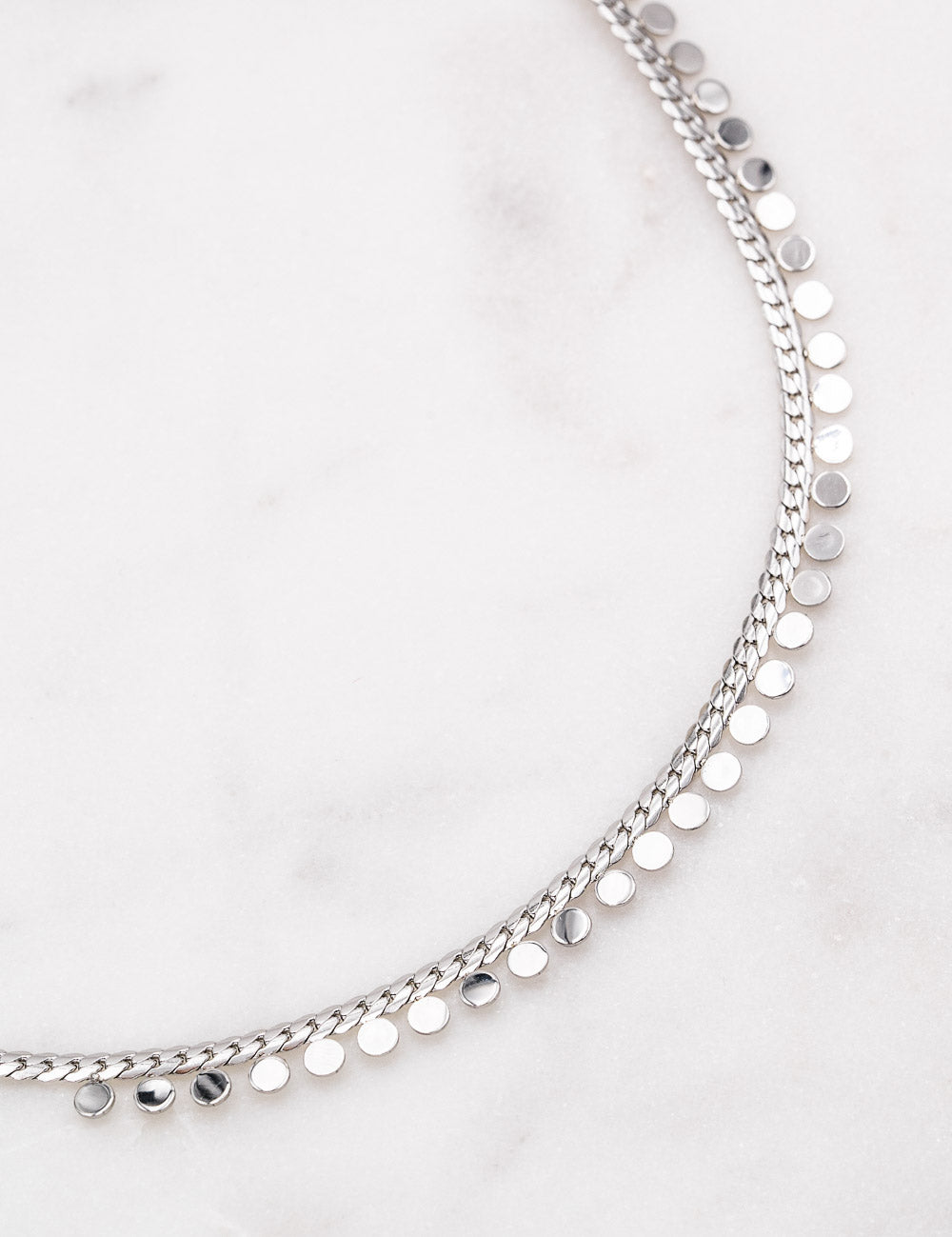 Collier sur chaine maille composé de pampilles rondes.