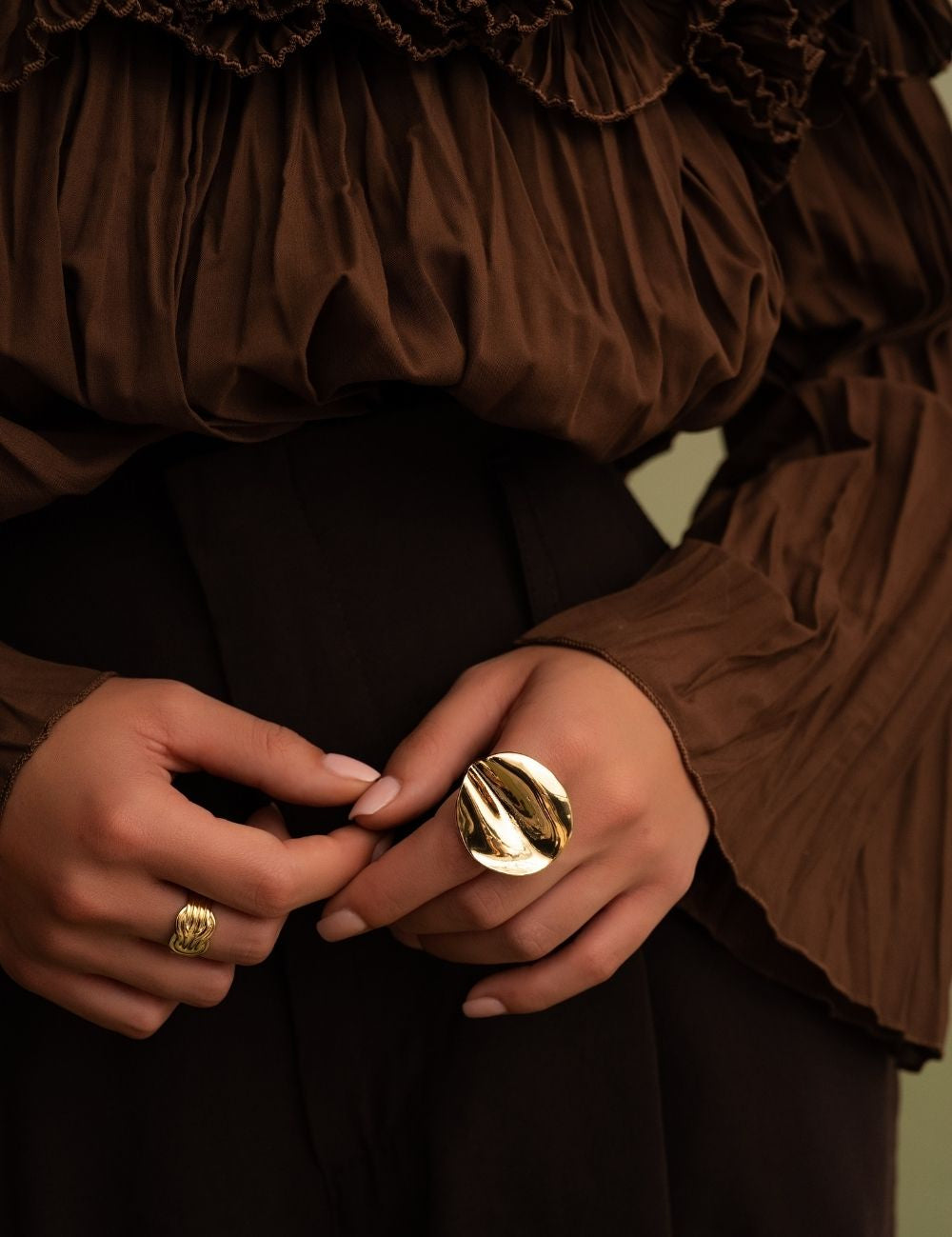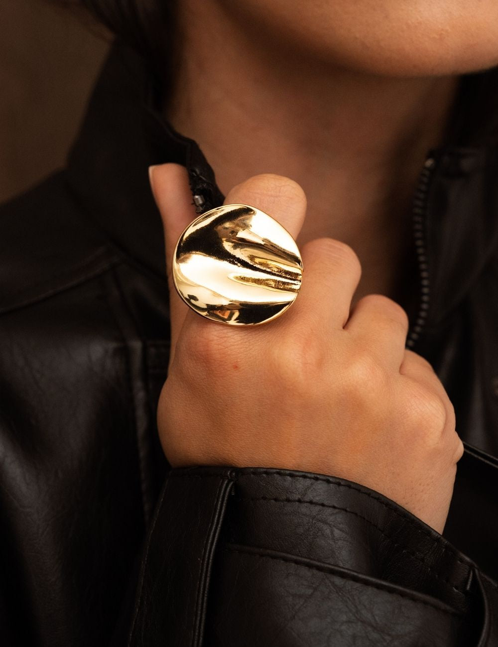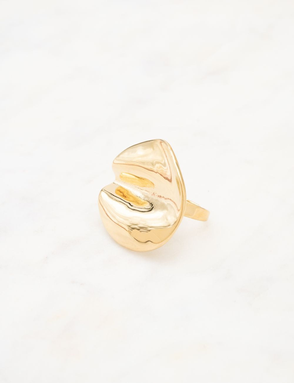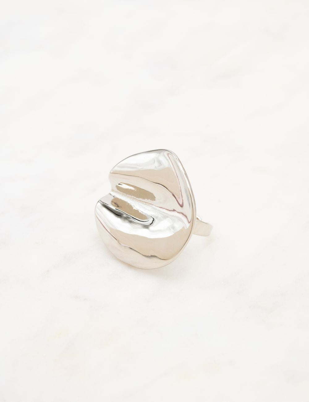 Bague ajustable composée d'une pièce géometrique ondulée.