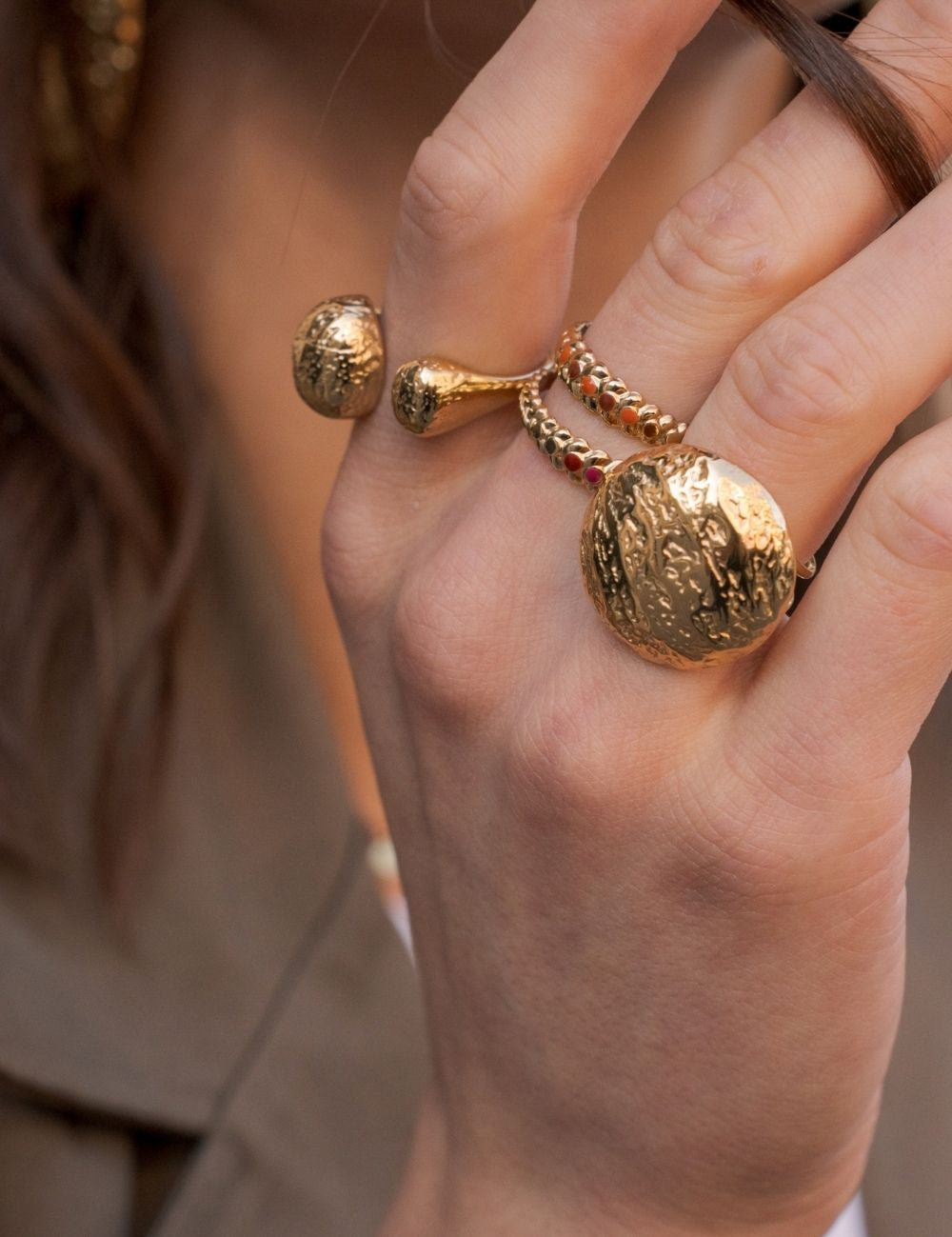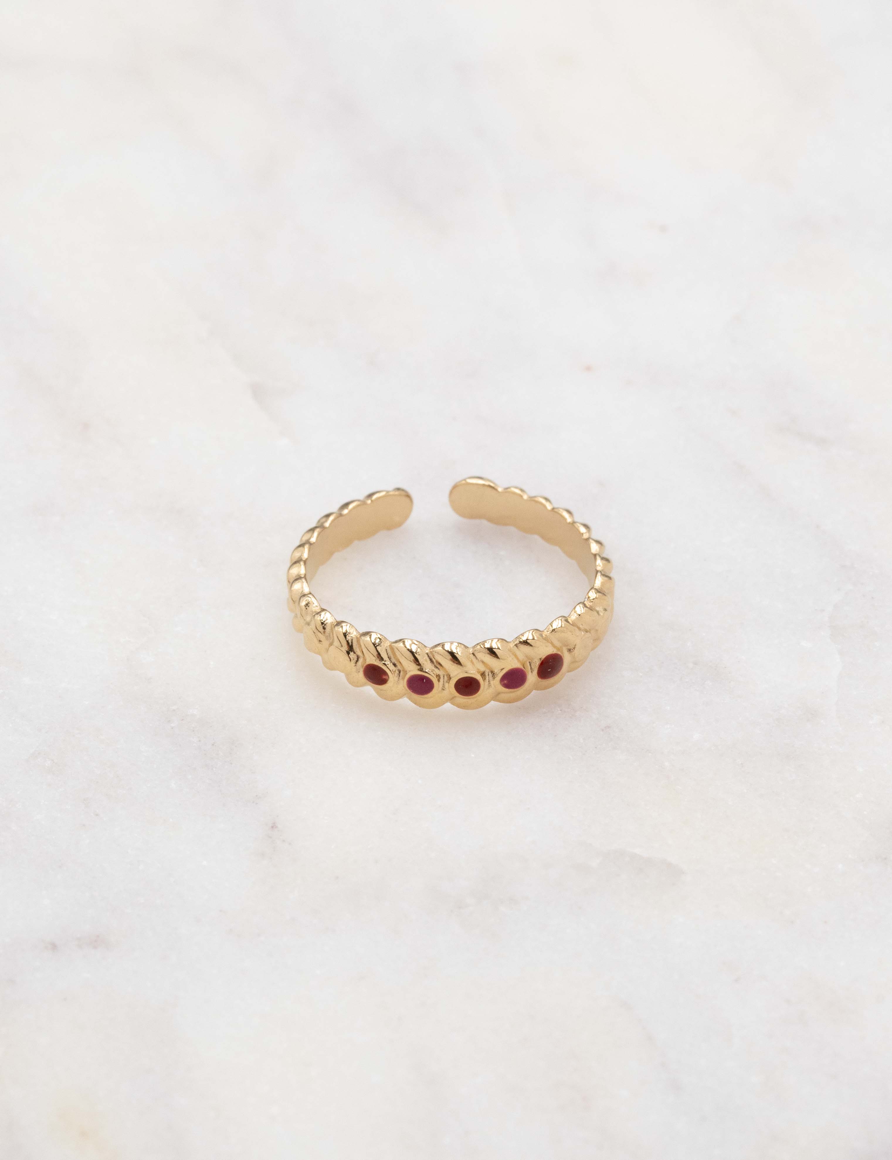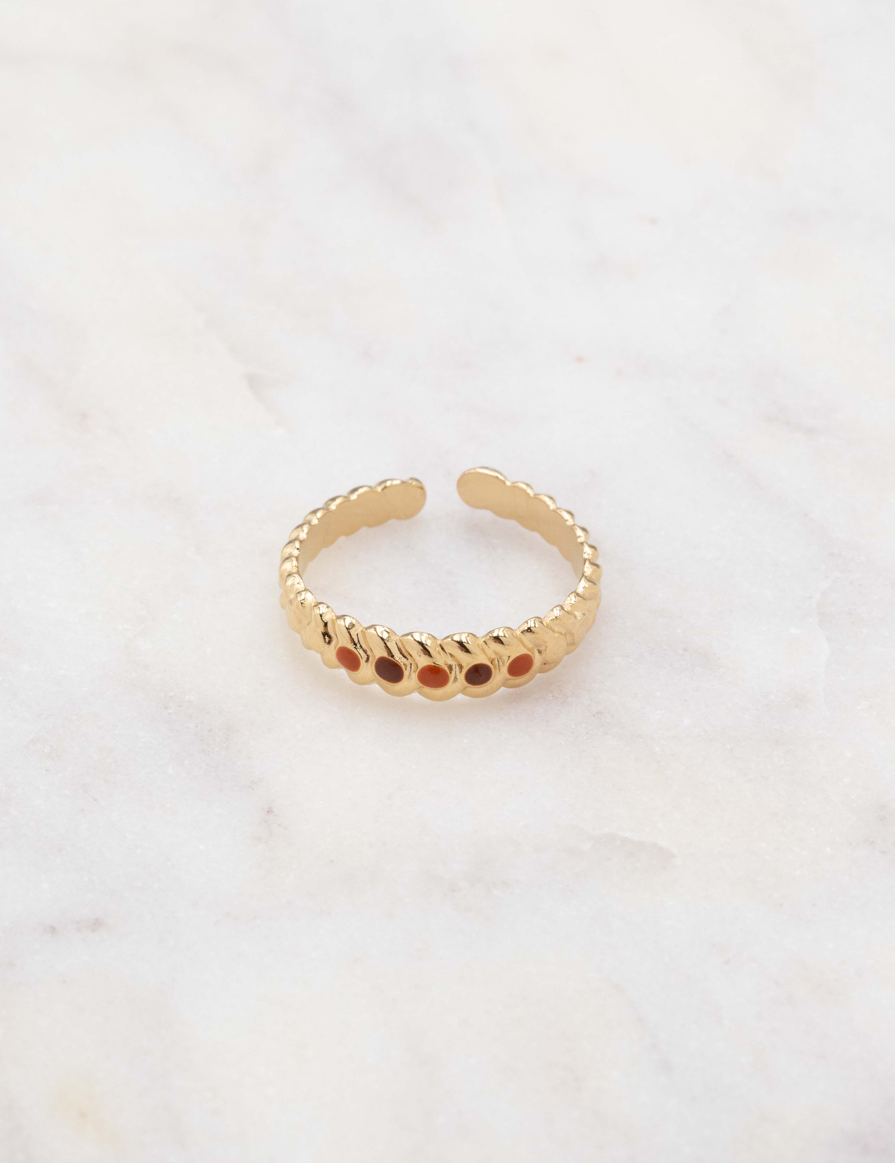Bague graphique ajustable texturée embellie de plusieurs touches émaillées colorées.