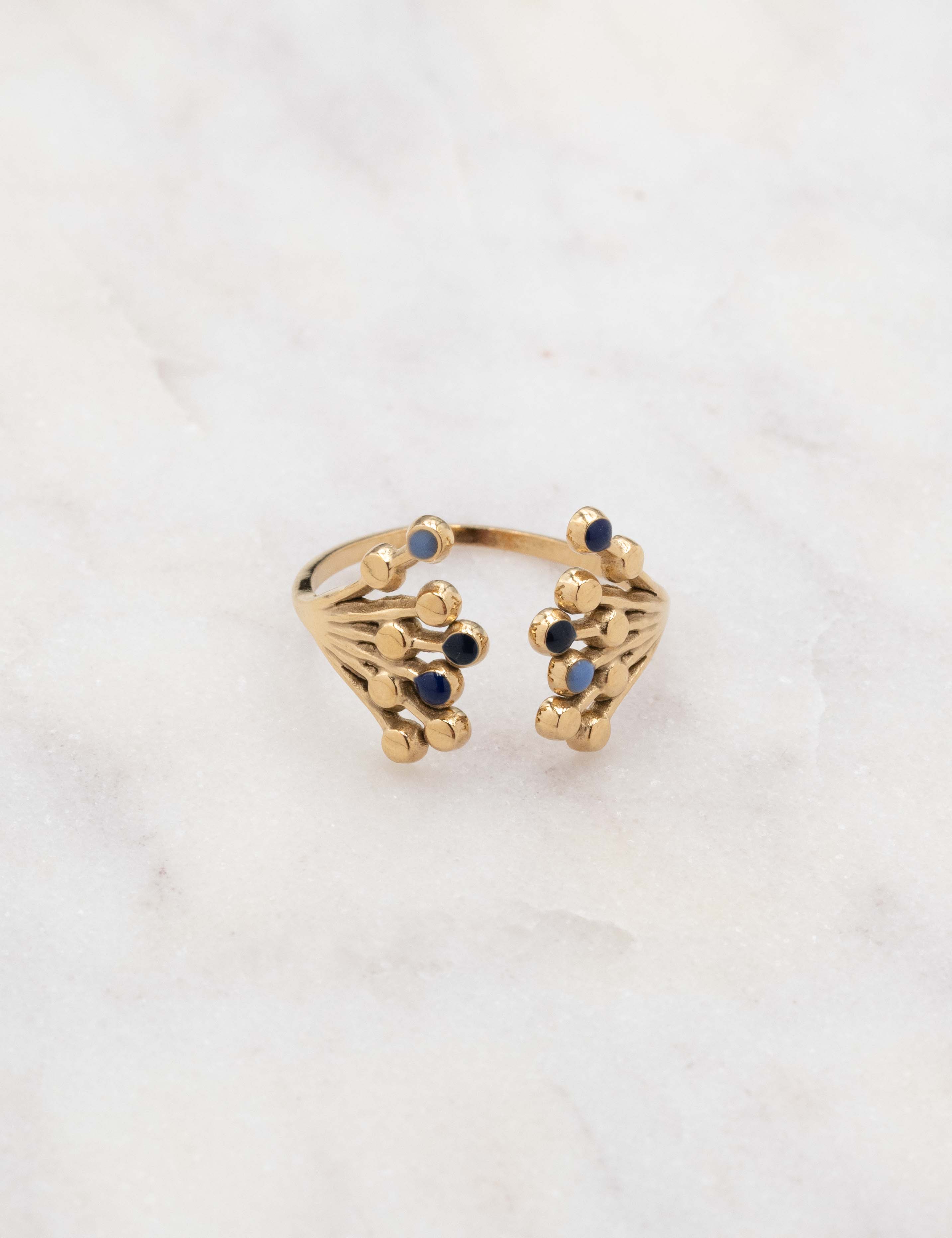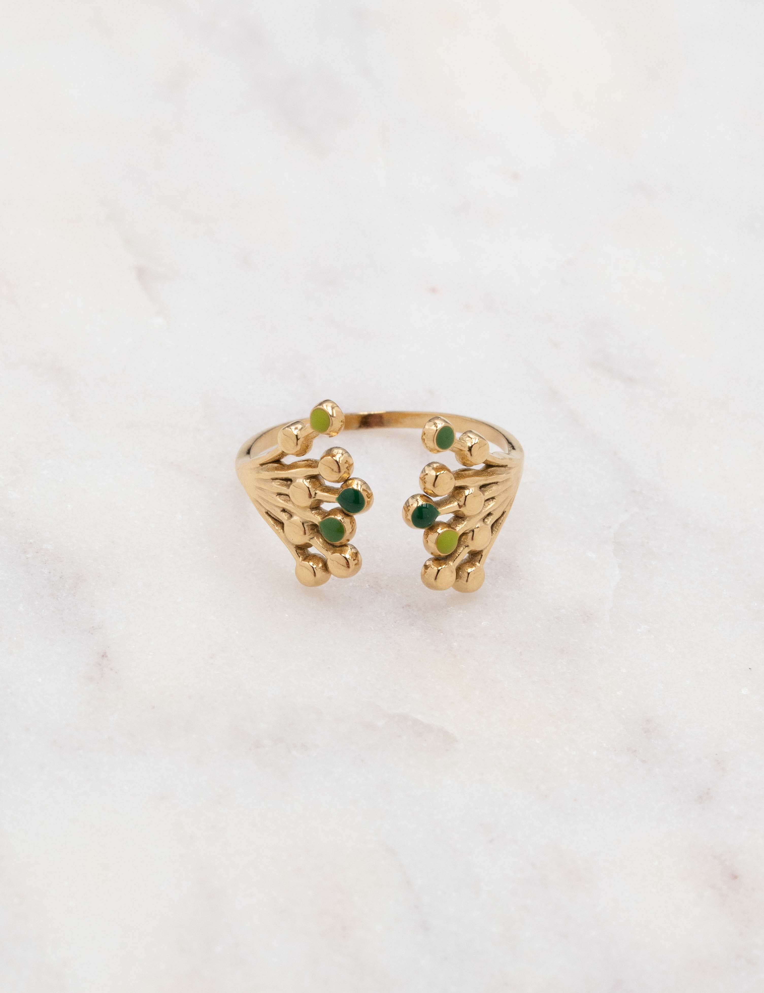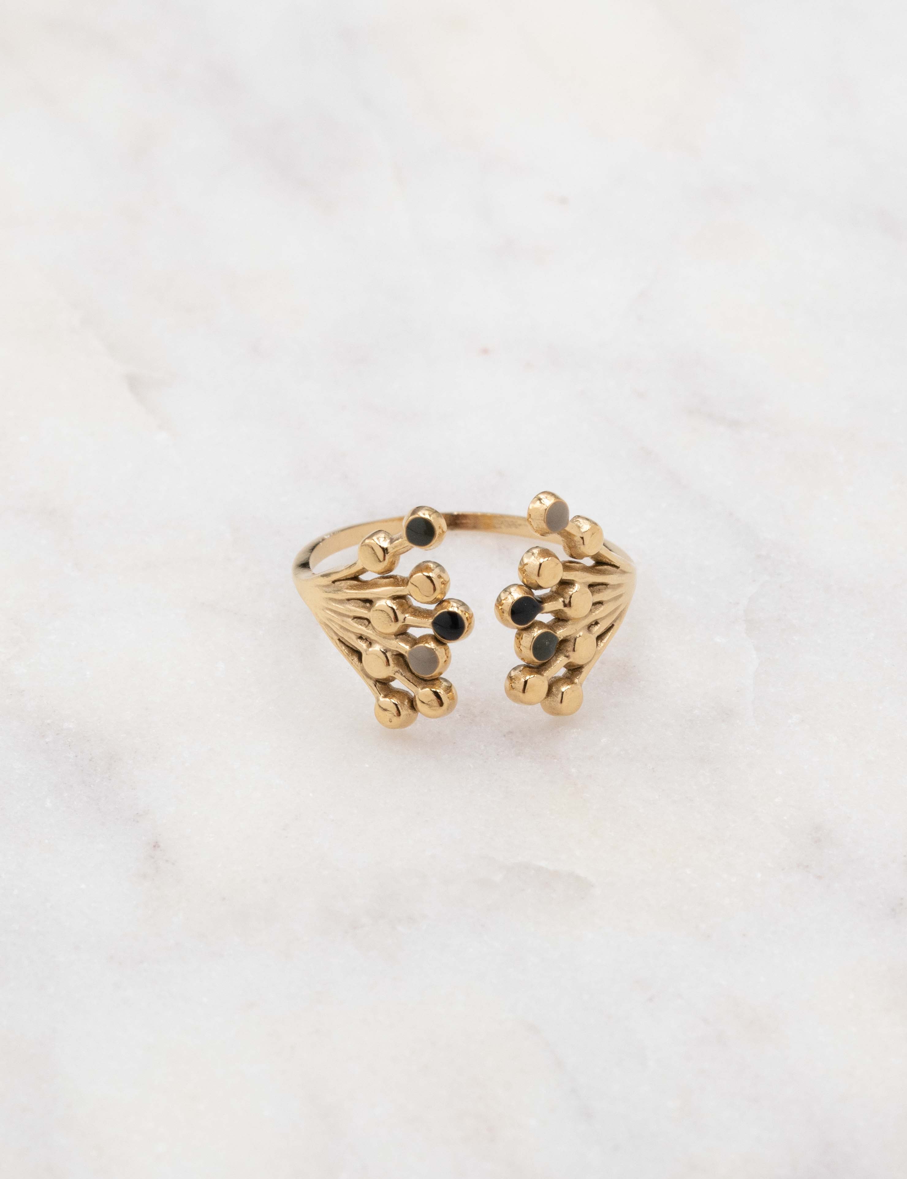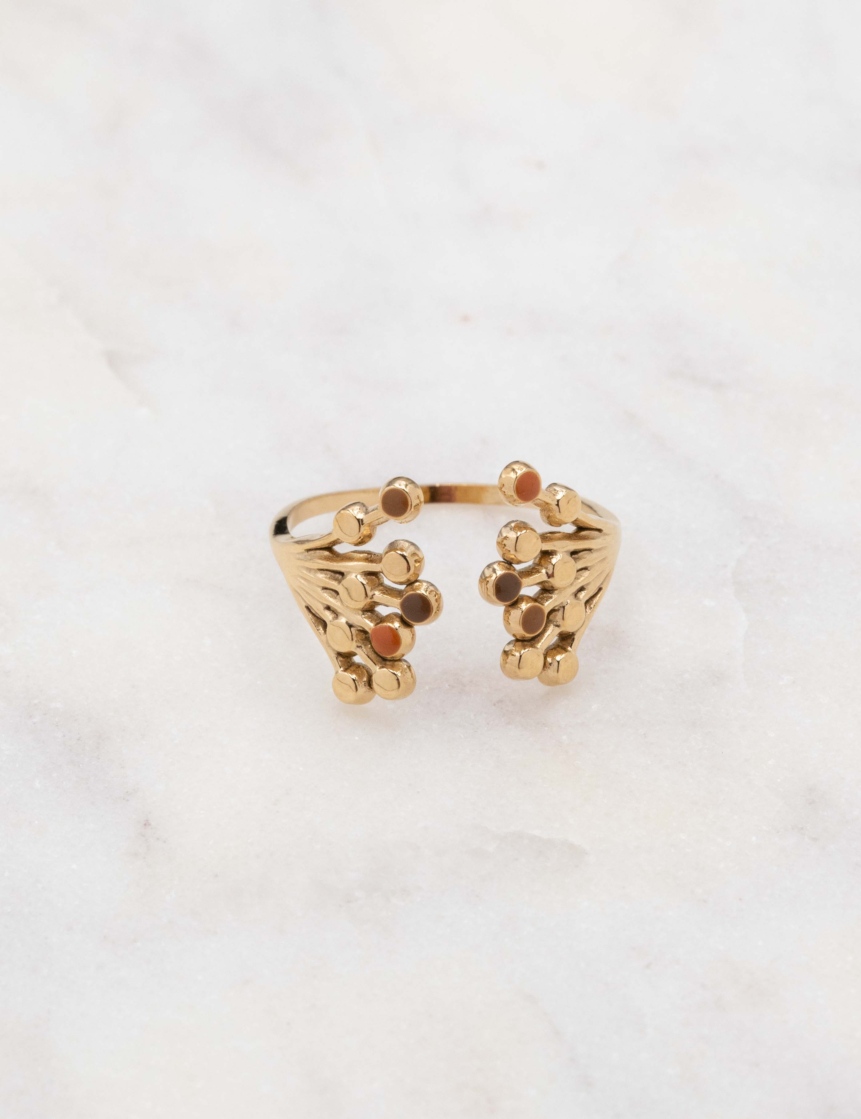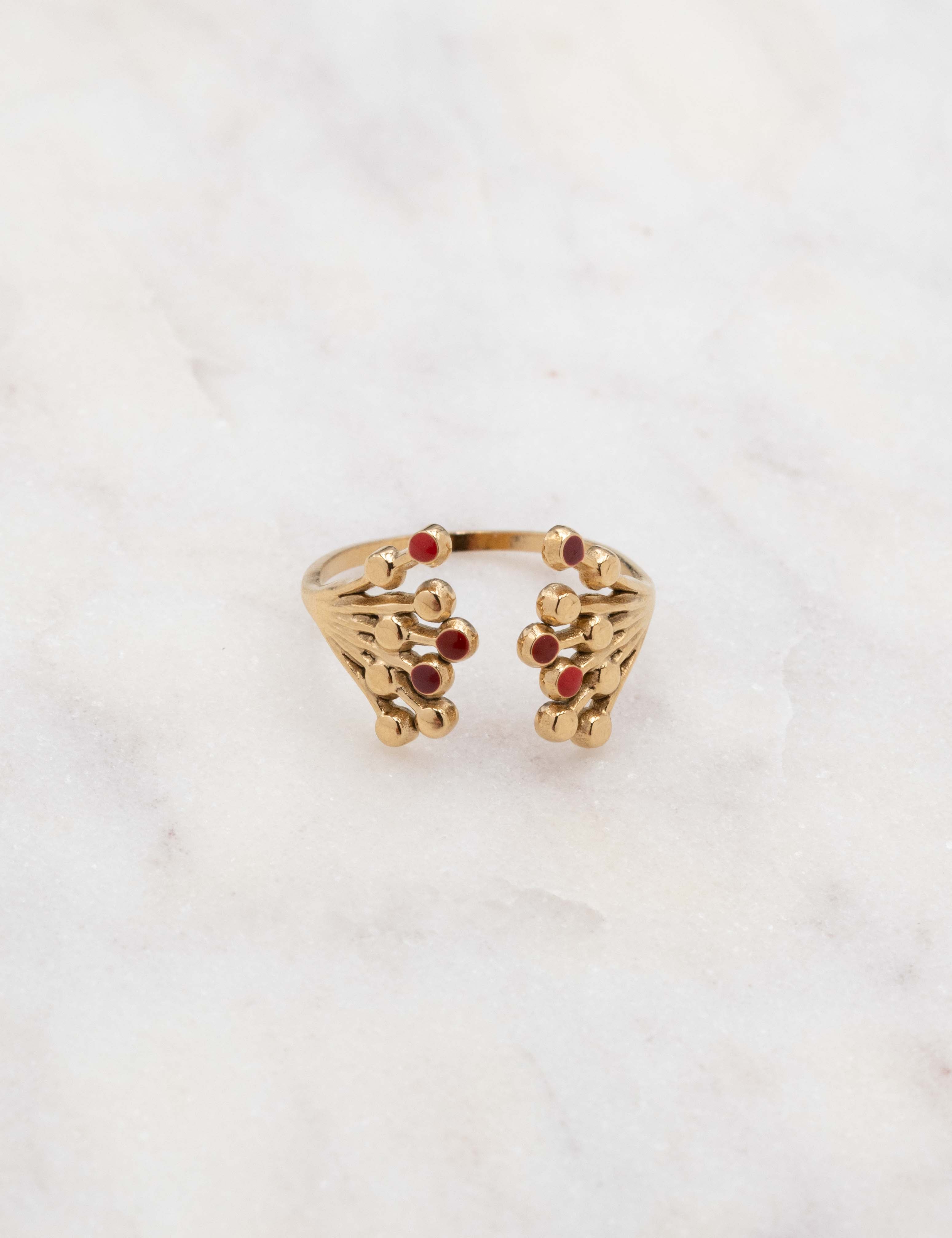 Bague graphique ajustable embellie de plusieurs touches émaillées colorées.