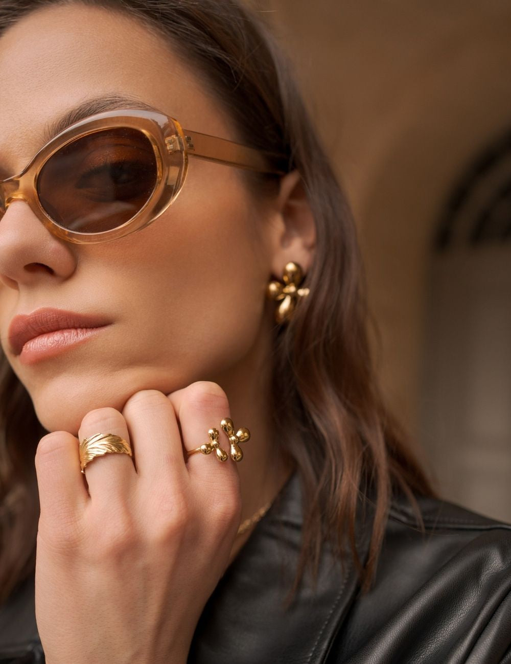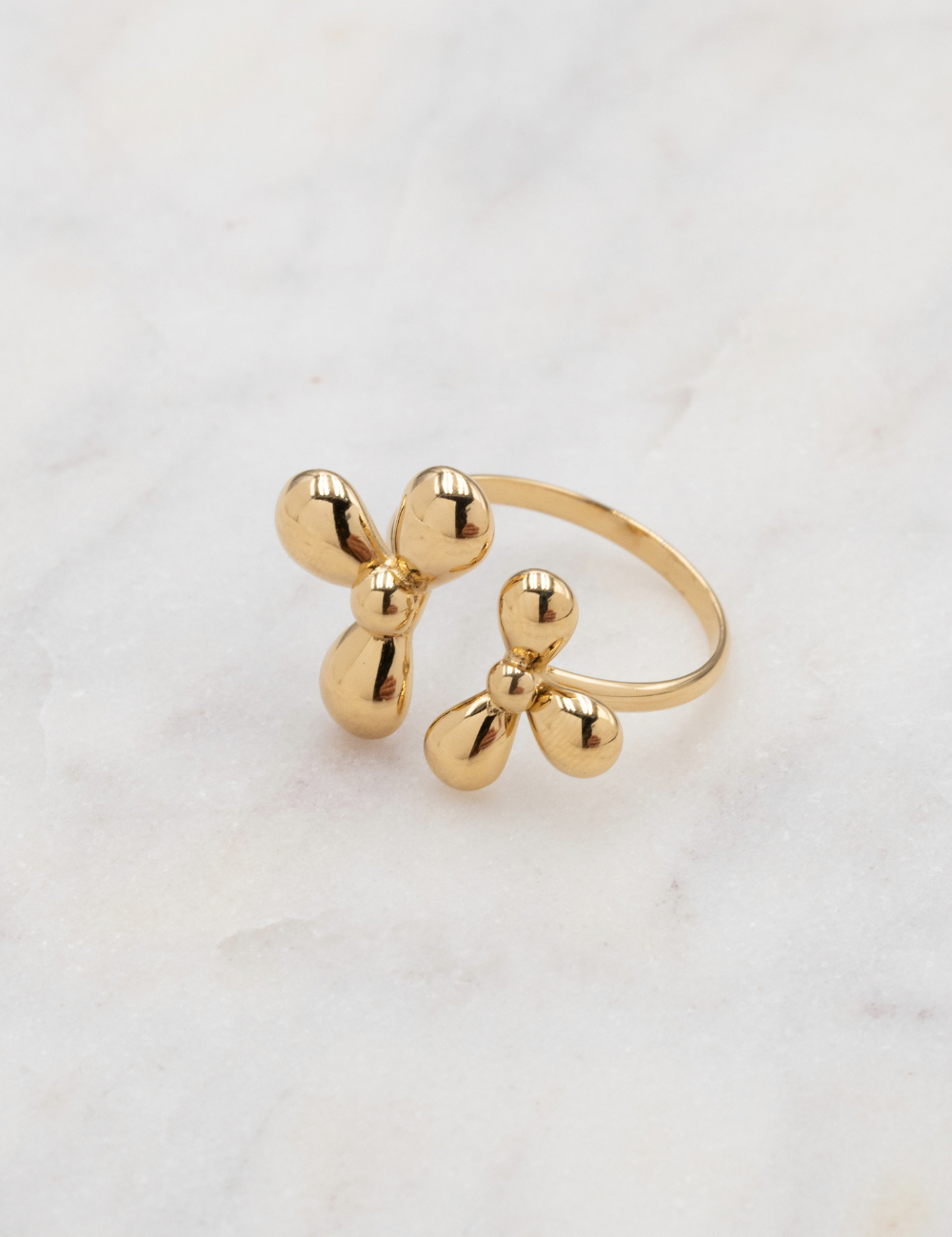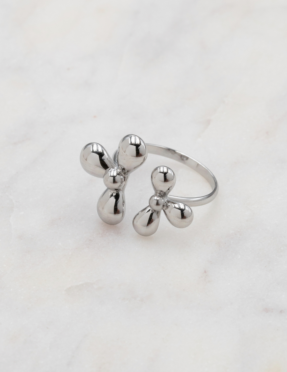 Bague graphique ajustable composée d'une pièce esprit floral sur chaque côté.