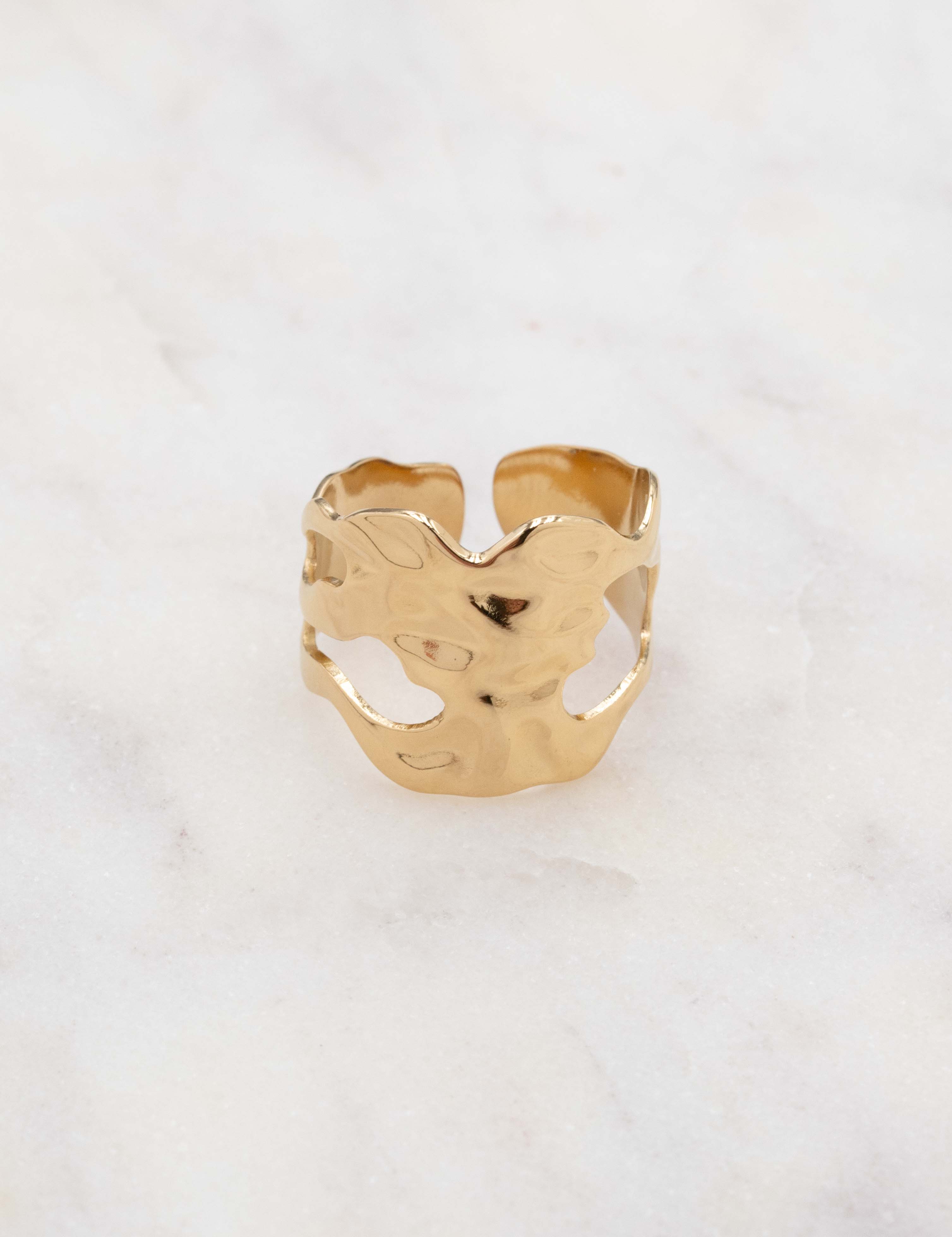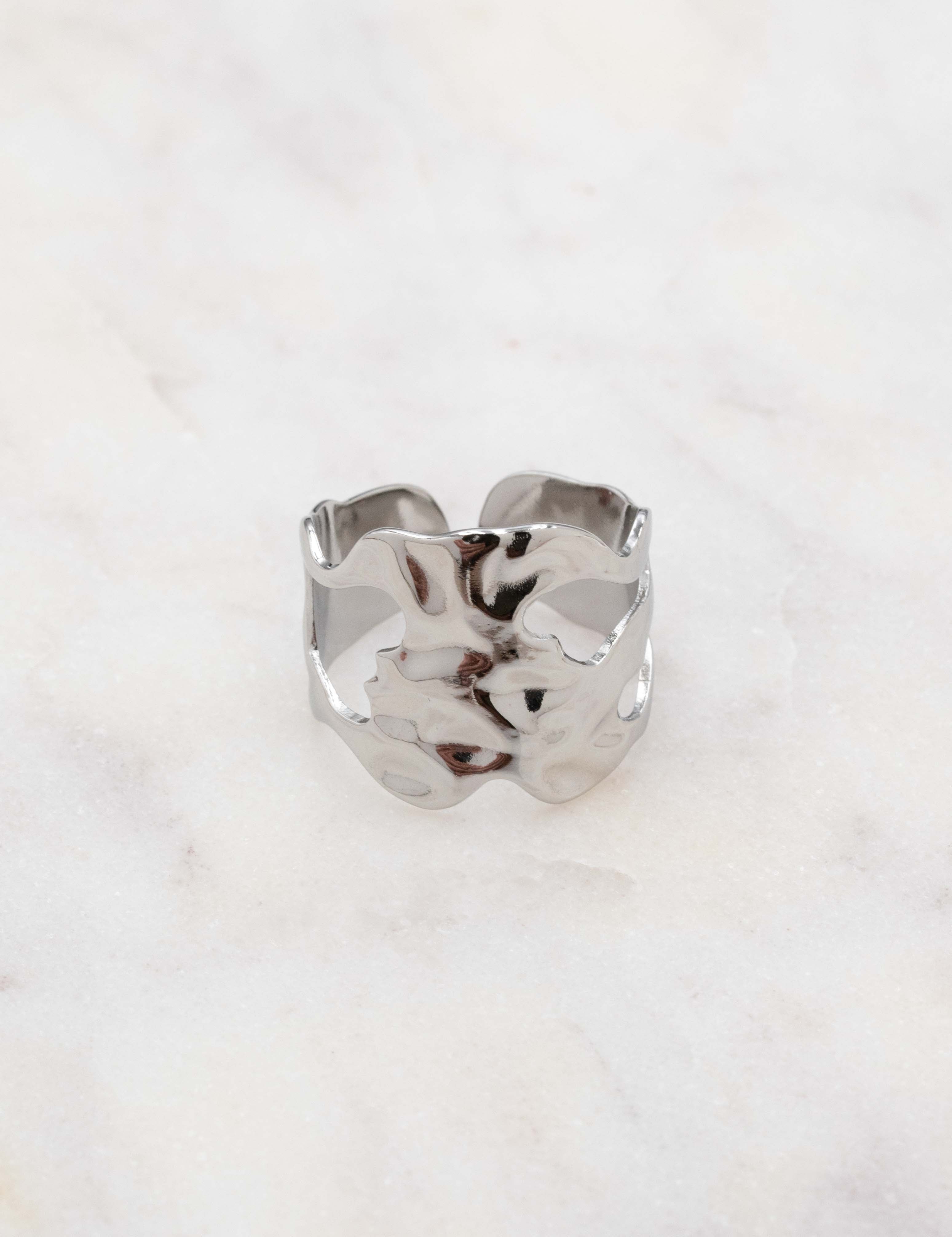 Bague graphique ajustable texturée avec un jeu d'ajourages.