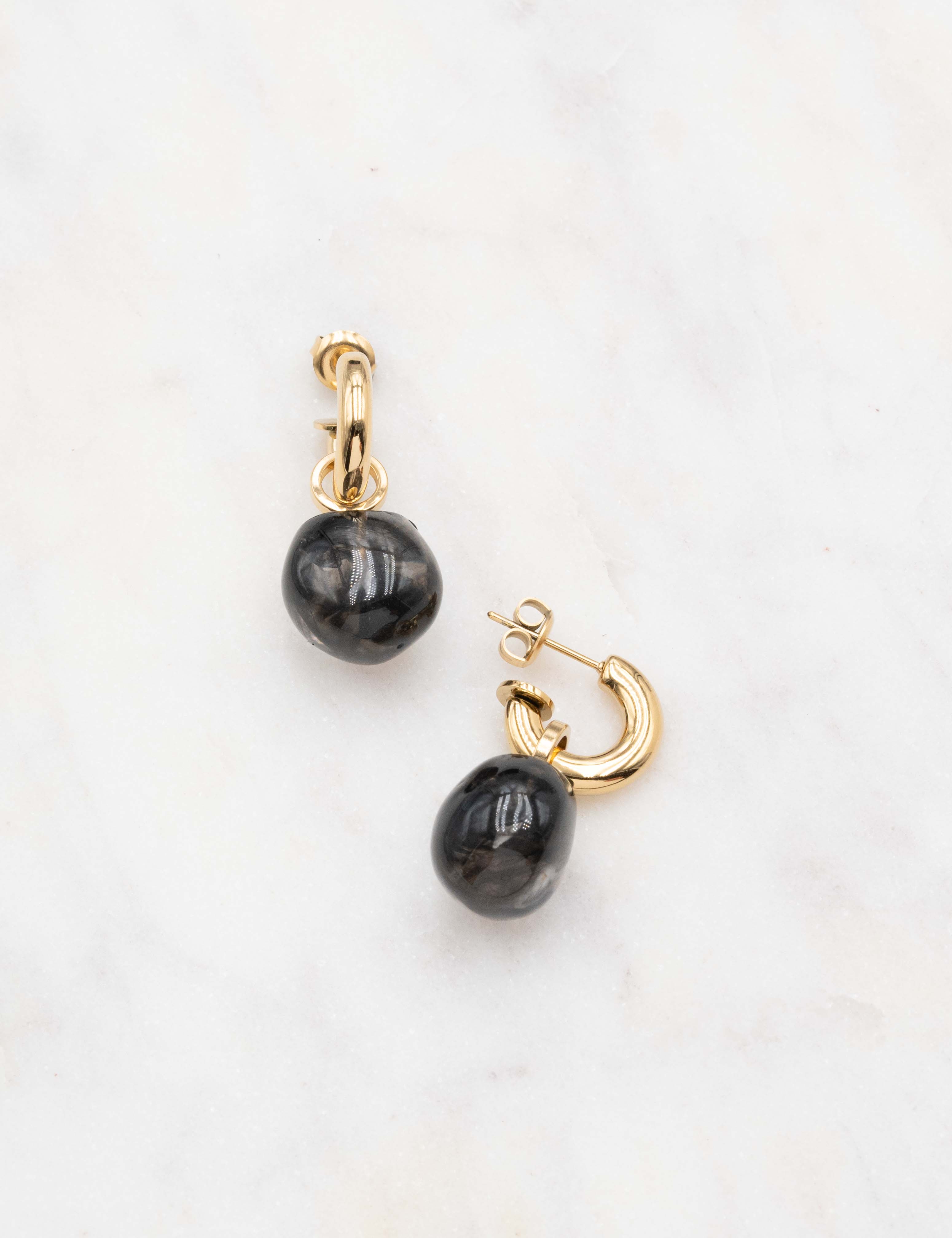 Boucles d'oreilles type créoles à puce composées d'un pendant (perle) en acétate.