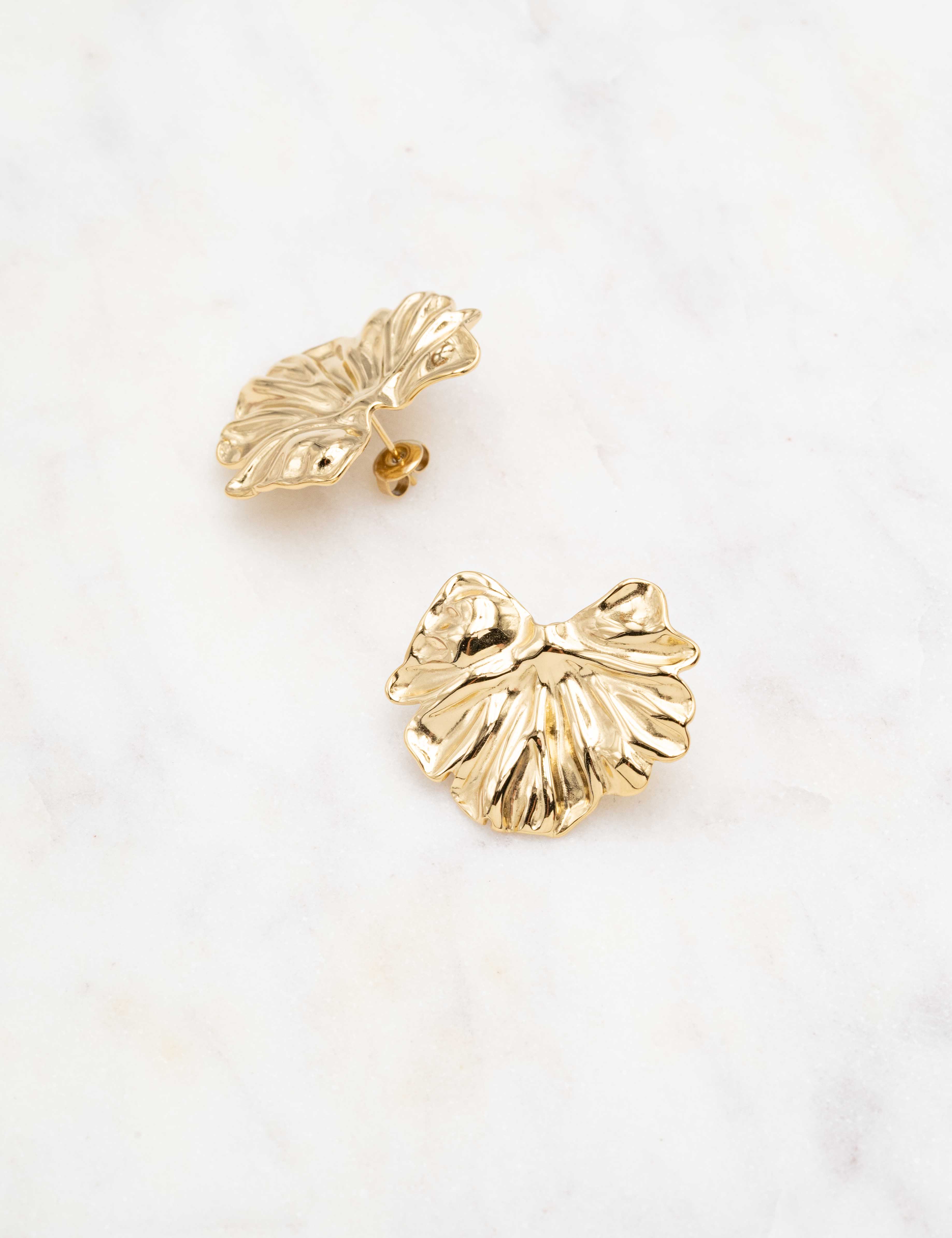 Boucles d'oreilles graphiques à puce composées d'une pièce au motif feuillage.