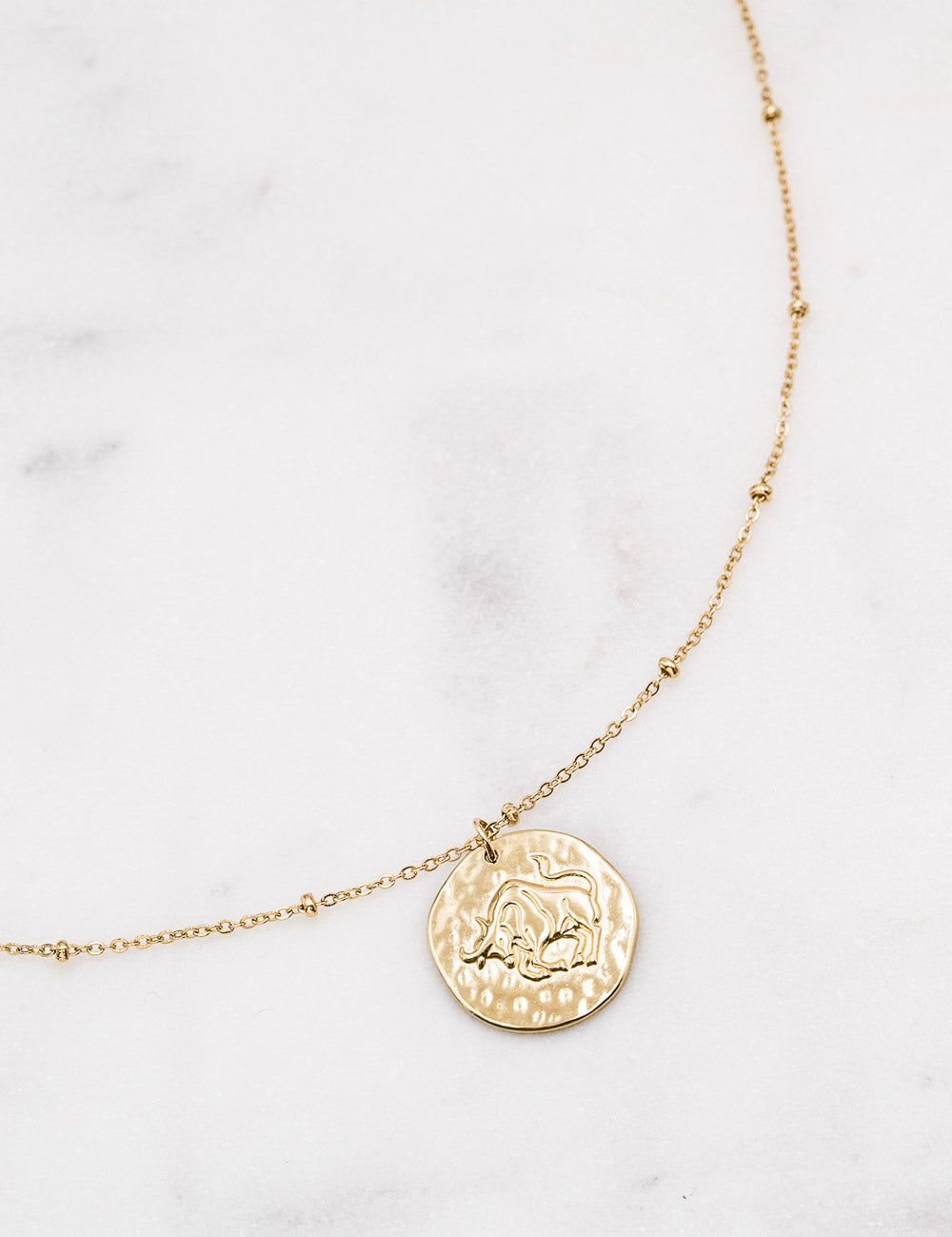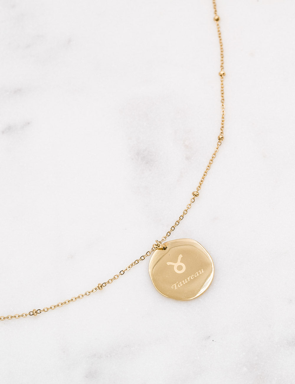 Collier sur chaine réglable avec pendant au motif du signe du zodiaque.