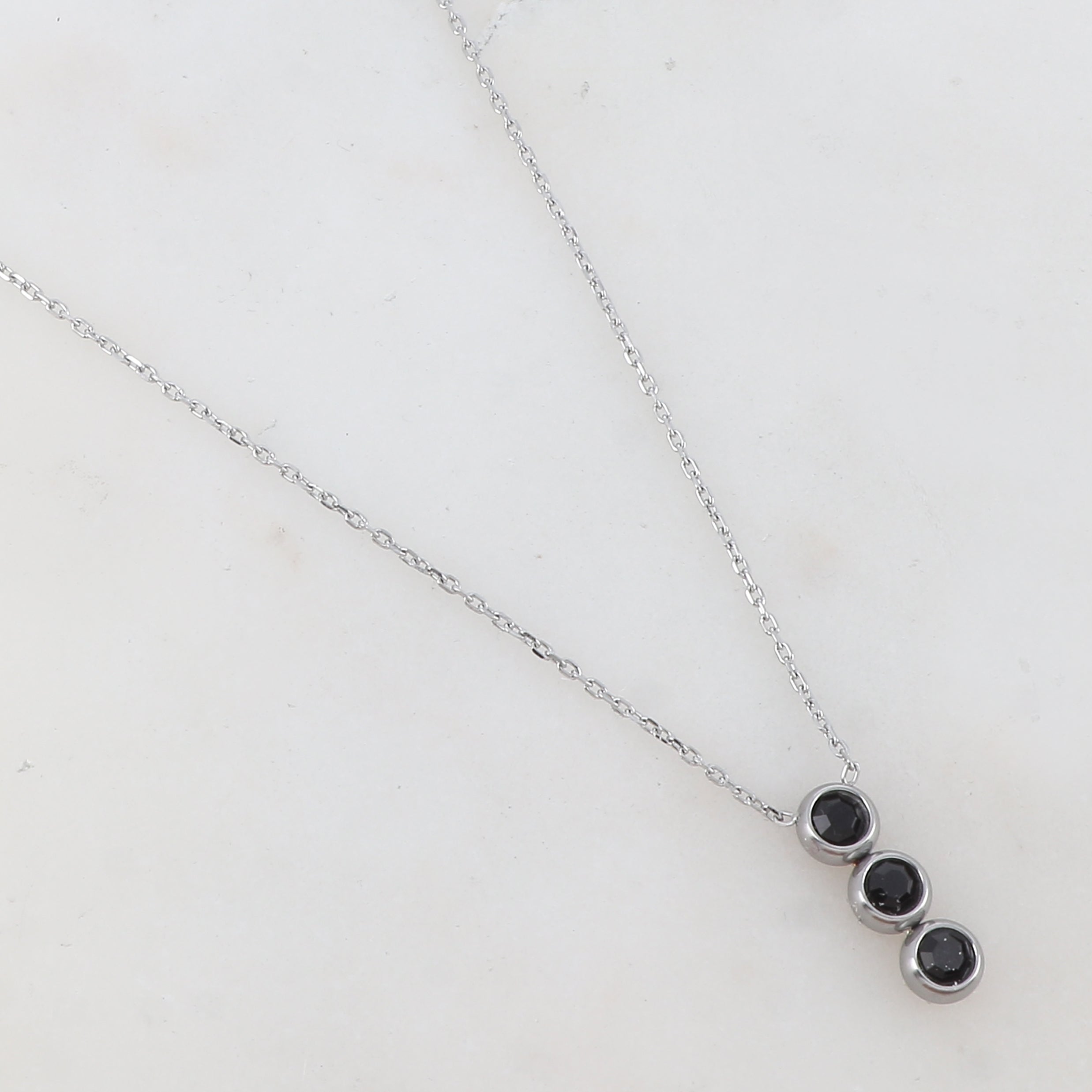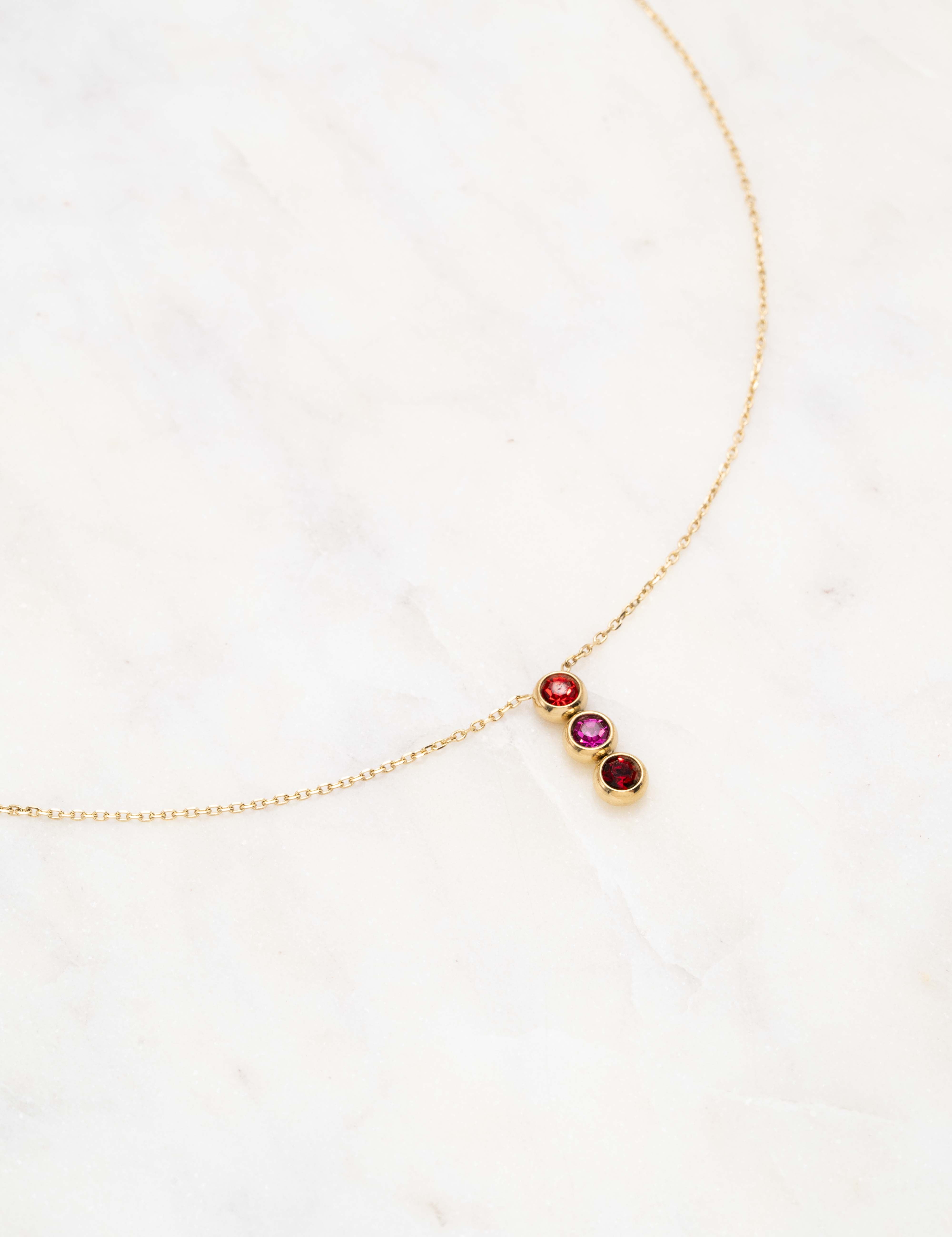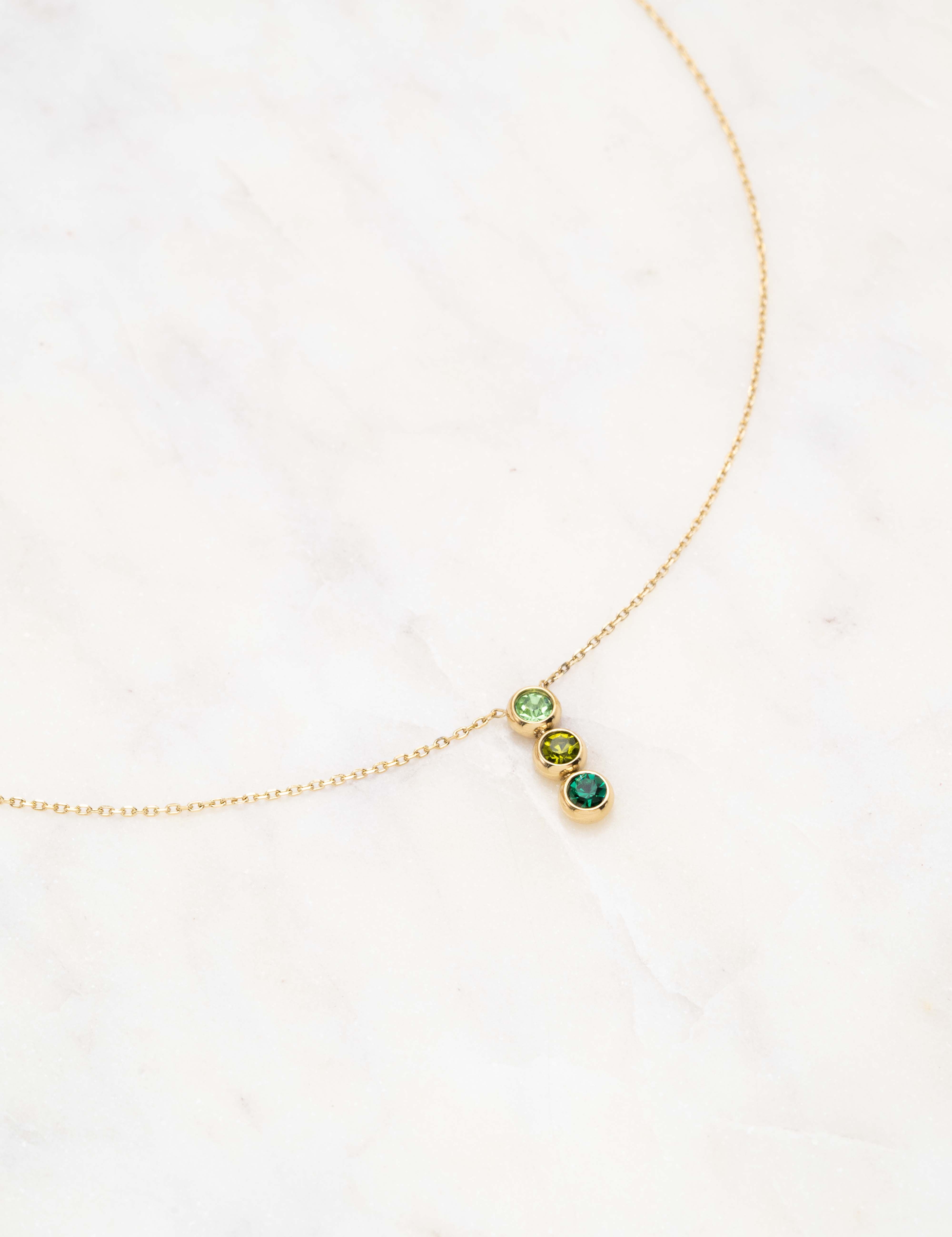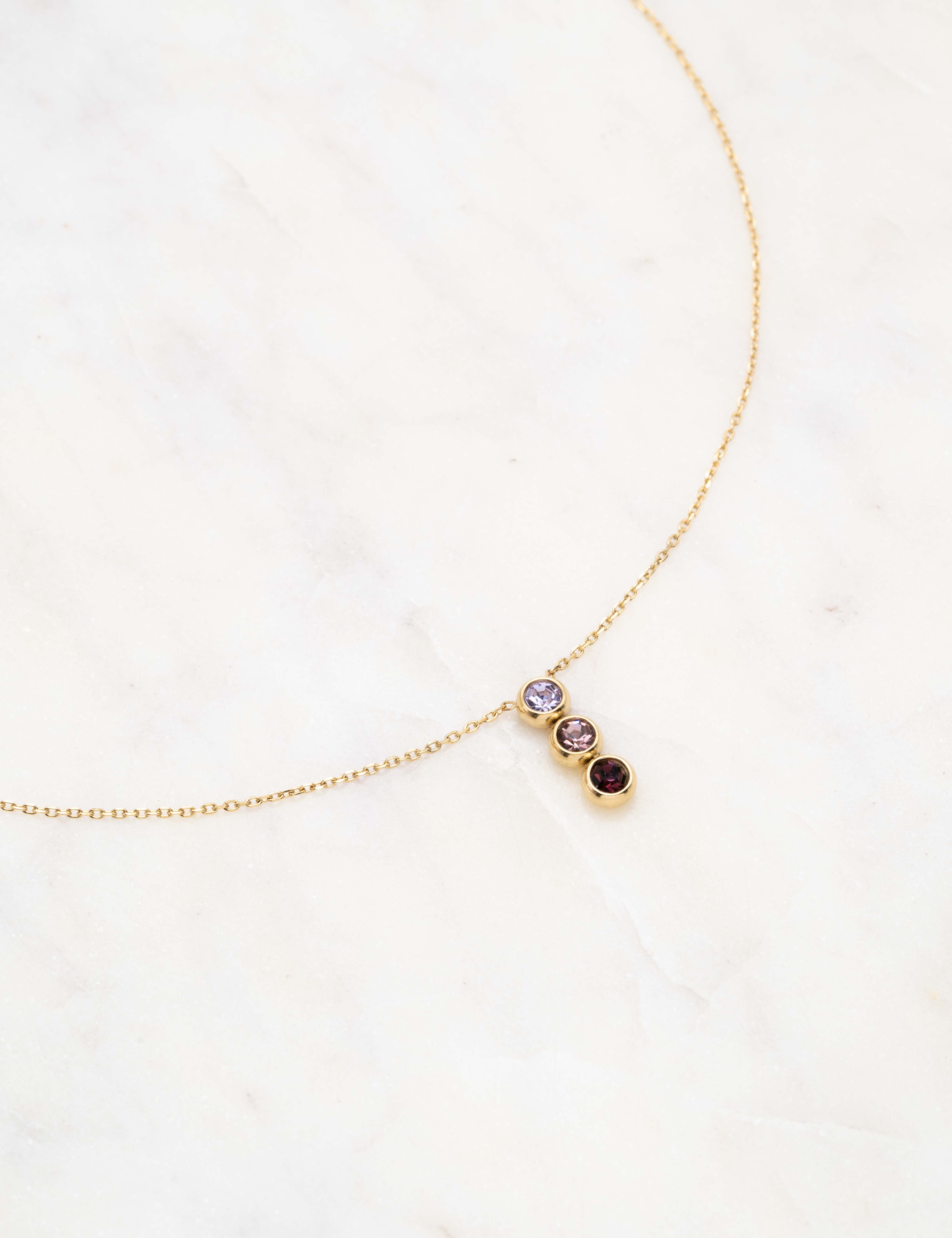 Collier réglable sur chaîne orné de trois strass. Fermoir mousqueton et chainette de réglage.