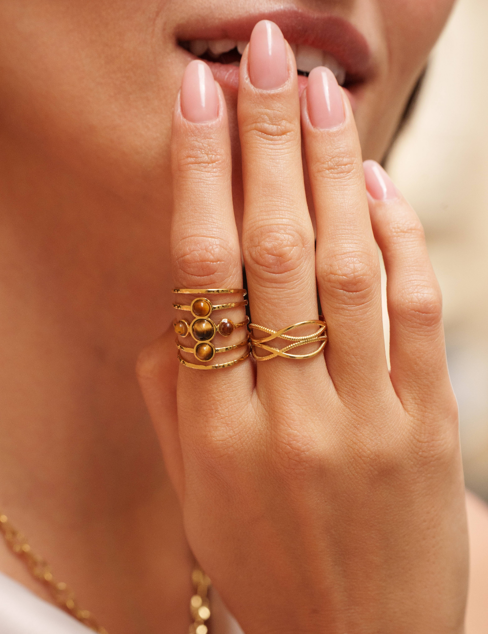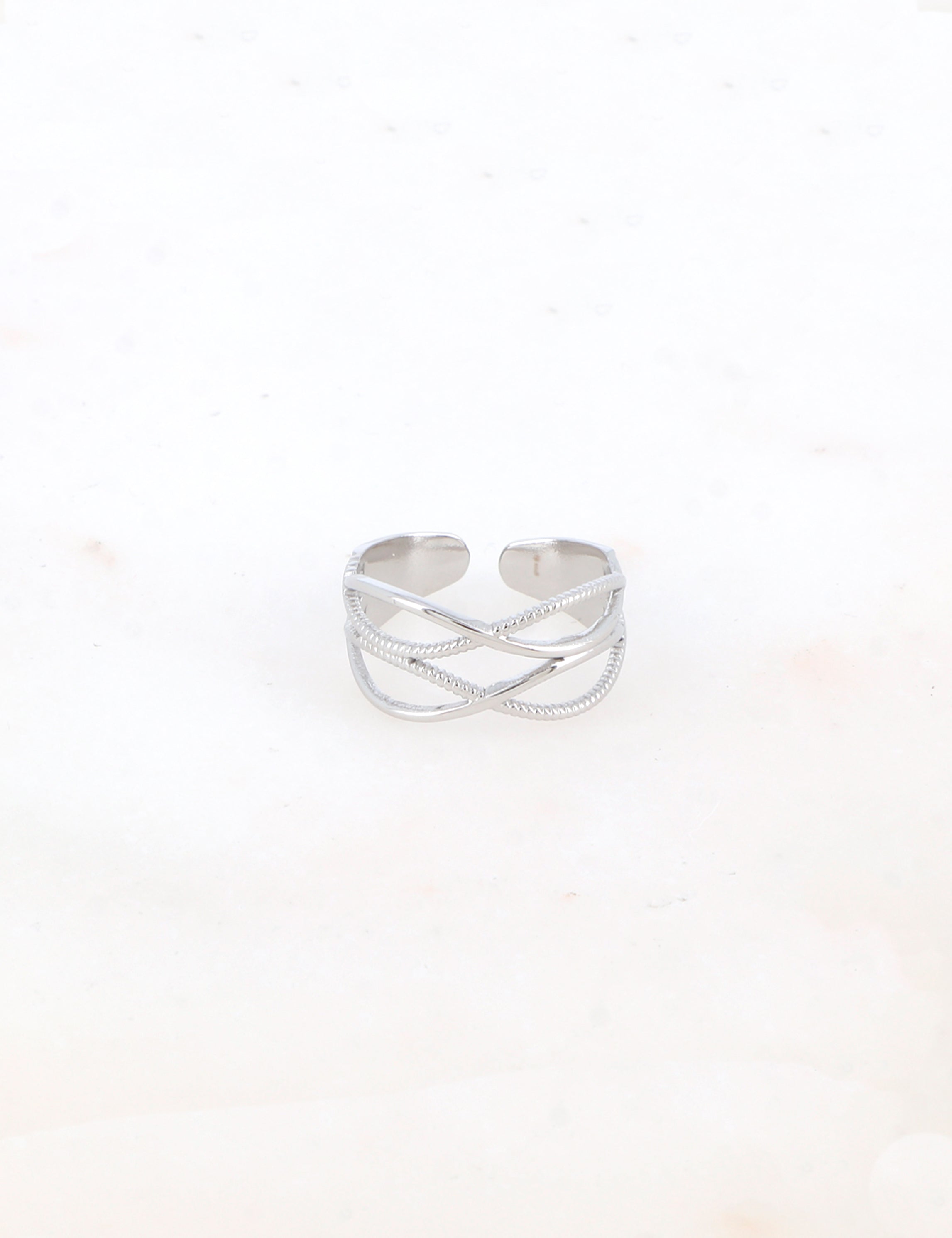 Bague ajustable graphique avec un jeu de croisement et de texture.