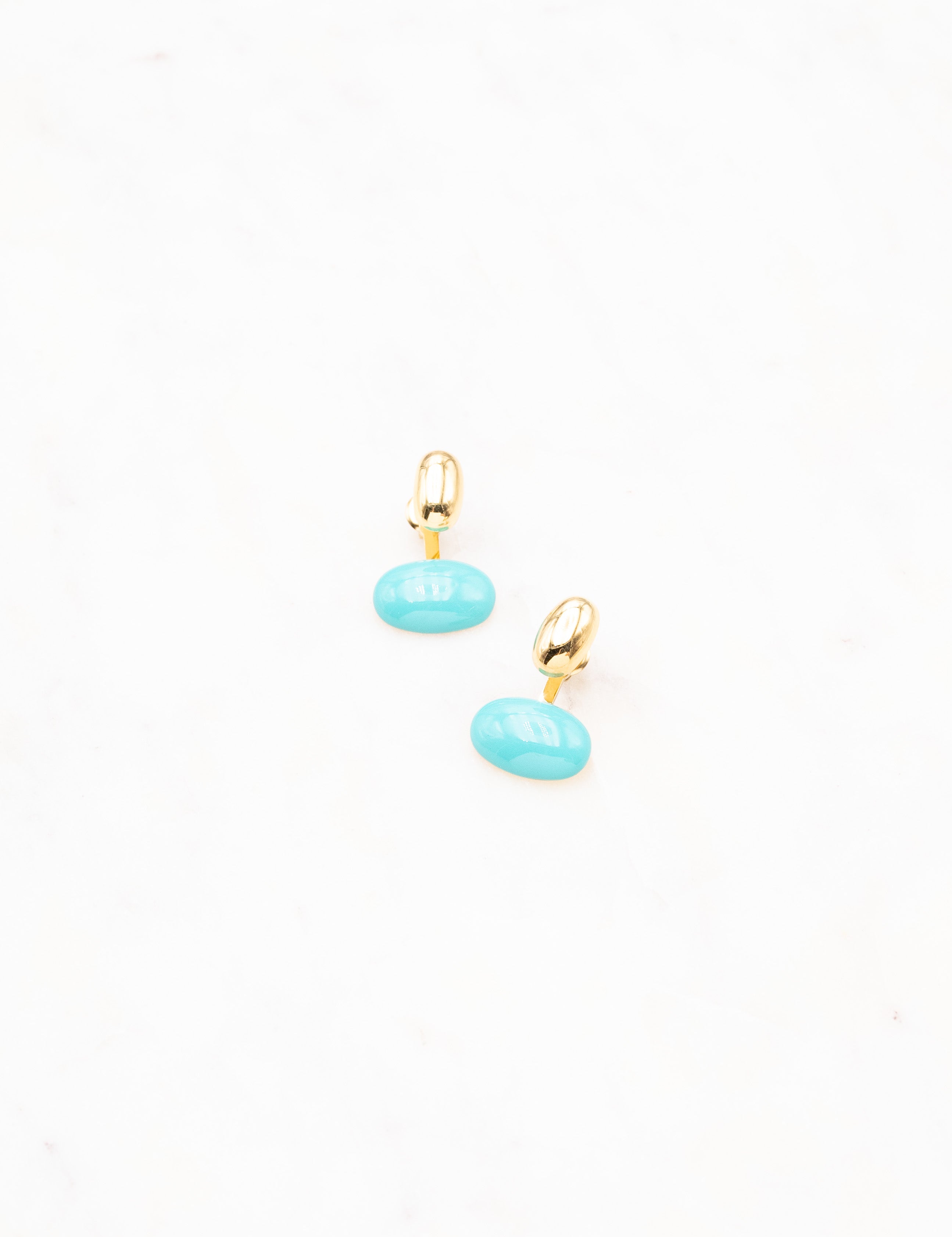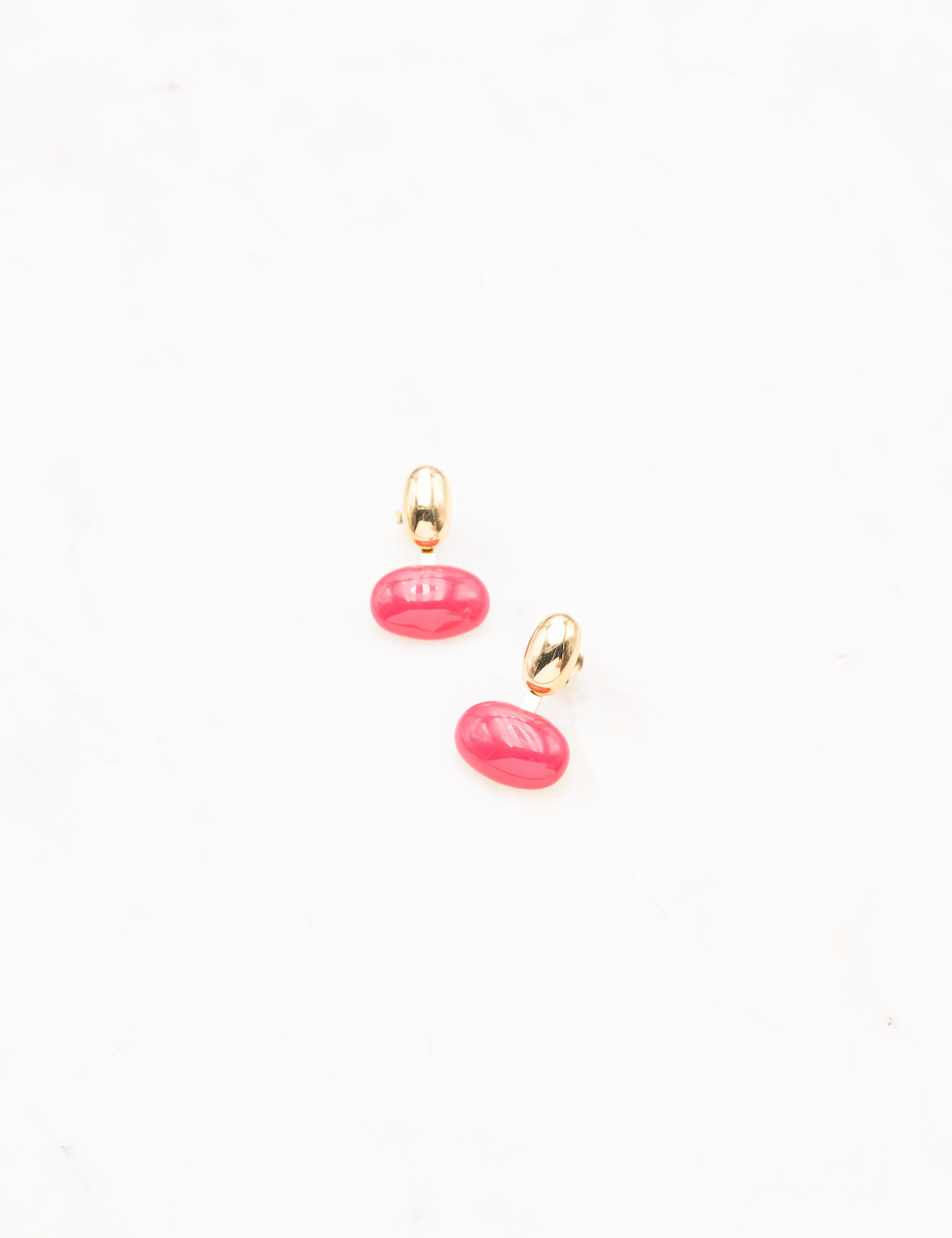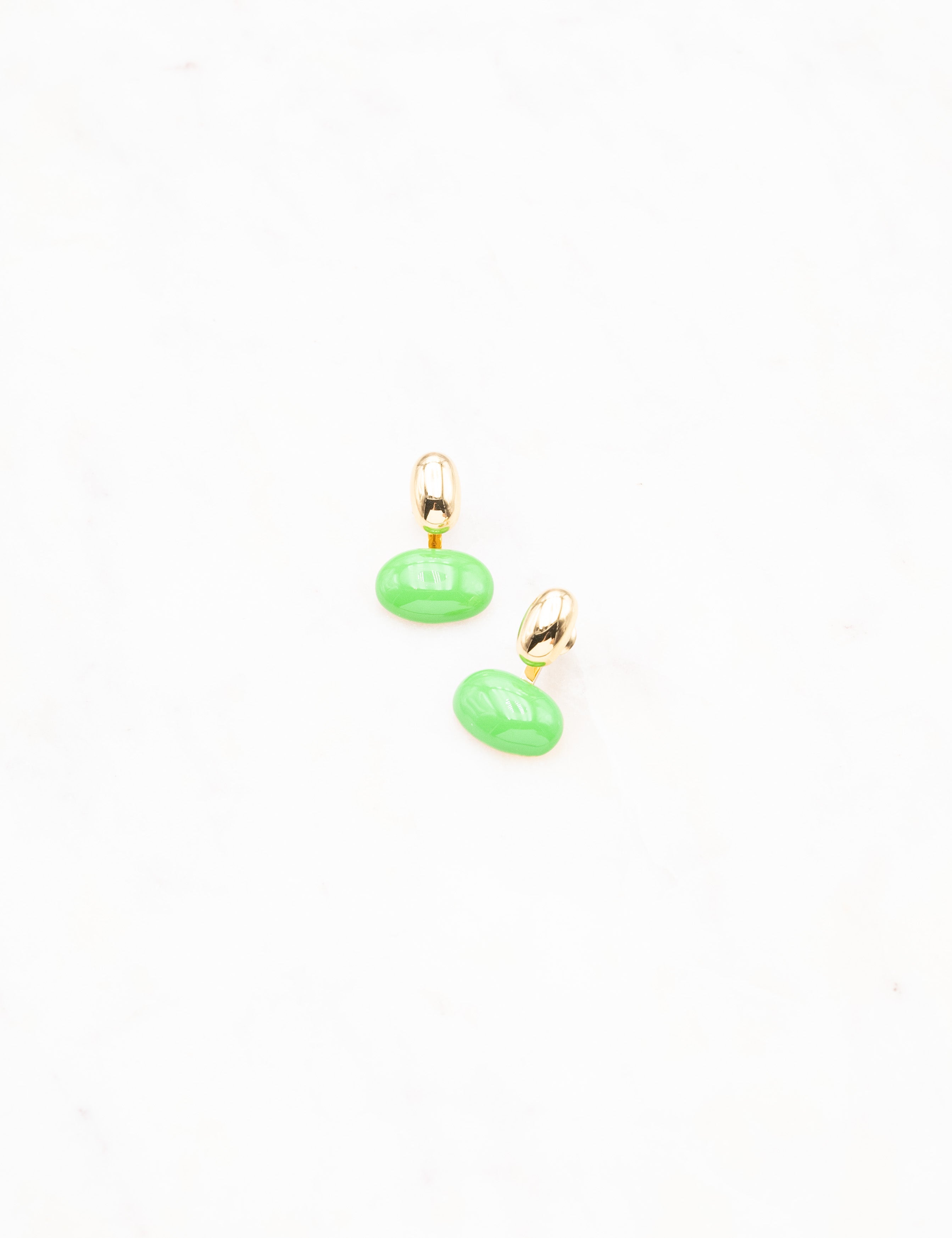 Boucles d'oreilles graphiques à puce type balancier avec une pièce émaillée colorée.