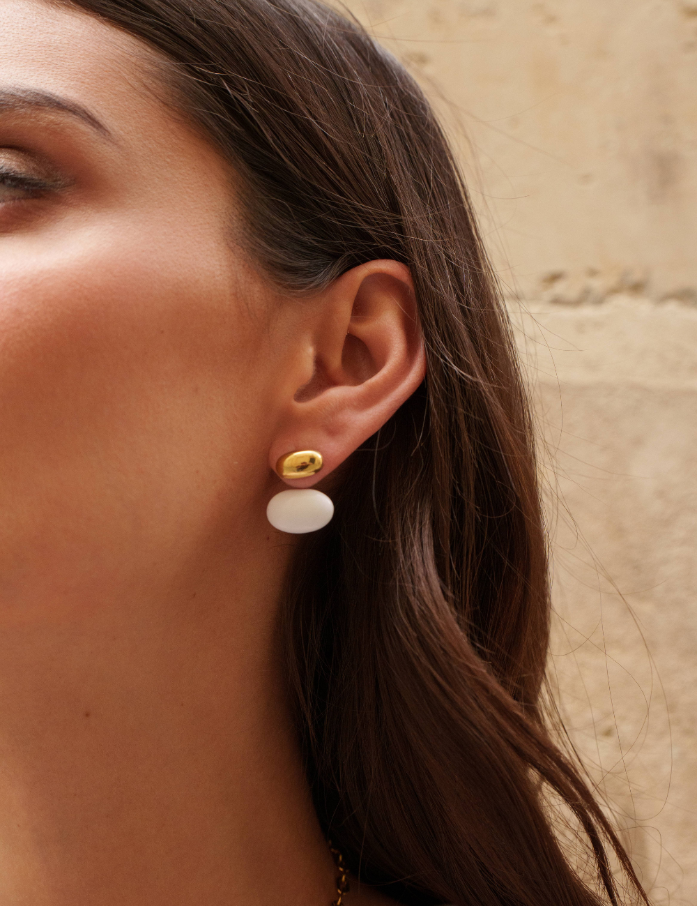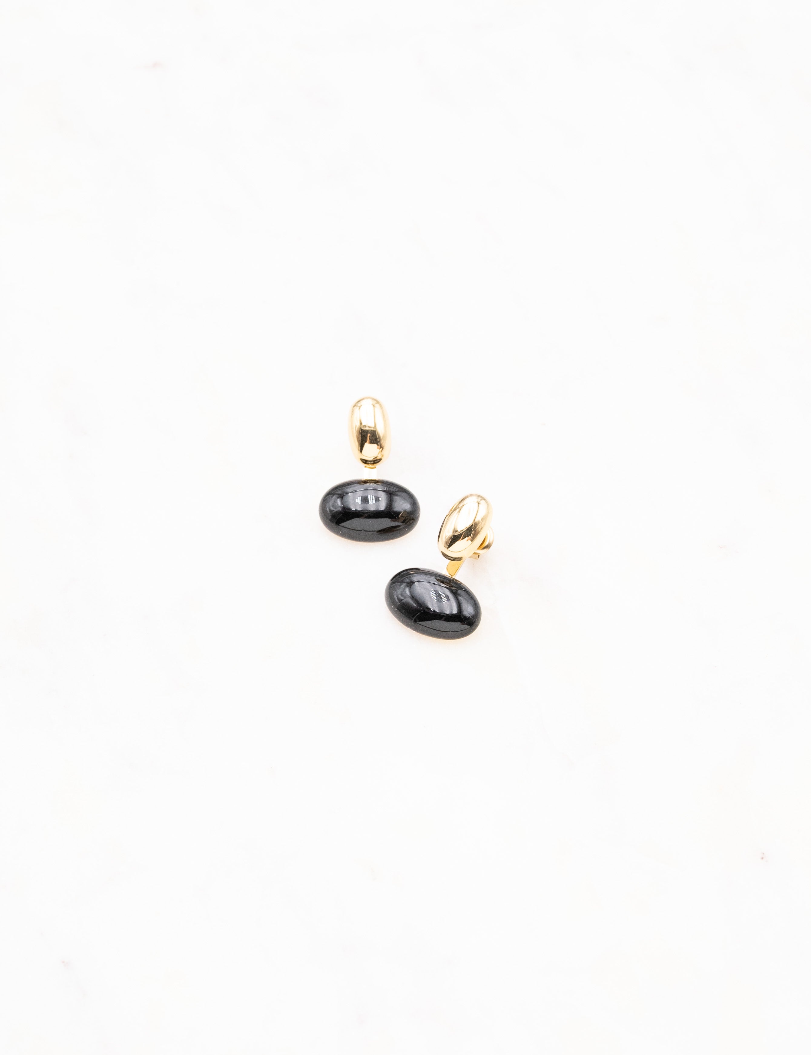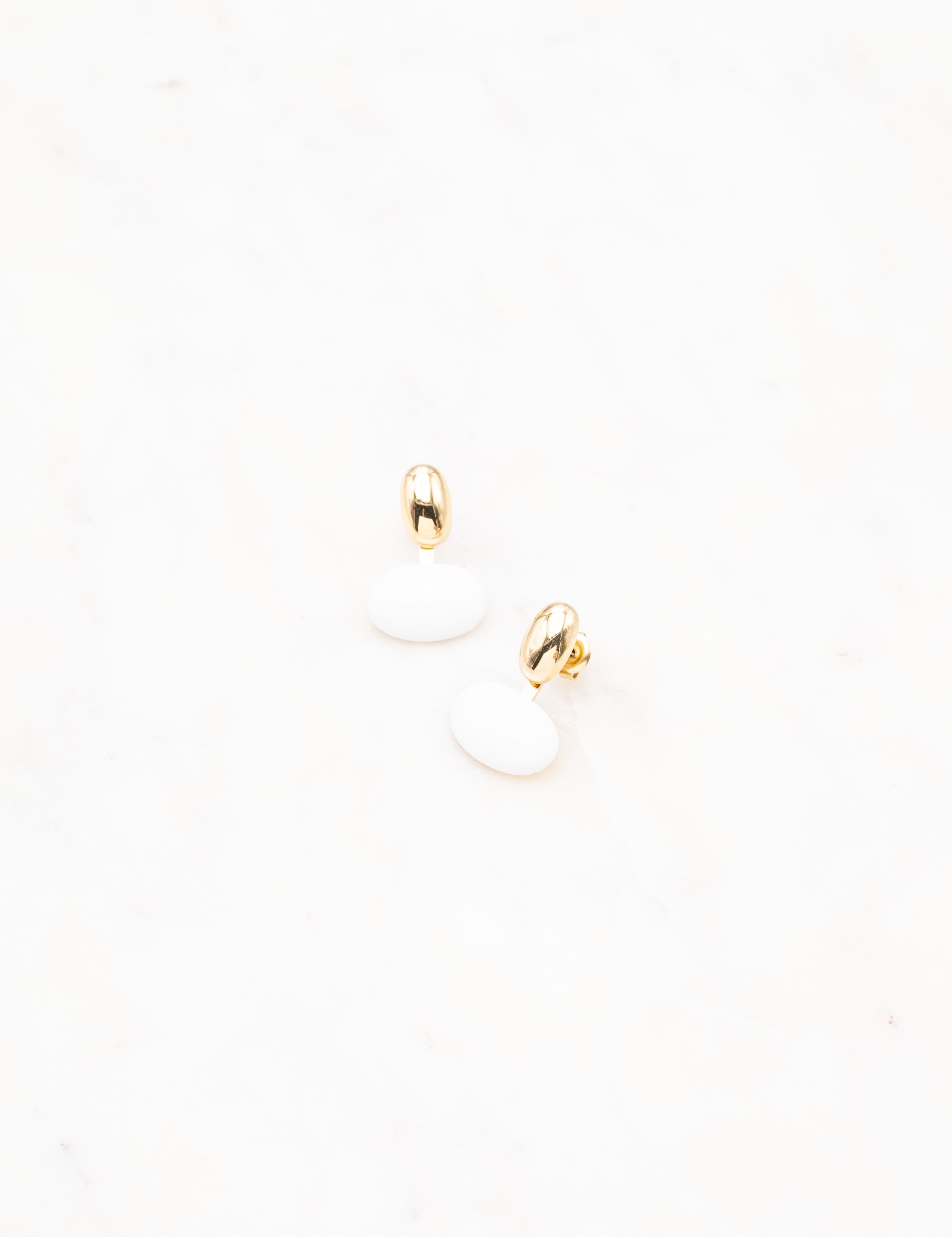 Boucles d'oreilles graphiques à puce type balancier avec une pièce émaillée colorée.