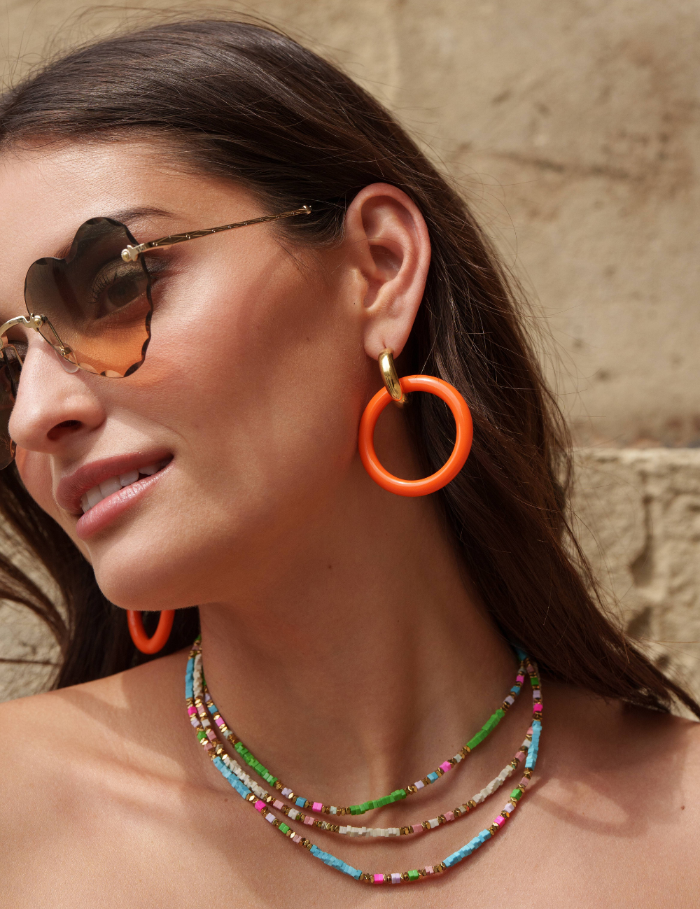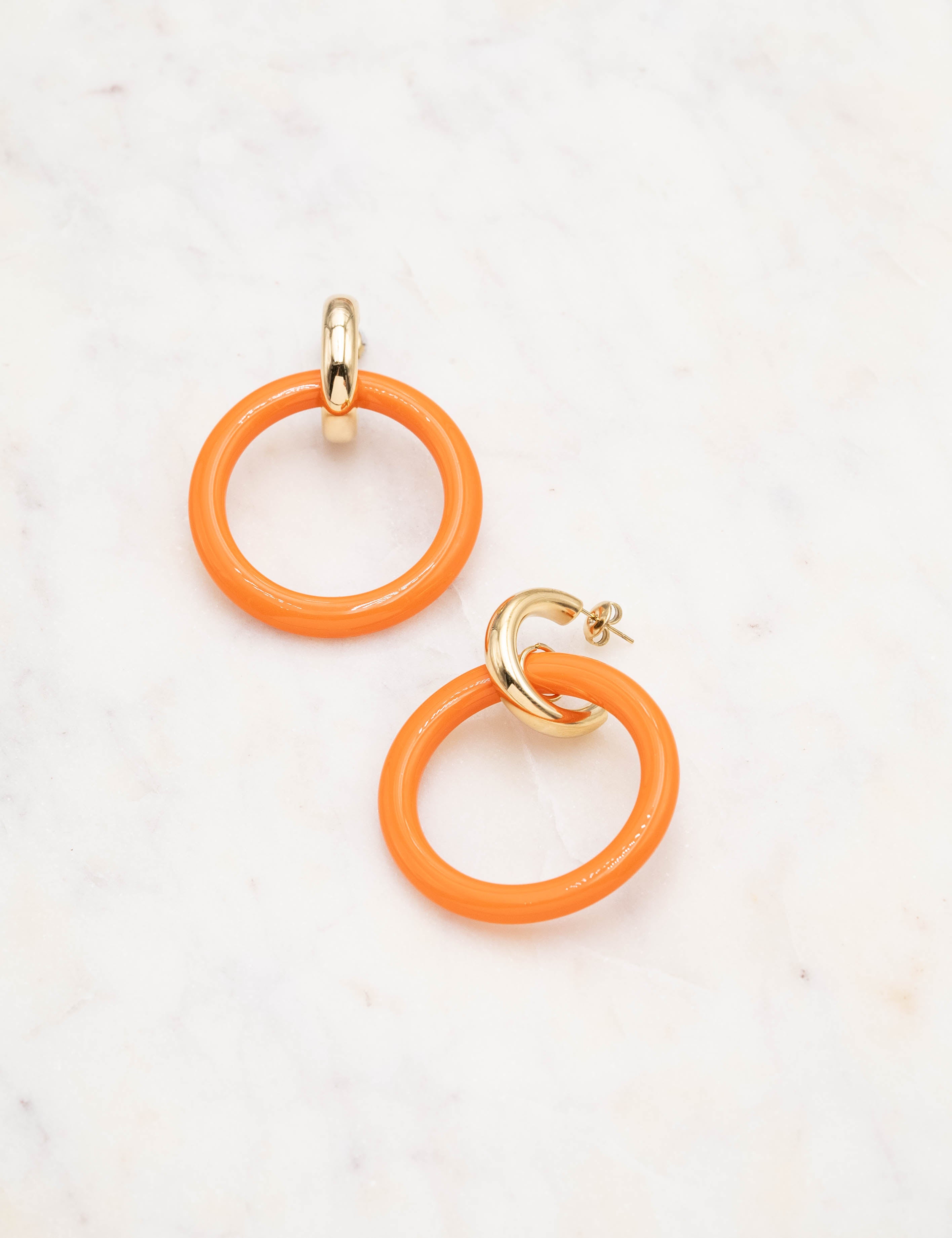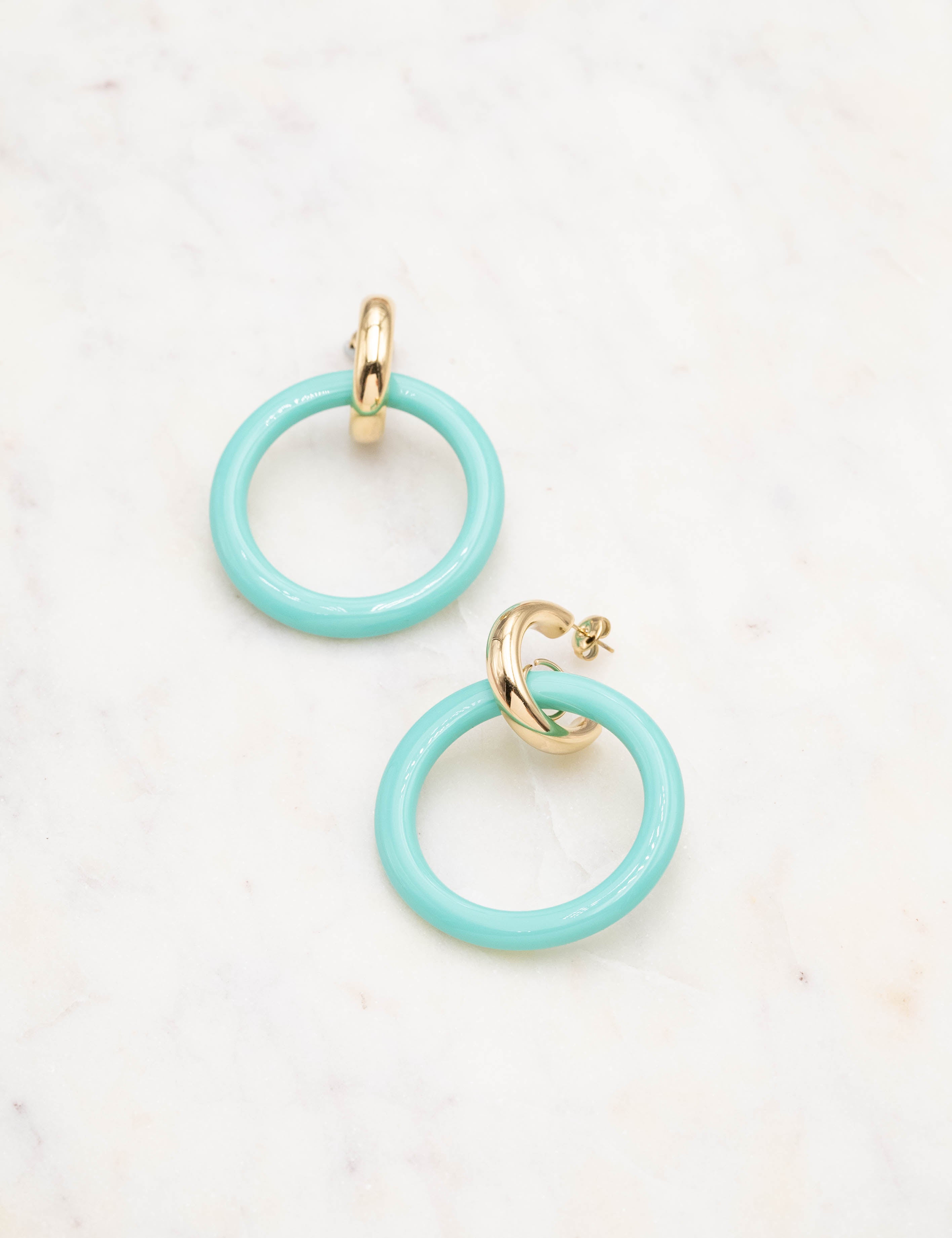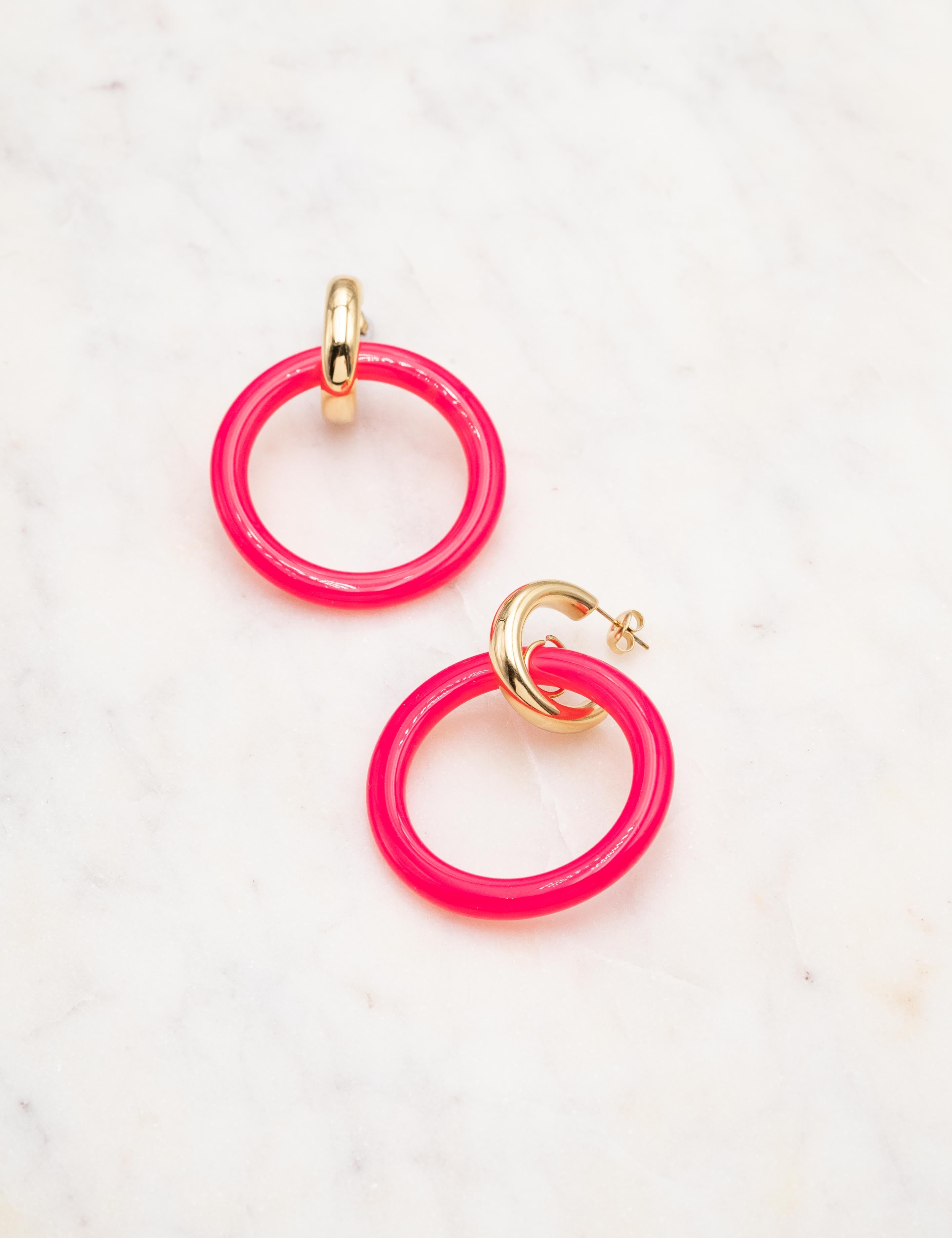 Boucles d'oreilles type créoles à puce composées d'un anneau en acétate coloré.