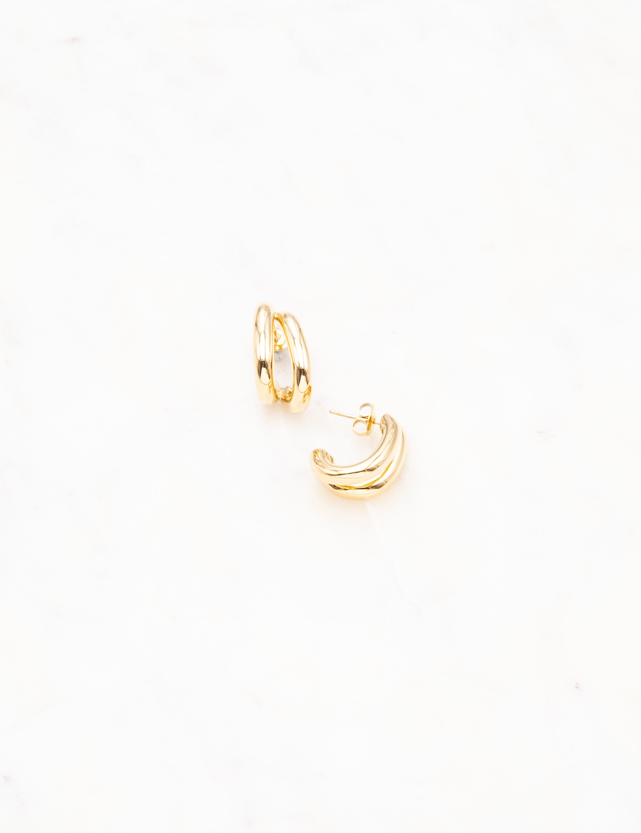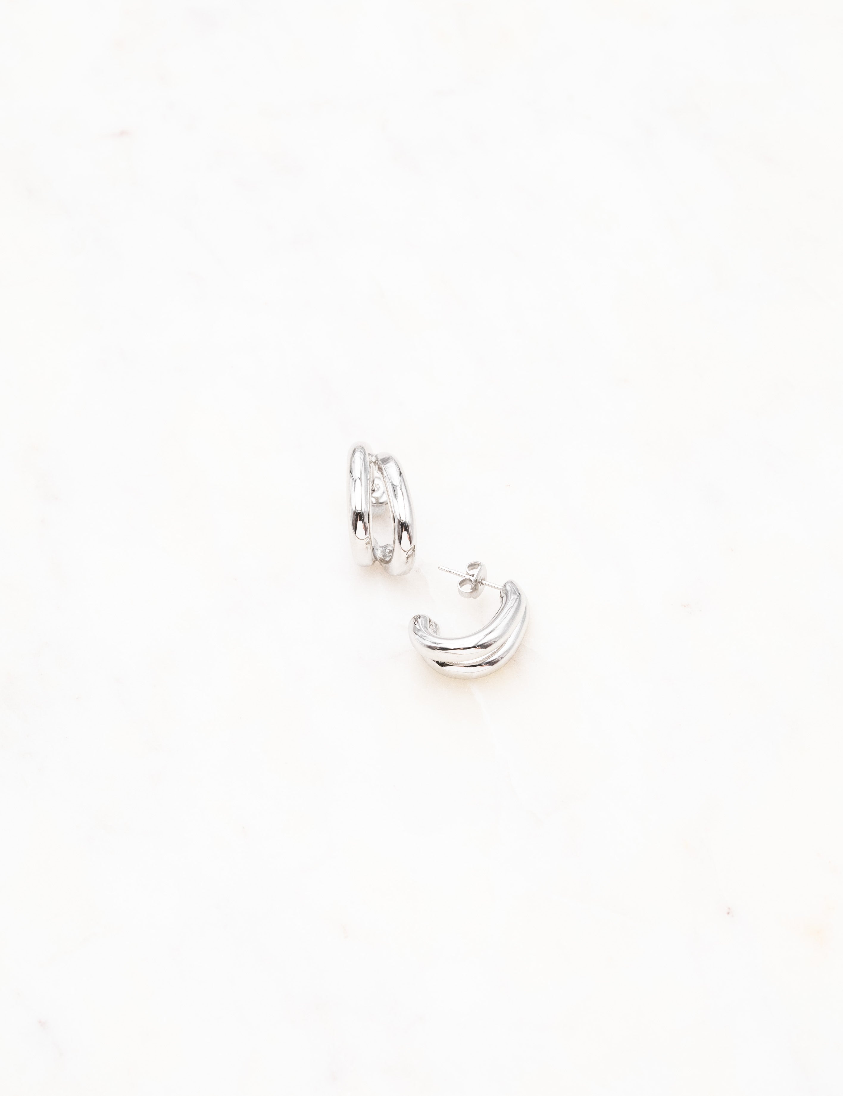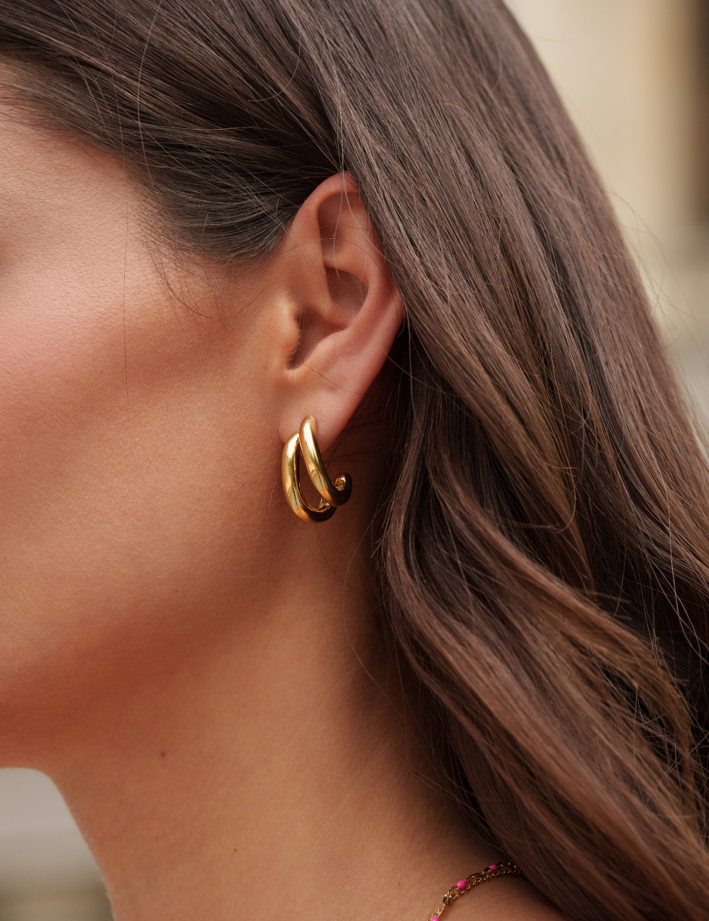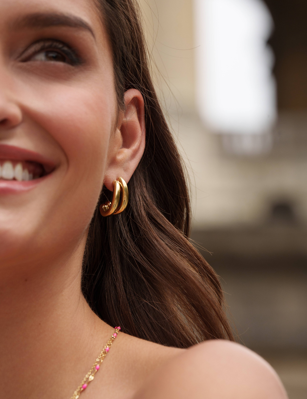 Boucles d'oreilles type créoles à puce 2 rangs lisses.