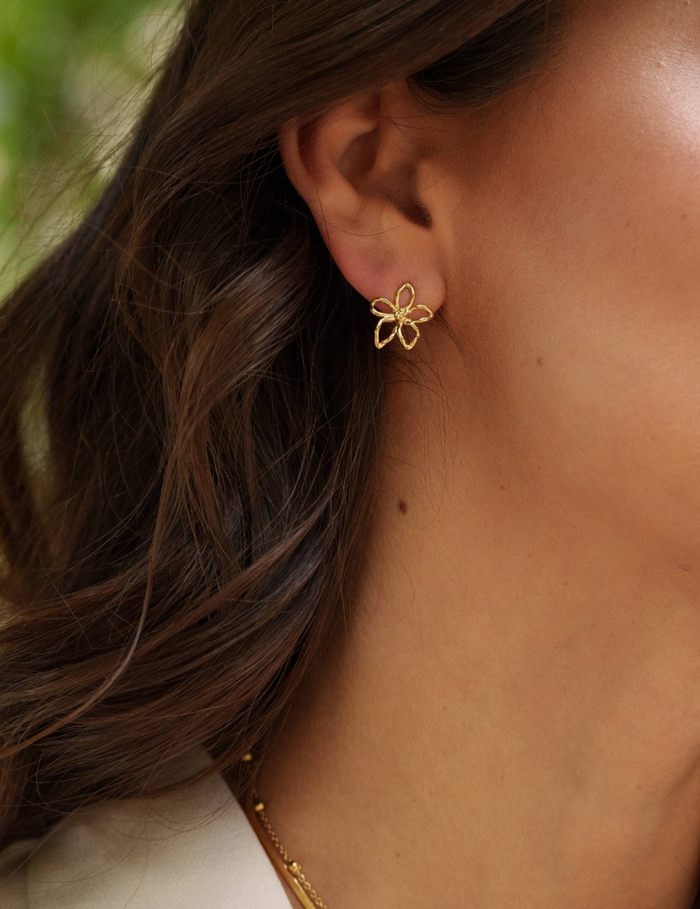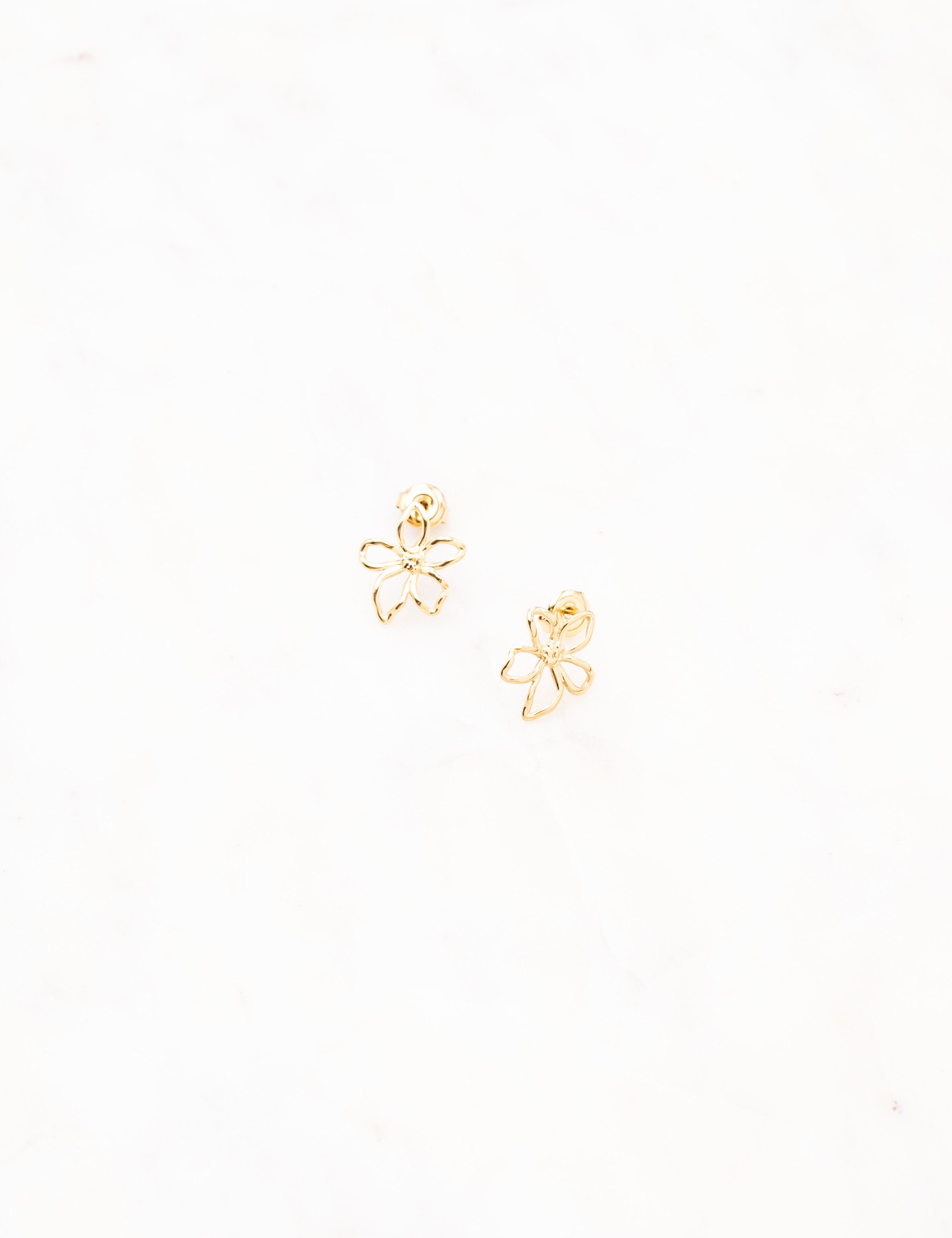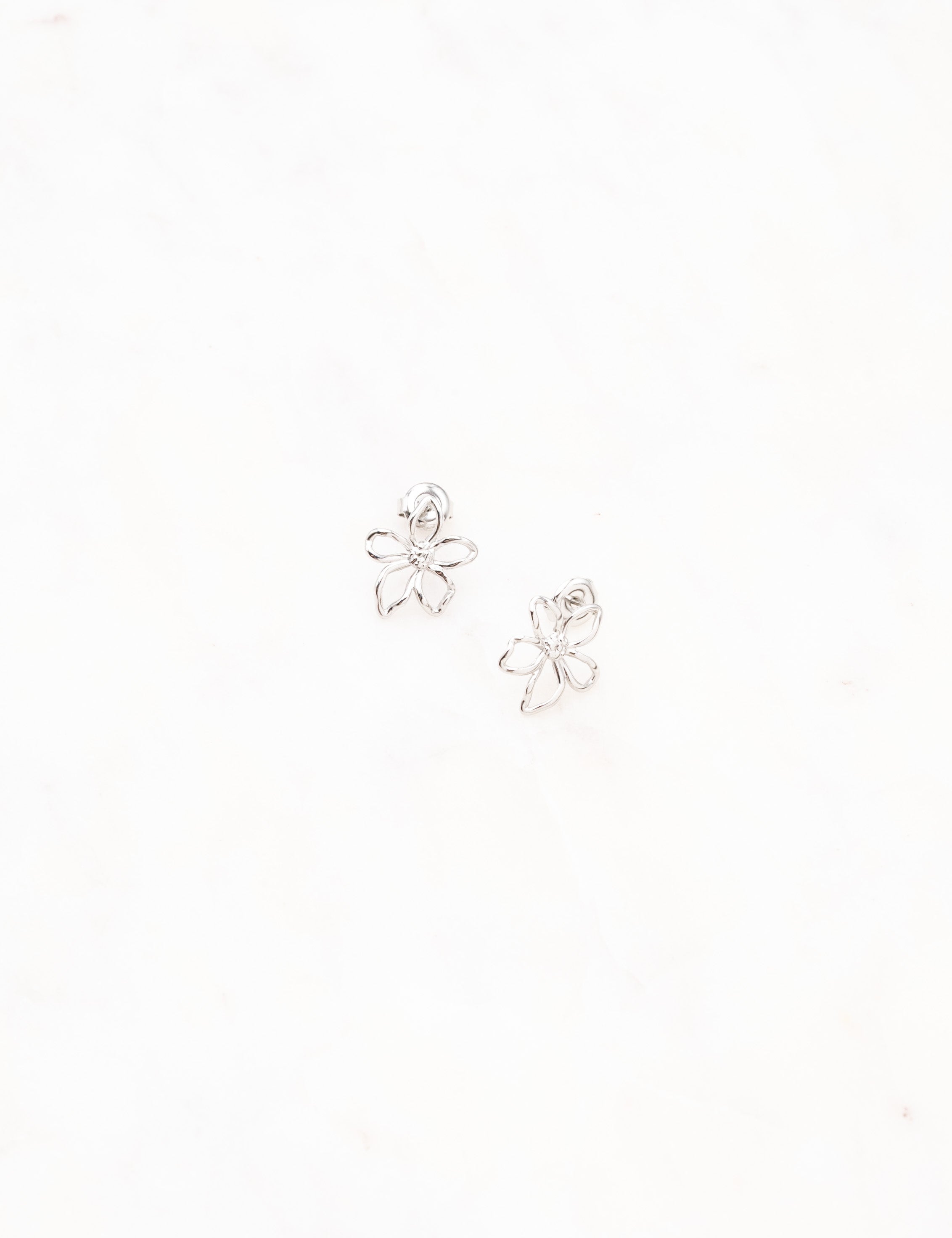 Boucles d'oreilles à puce formant une fleur ajourée.