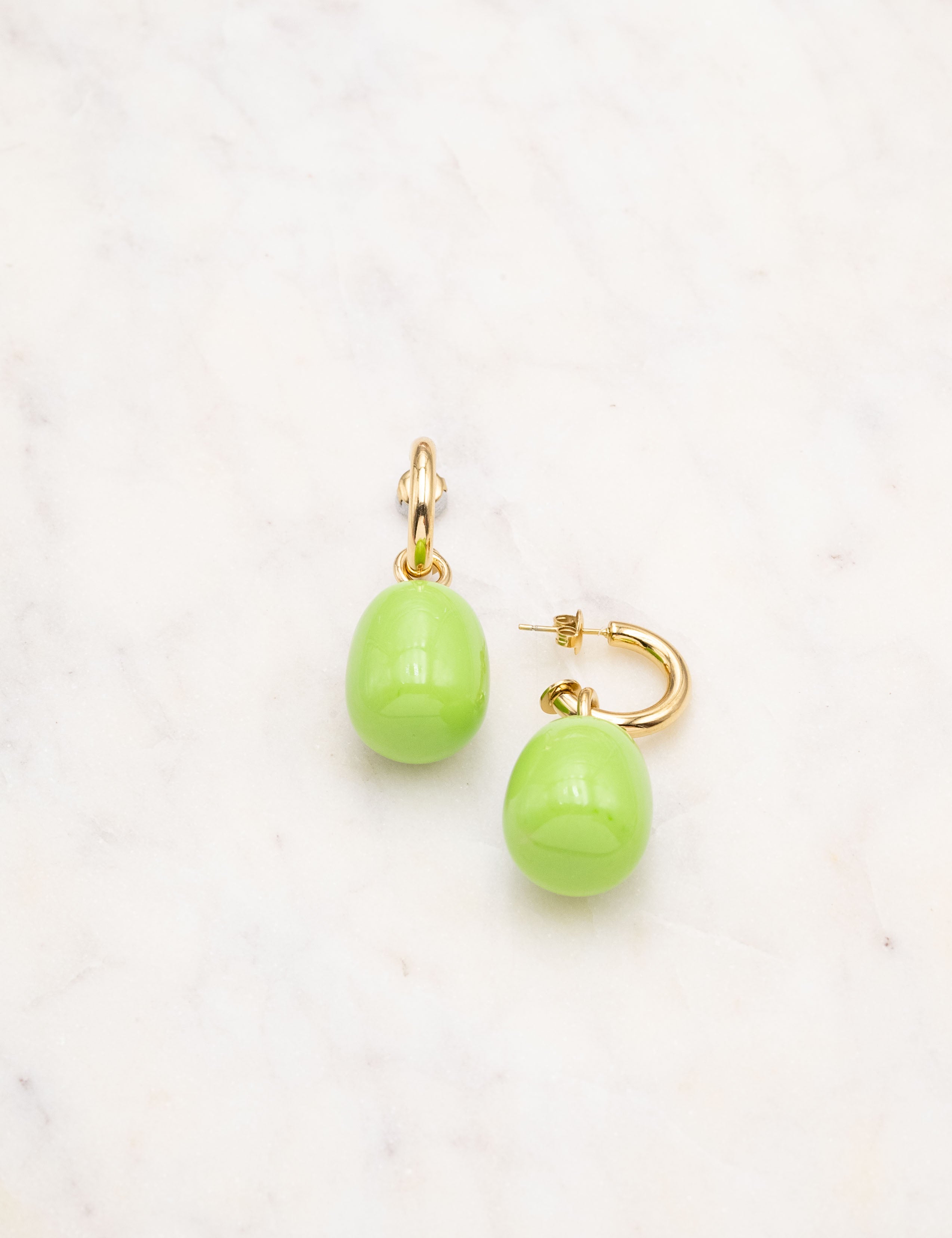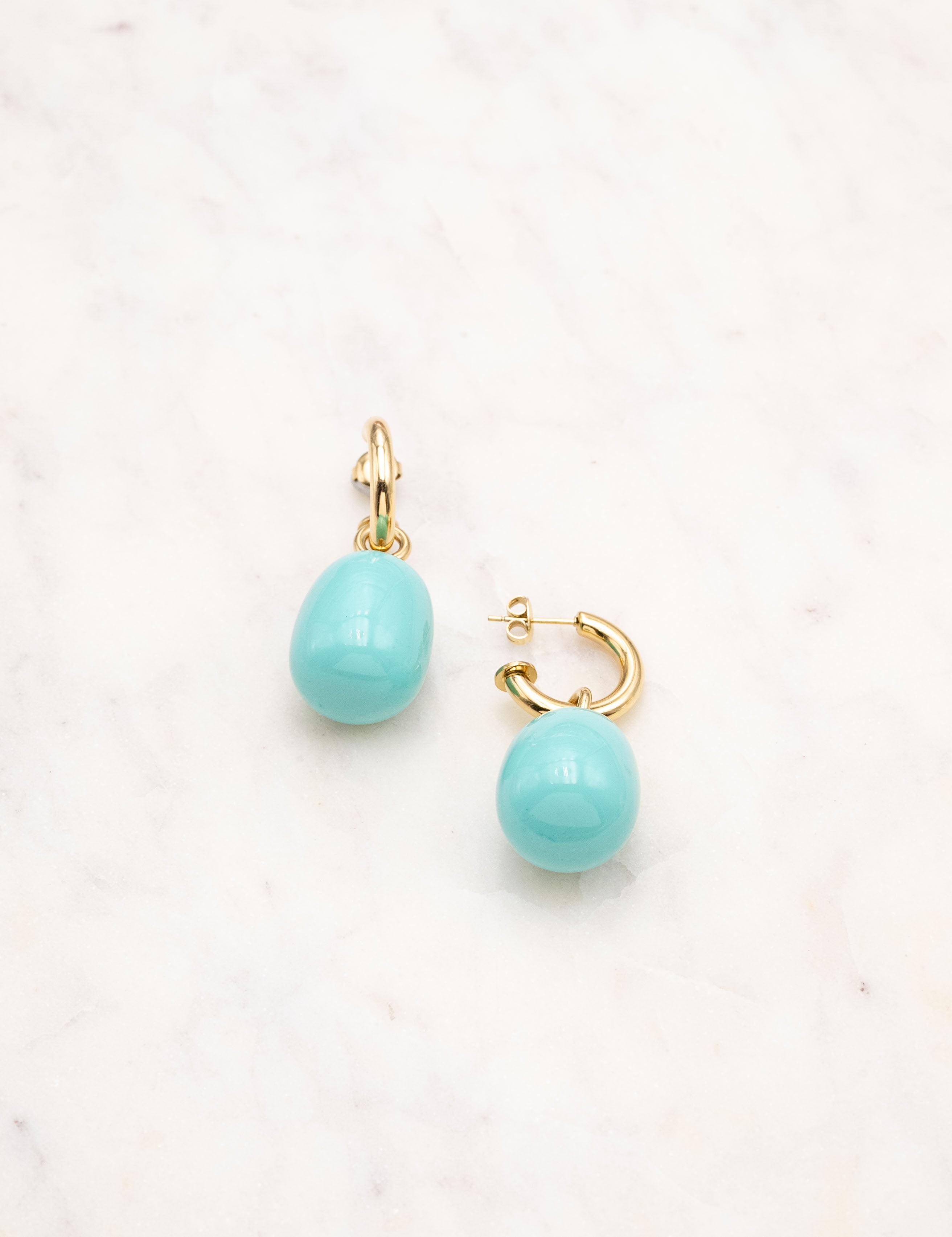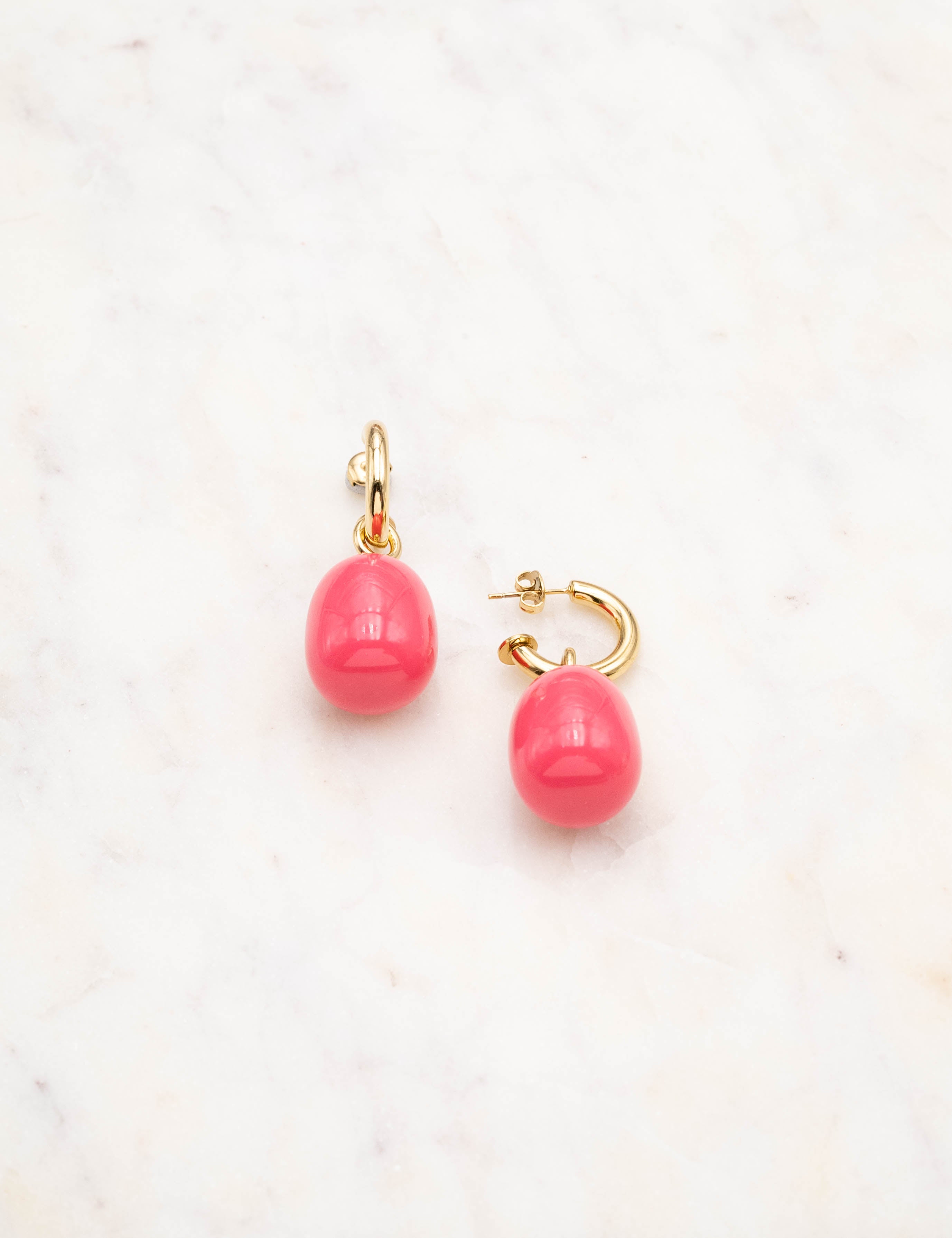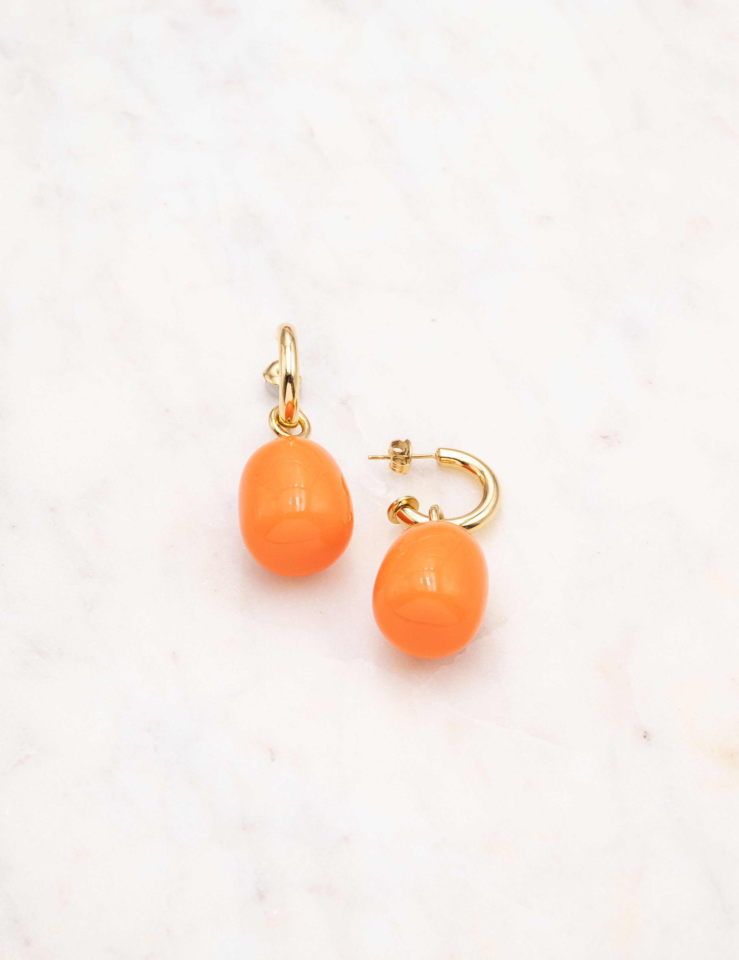 Boucles d'oreilles type créoles à puce composées d'un pendant géométrique en résine colorée.