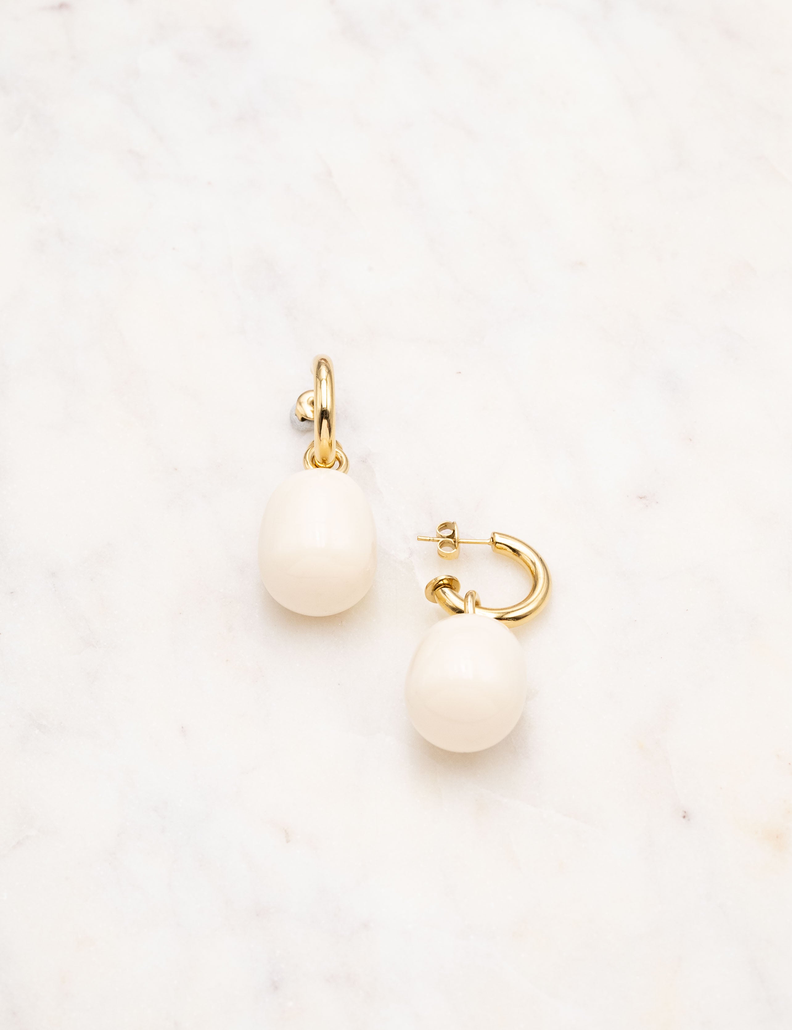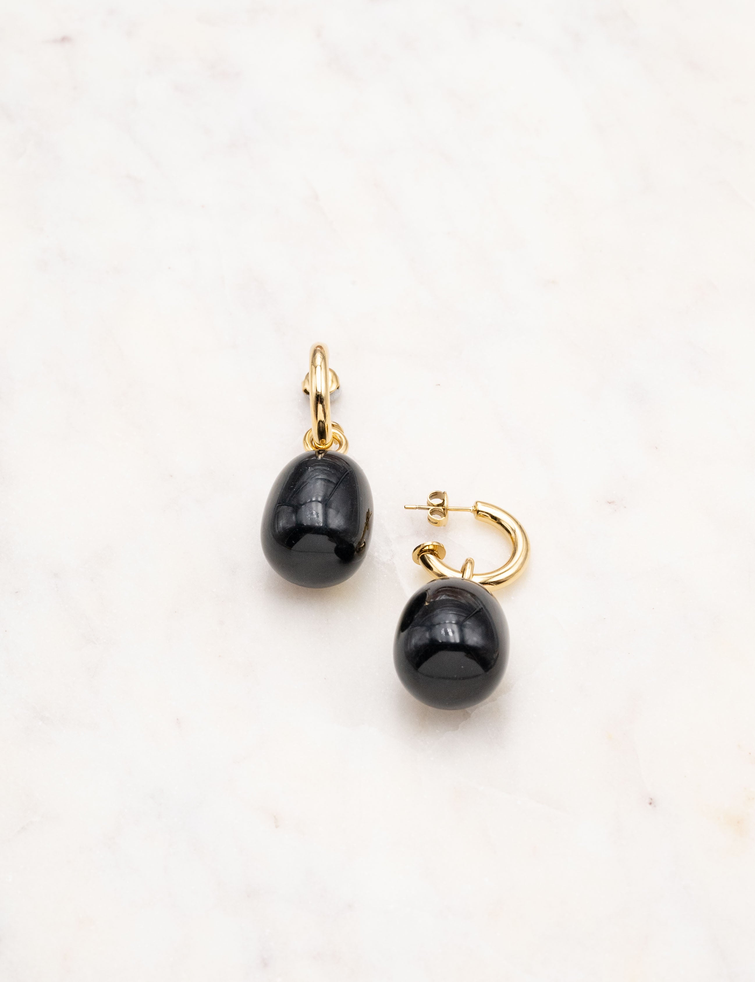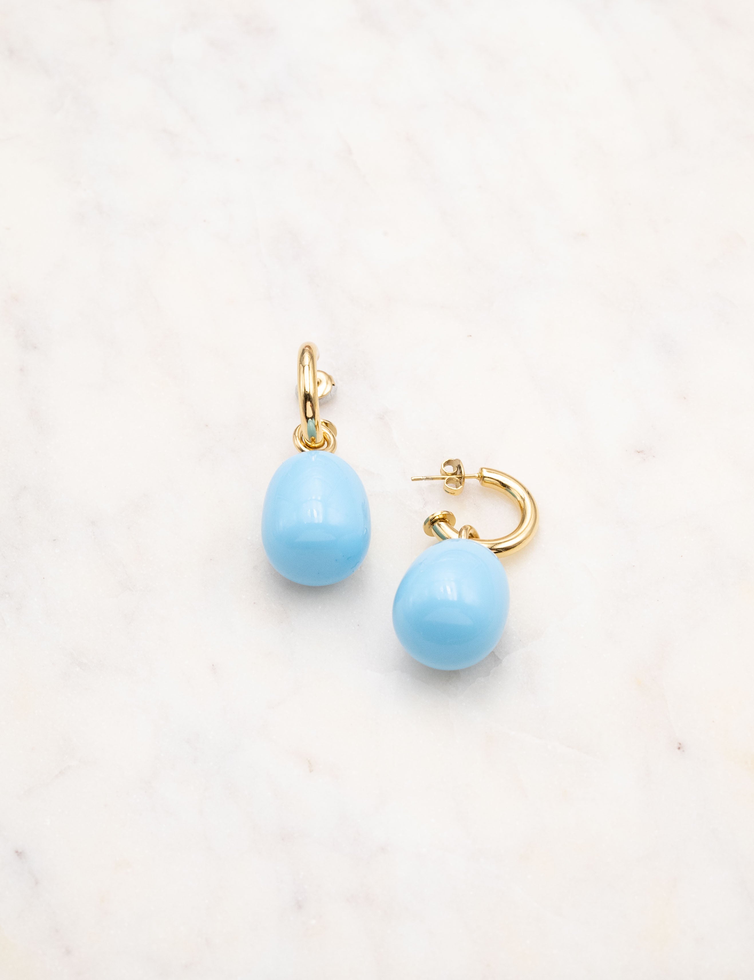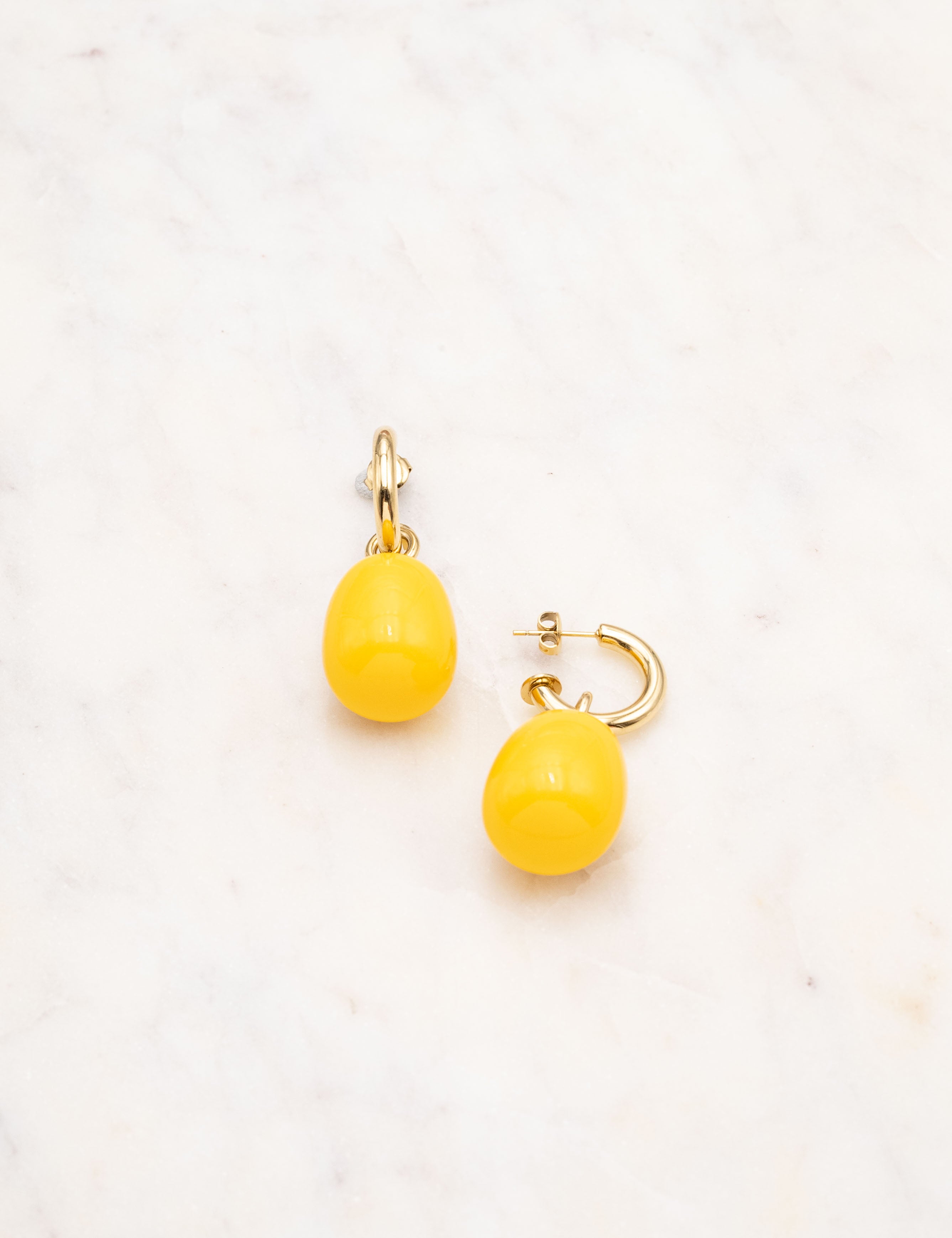 Boucles d'oreilles type créoles à puce composées d'un pendant géométrique en résine colorée.