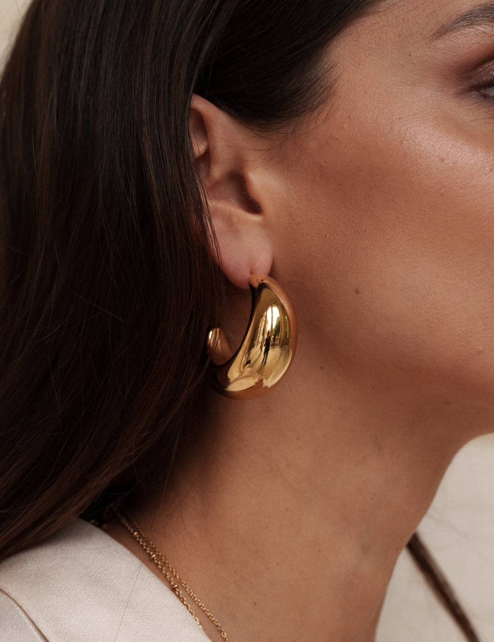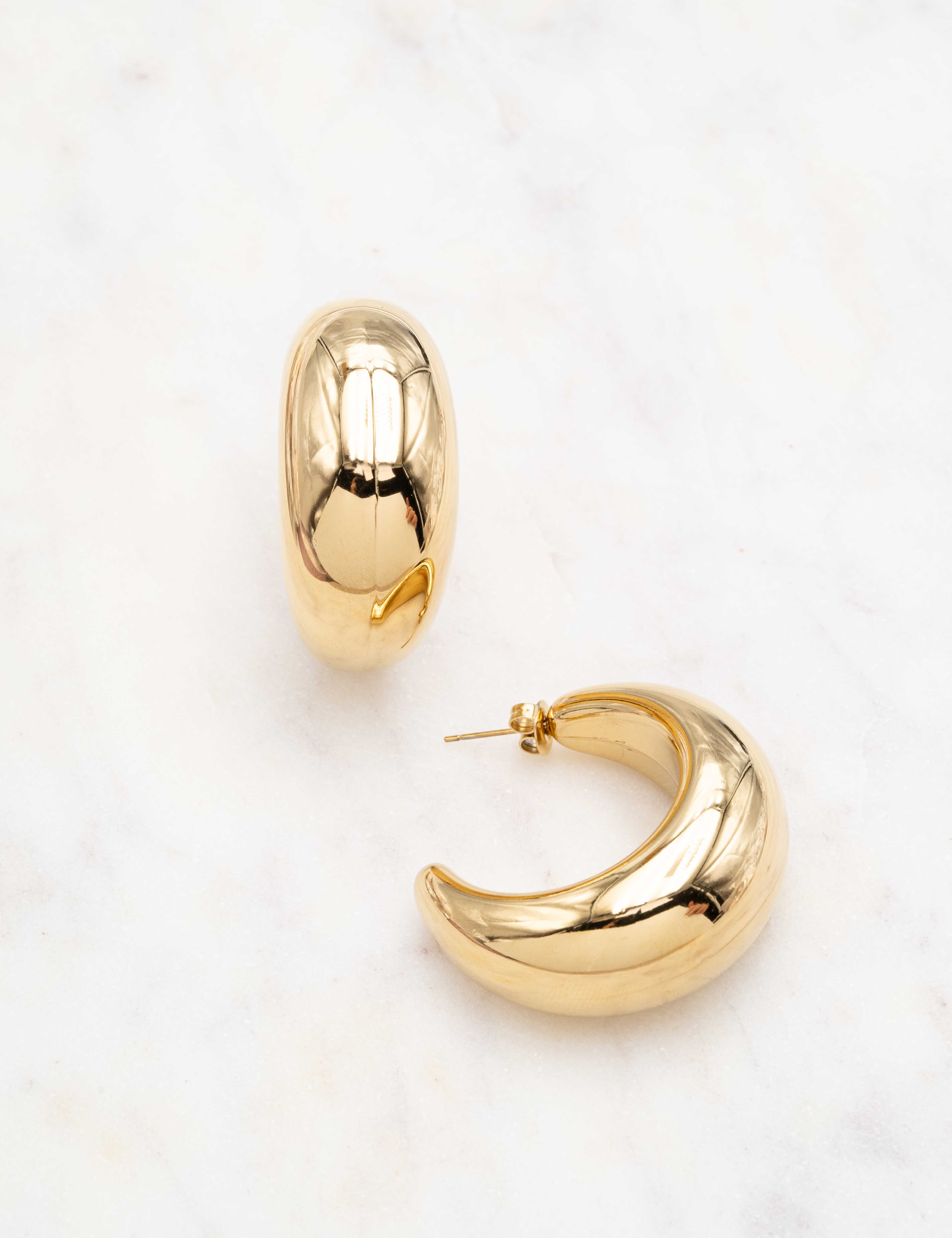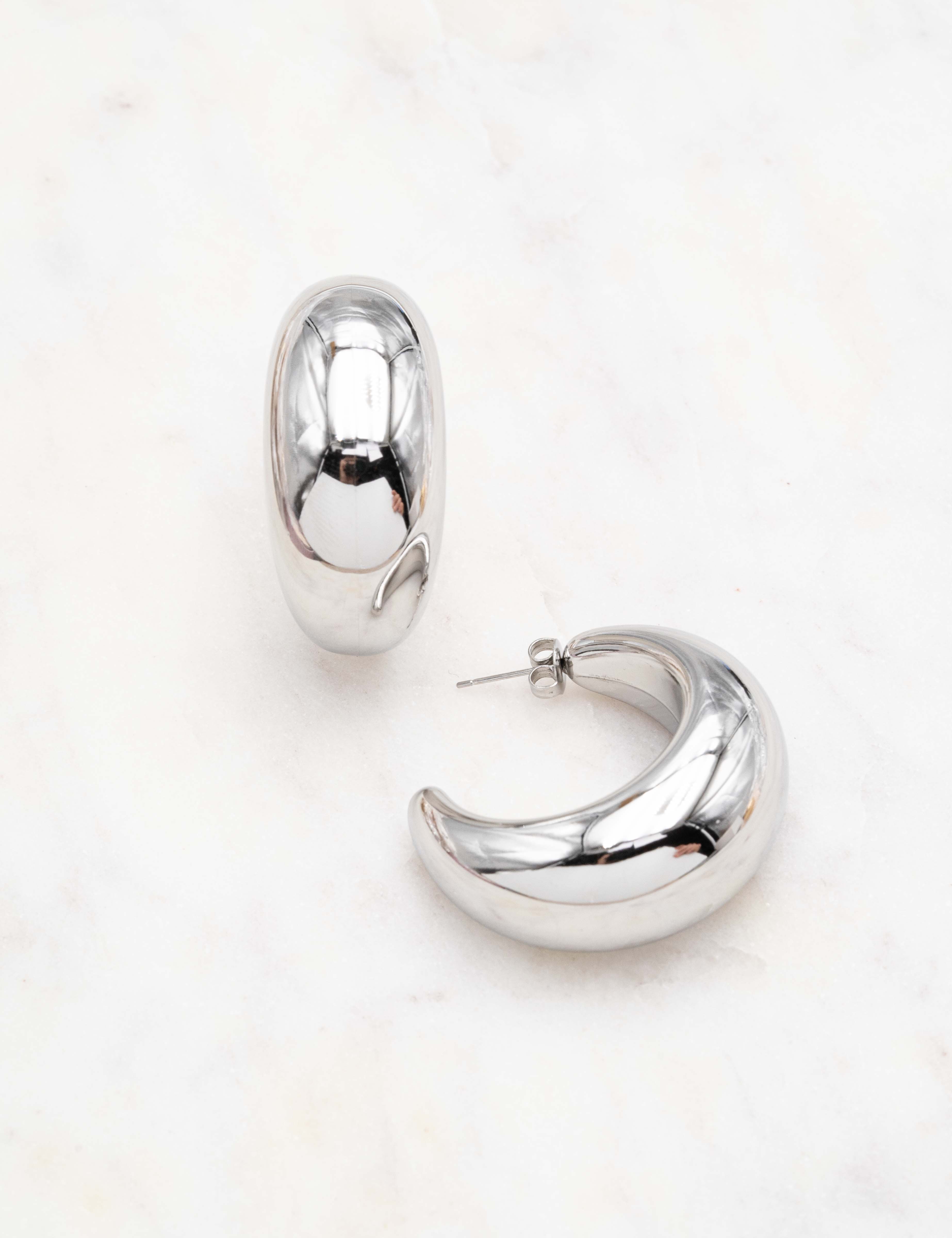 Boucles d'oreilles graphiques type créoles à puce effet bombé. Fermoir papillon.